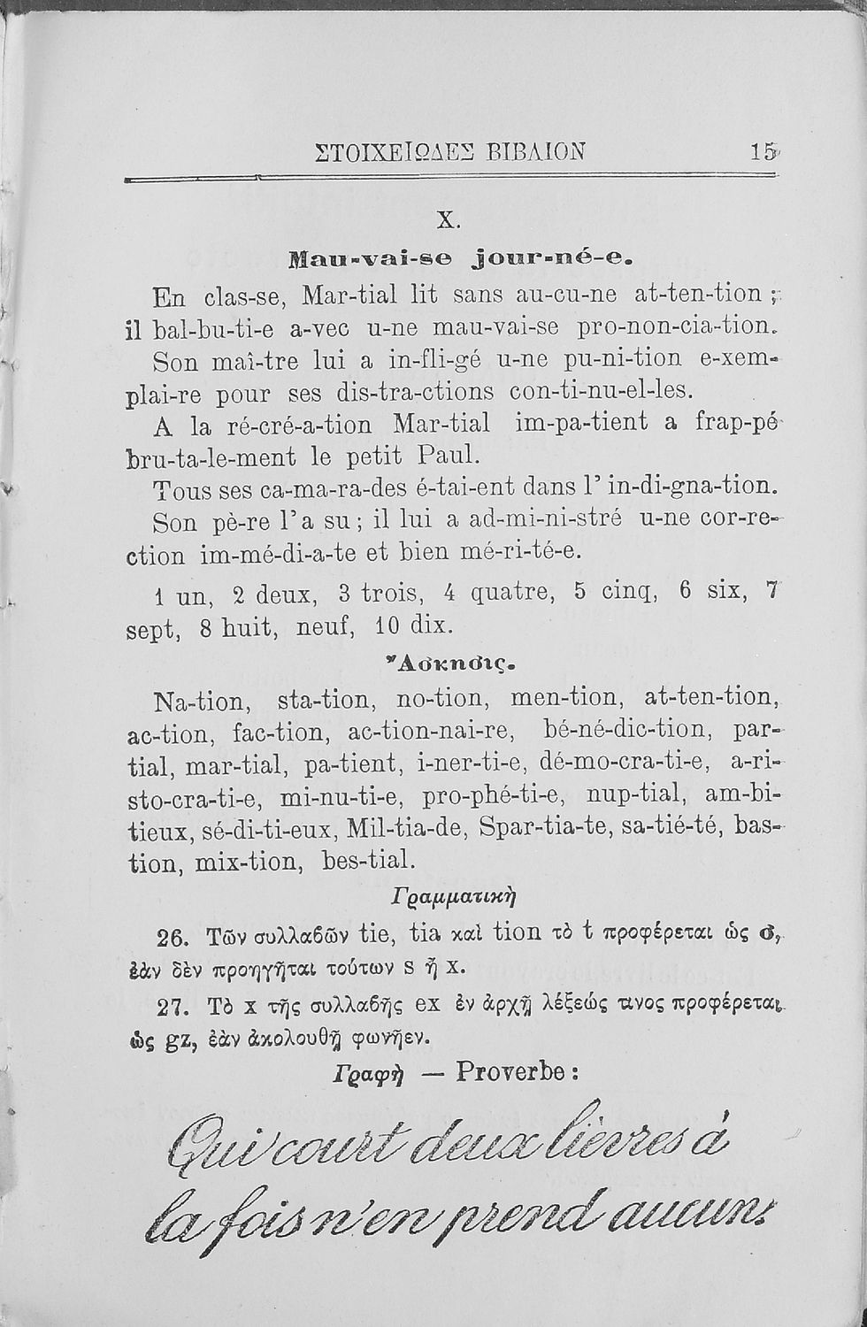 Στοιχειώδες βιβλίον προς διδασκαλίαν της γαλλικής γλώσσης δια την Β΄ και Γ΄ τάξιν του ελληνικού σχολείου