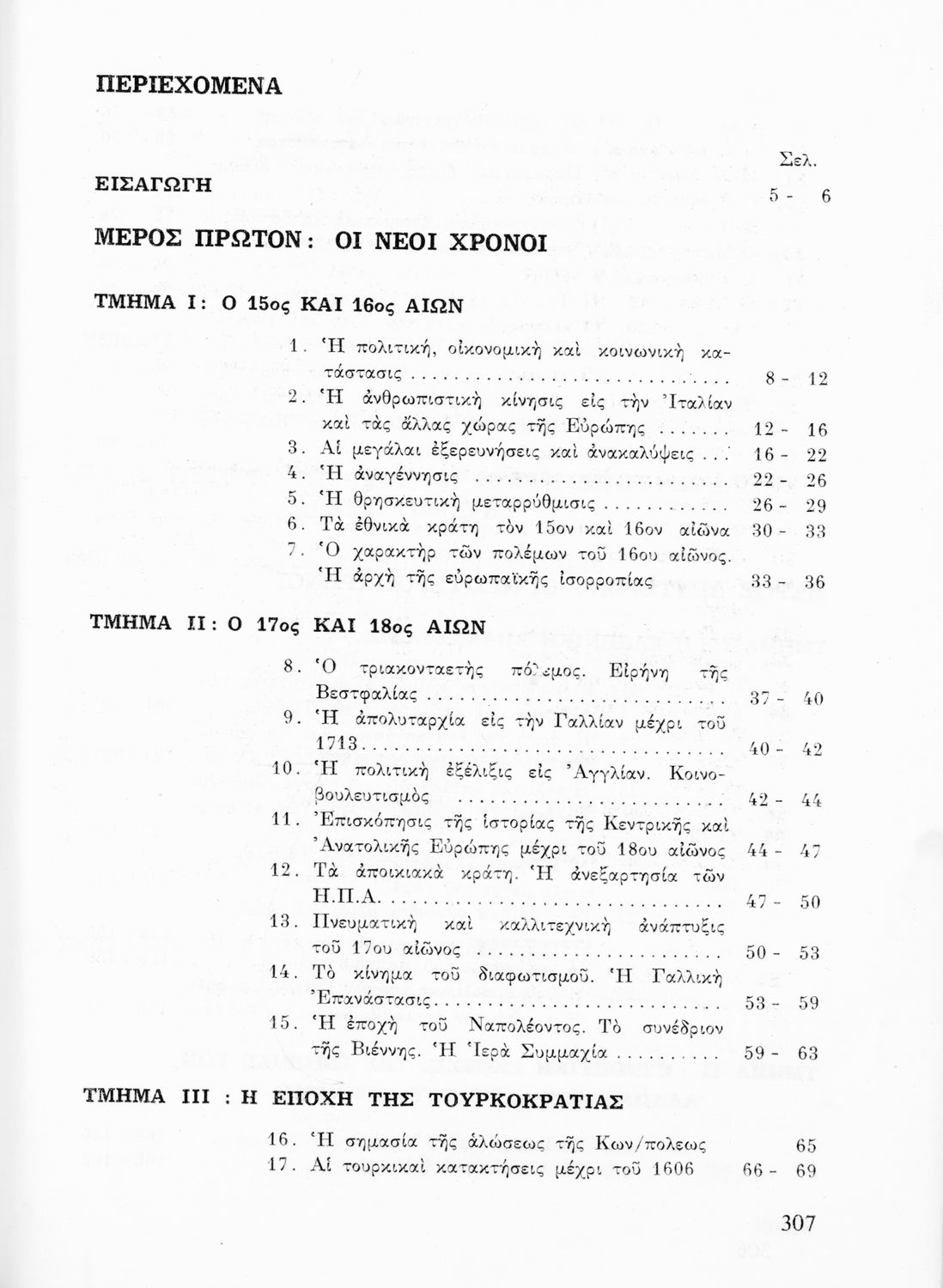 Σχολικό εγχειρίδιο Ιστορίας Γ΄ Γυμνασίου που καλύπτει την περίοδο της Αναγέννησης και του Διαφωτισμού στην Ευρώπη και την προετοιμασία της Ελληνικής Επανάστασης. Συνοπτικά αναφέρεται στο διάστημα από τη βασίλεια του 'Όθωνα ως τους δύο Παγκόσμιους Πολέμους και τον Ψυχρό Πόλεμο. Παρουσιάζει και την πνευματική κίνηση κατά τον 19ο και 20ο αιώνα.