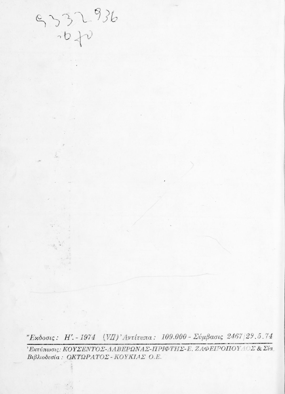 Εκδότης: Οργανισμός Εκδόσεως Διδακτικών Βιβλίων Έτος έκδοσης: 1974 Τόπος έκδοσης: Αθήνα Έκδοση: 8η Υπουργική απόφαση / Σύμβαση: 2467/29-5-1974 Έτος έγκρισης: 1974 |
