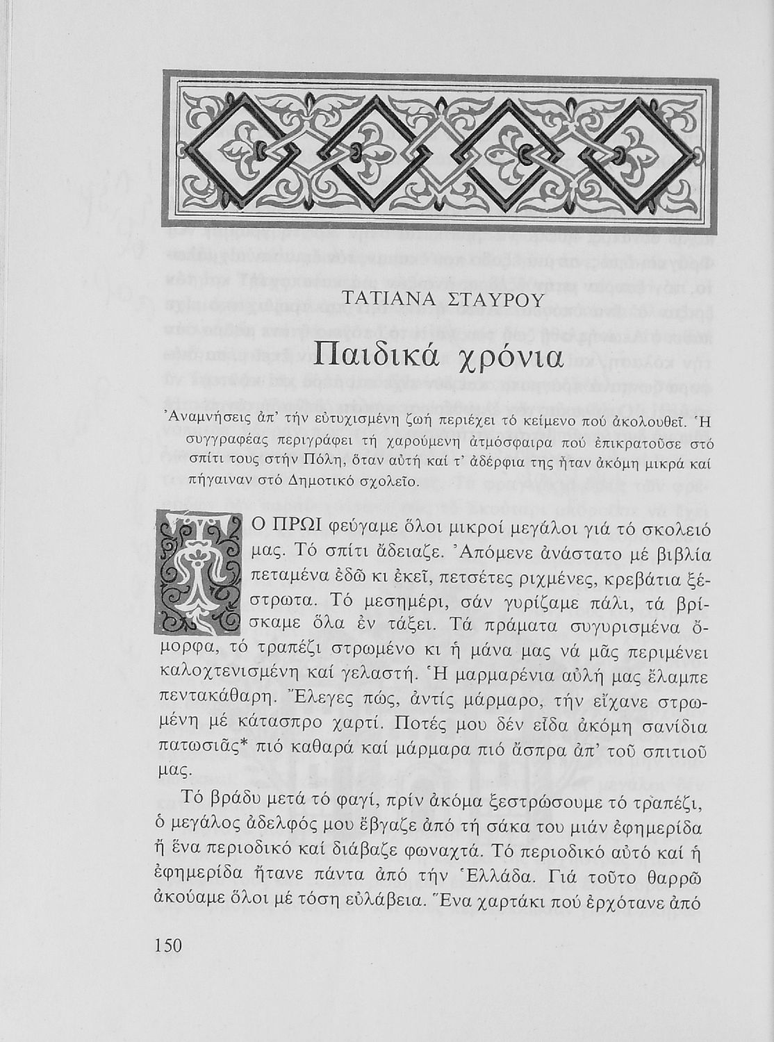 Αναγνωστικό για τους μαθητές της Γ' και Δ΄ Δημοτικού που περιλαμβάνει με πεζά και ποιήματα της νέας ελληνικής λογοτεχνίας εμπνευσμένα από την καθημερινότητα των παιδιών και των οικογενειών τους, την ελληνική ...
