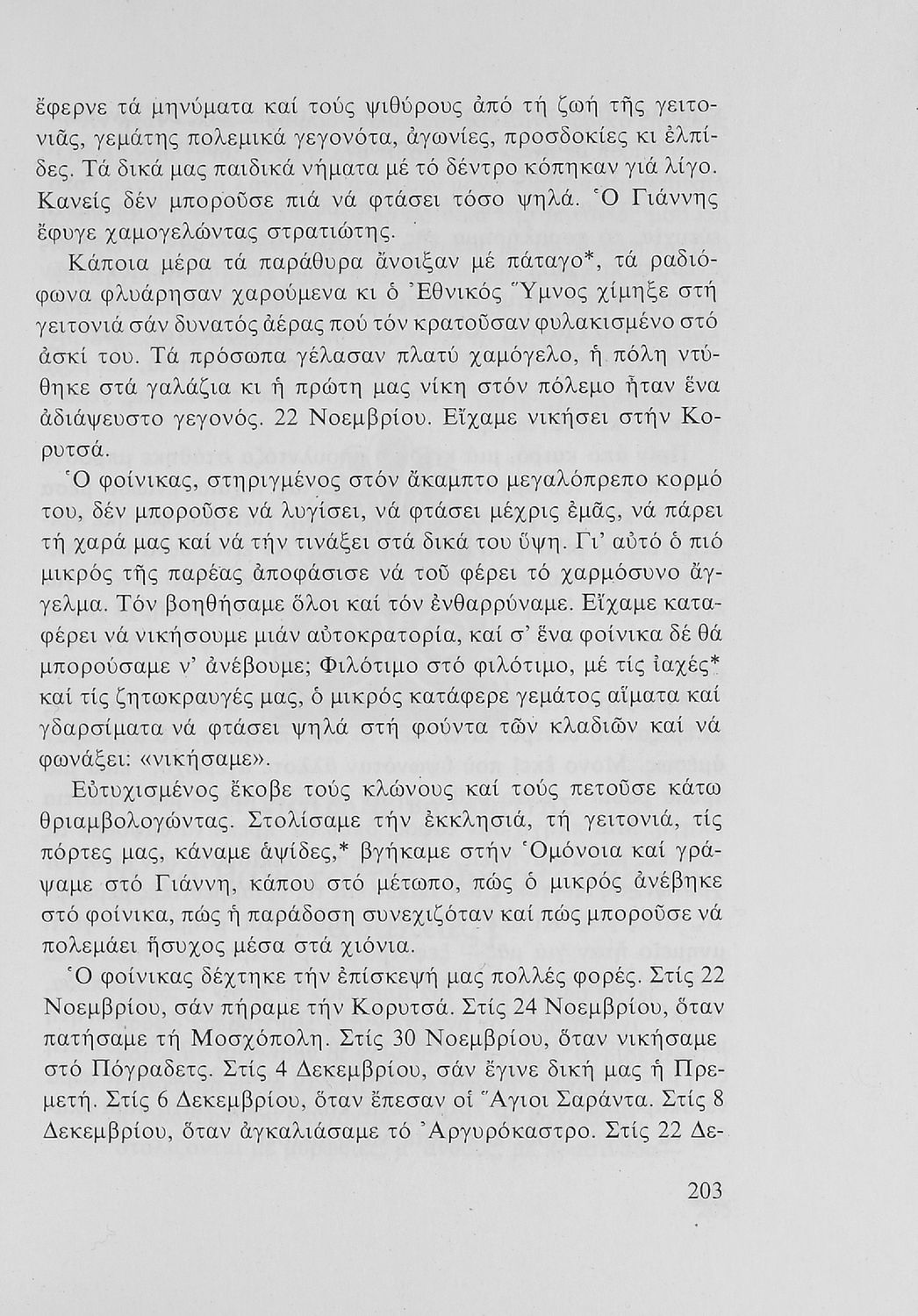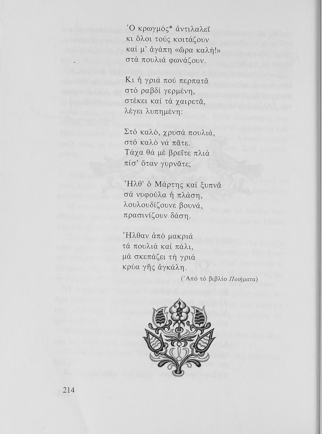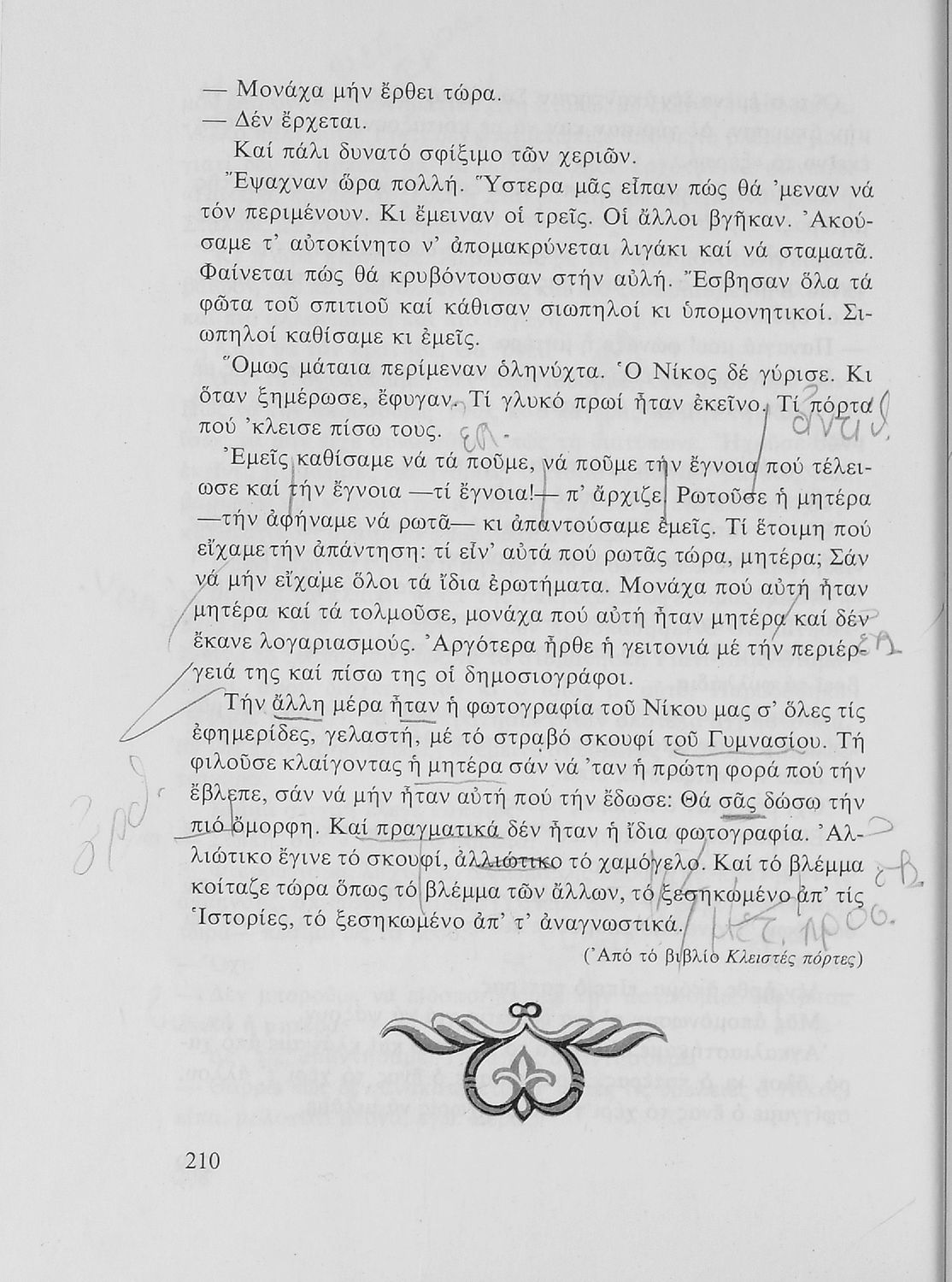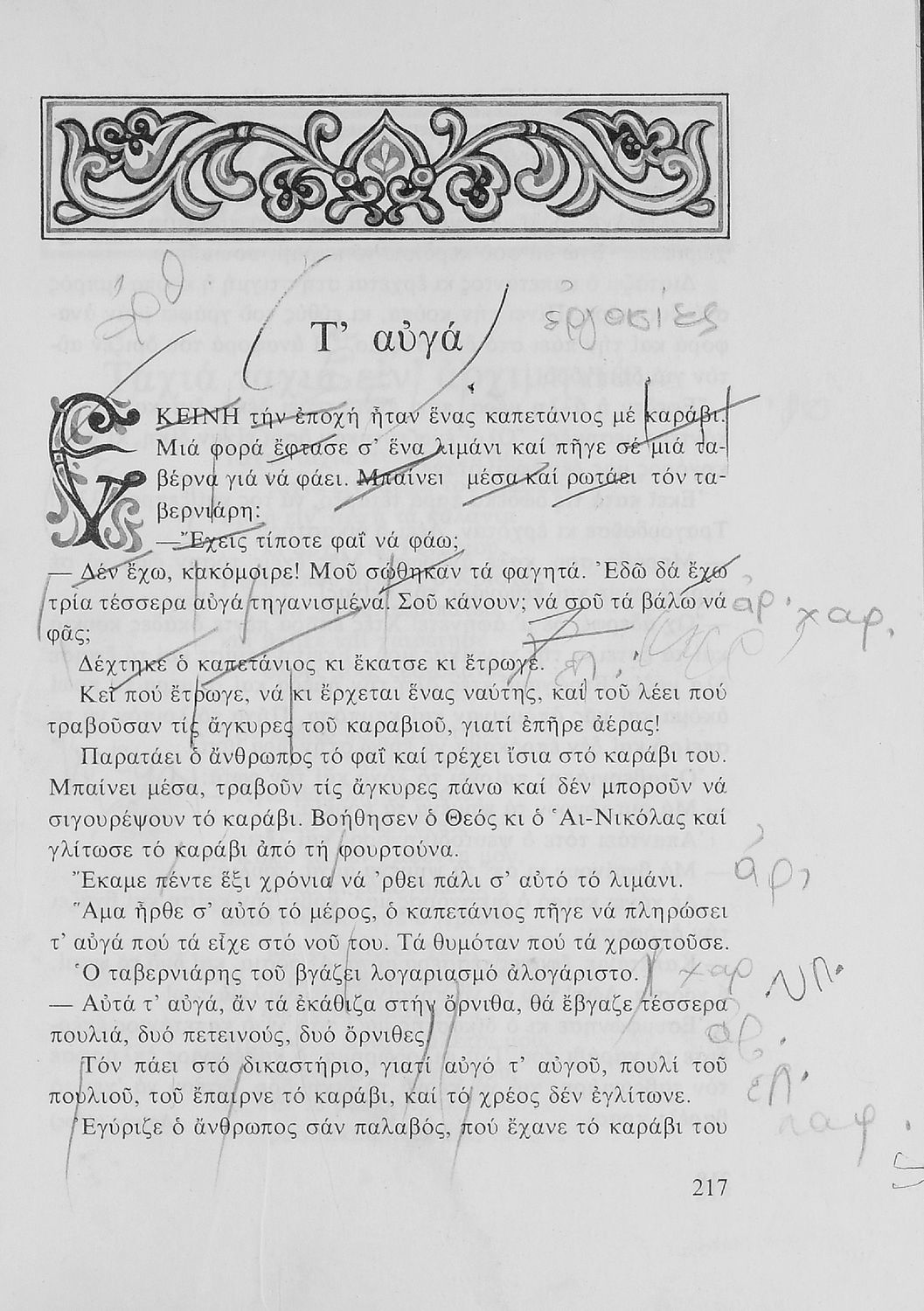 Αναγνωστικό για τις Ε' και ΣΤ΄ Δημοτικού που περιλαμβάνει πεζά και ποιήματα της Νέας Ελληνικής Λογοτεχνίας εμπνευσμένα από την καθημερινότητα των παιδιών και των οικογενειών τους, την ελληνική ιστορία, τις οικογενειακές στιγμές και εορτές, το παιχνίδι και την εθνική παράδοση, και τα δημοτικά και ακριτικά τραγούδια. Περιέχει και 5 κείμενα γραμμένα στην καθαρεύουσα με θέματα από τον κοινωνικό και εθνικό βίο, και ερμηνευτικό λεξιλόγιο.. Το βιβλίο είναι αφιερωμένο στη μνήμη της Πηνελόπης Δέλτα.
