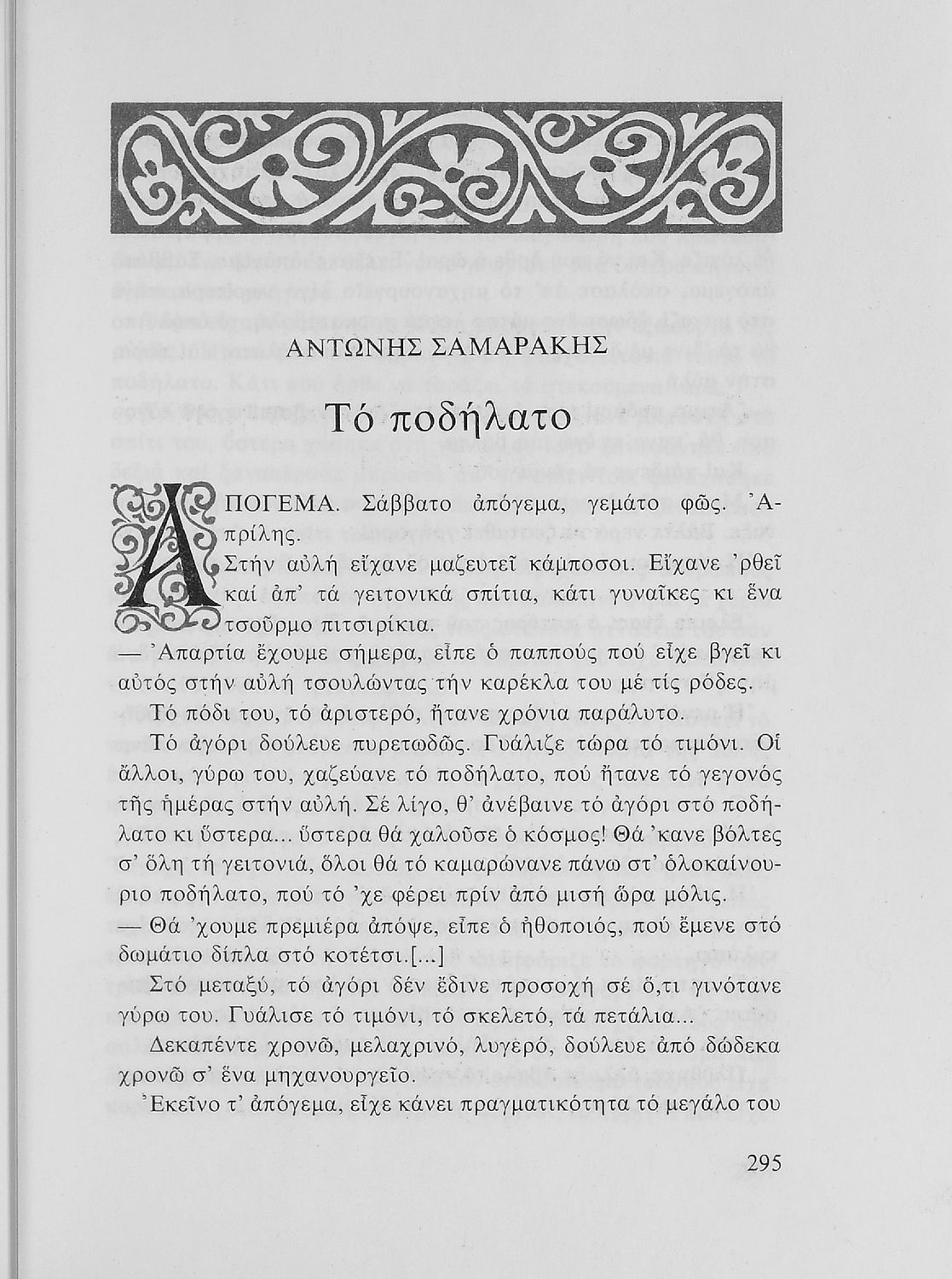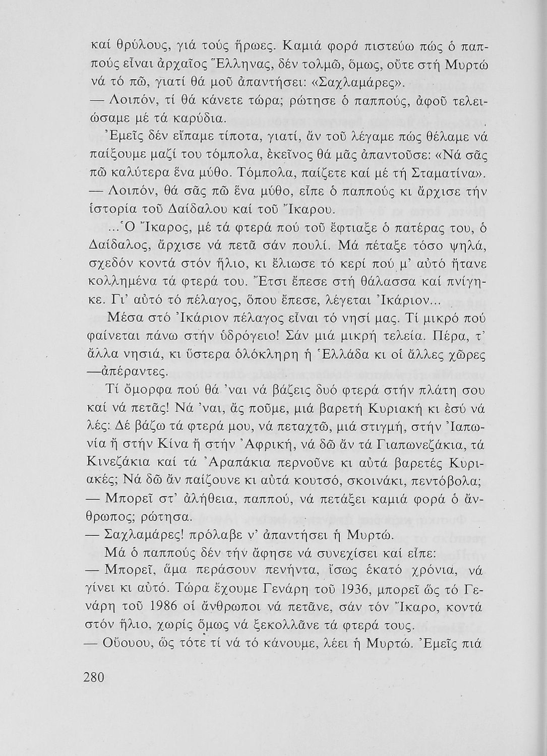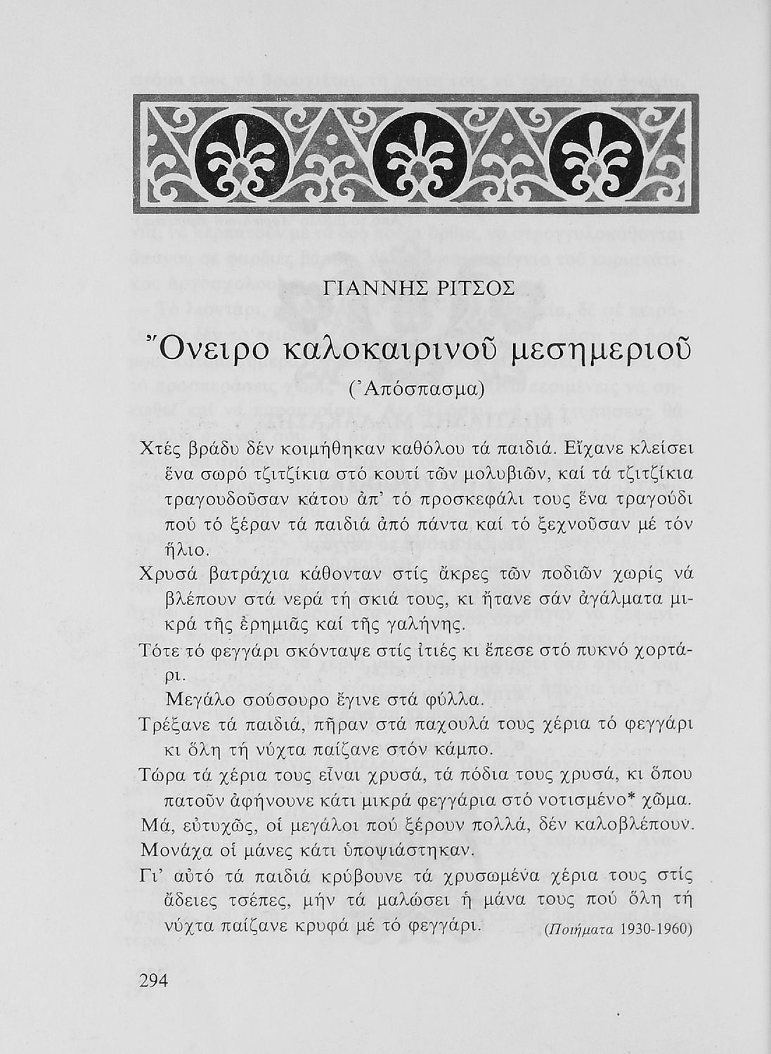 Αναγνωστικό για τις Ε' και ΣΤ΄ Δημοτικού που περιλαμβάνει πεζά και ποιήματα της Νέας Ελληνικής Λογοτεχνίας εμπνευσμένα από την καθημερινότητα των παιδιών και των οικογενειών τους, την ελληνική ιστορία, τις οικογενειακές στιγμές και εορτές, το παιχνίδι και την εθνική παράδοση, και τα δημοτικά και ακριτικά τραγούδια. Περιέχει και 5 κείμενα γραμμένα στην καθαρεύουσα με θέματα από τον κοινωνικό και εθνικό βίο, και ερμηνευτικό λεξιλόγιο.. Το βιβλίο είναι αφιερωμένο στη μνήμη της Πηνελόπης Δέλτα.