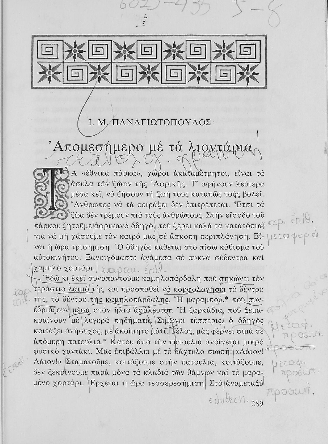 Παρουσίαση περιεχομένου: Αναγνωστικό για τις Ε' και ΣΤ΄ Δημοτικού που περιλαμβάνει πεζά και ποιήματα της Νέας Ελληνικής Λογοτεχνίας εμπνευσμένα από την καθημερινότητα των παιδιών και των οικογενειών τους, την ελληνική ιστορία, τις οικογενειακές στιγμές και εορτές, το παιχνίδι και την εθνική παράδοση, και τα δημοτικά και ακριτικά τραγούδια. Περιέχει και 5 κείμενα γραμμένα στην καθαρεύουσα με θέματα από τον κοινωνικό και εθνικό βίο, και ερμηνευτικό λεξιλόγιο.. Το βιβλίο είναι αφιερωμένο στη μνήμη της Πηνελόπης Δέλτα.