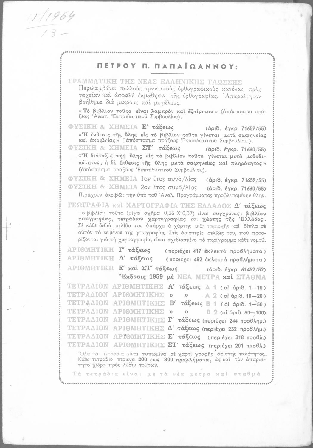 Τίτλος: Φυσική και Χημεία Ε΄ Τάξεως του Δημοτικού Σχολείου