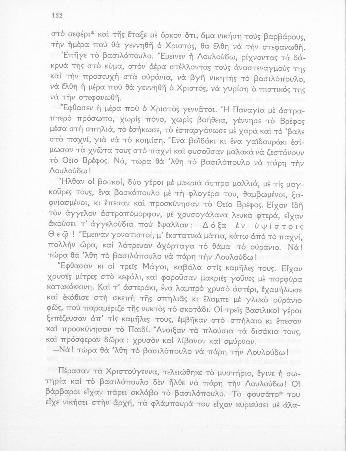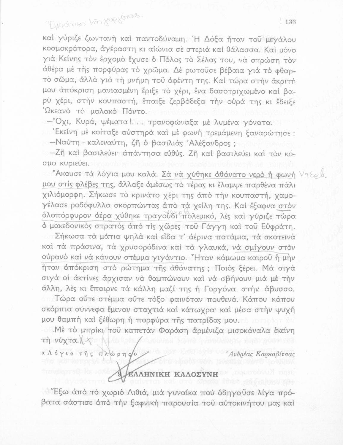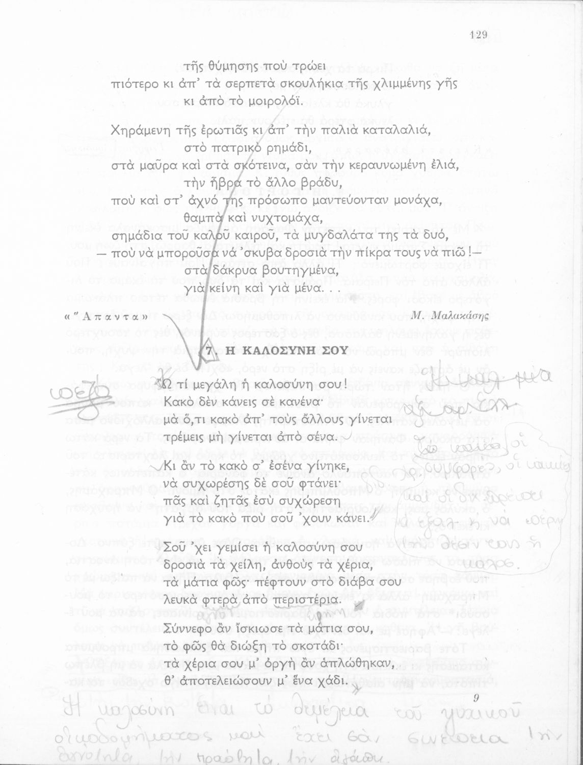 Σχολικό εγχειρίδιο Νέων Ελληνικών Δ΄ Γυμνασίου Θηλέων που περιλαμβάνει πεζά, ποιήματα και δημοτικά τραγούδια εμπνευσμένα από την σύγχρονη ελληνική ιστορία και την οικογενειακή και θρησκευτική ζωή. Περιέχει και
