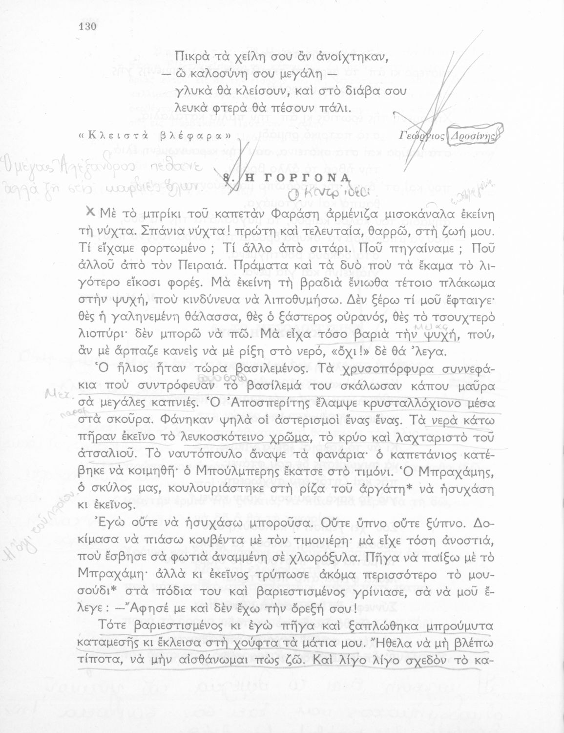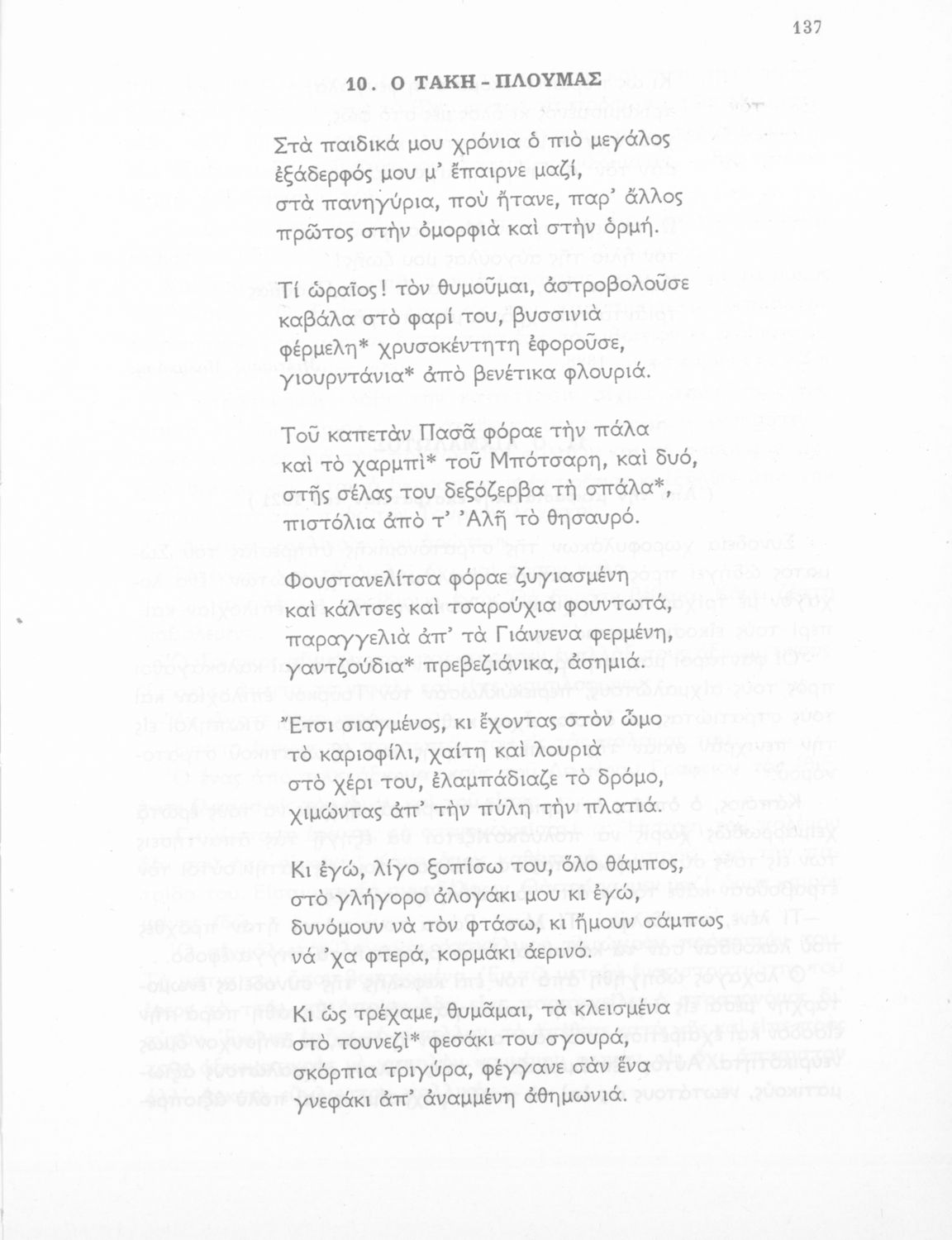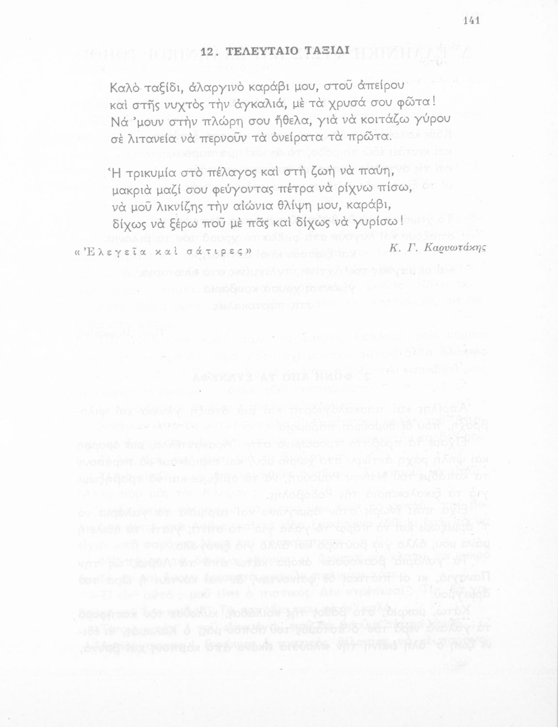 Σχολικό εγχειρίδιο Νέων Ελληνικών Δ΄ Γυμνασίου Θηλέων που περιλαμβάνει πεζά, ποιήματα και δημοτικά τραγούδια εμπνευσμένα από την σύγχρονη ελληνική ιστορία και την οικογενειακή και θρησκευτική ζωή. Περιέχει και