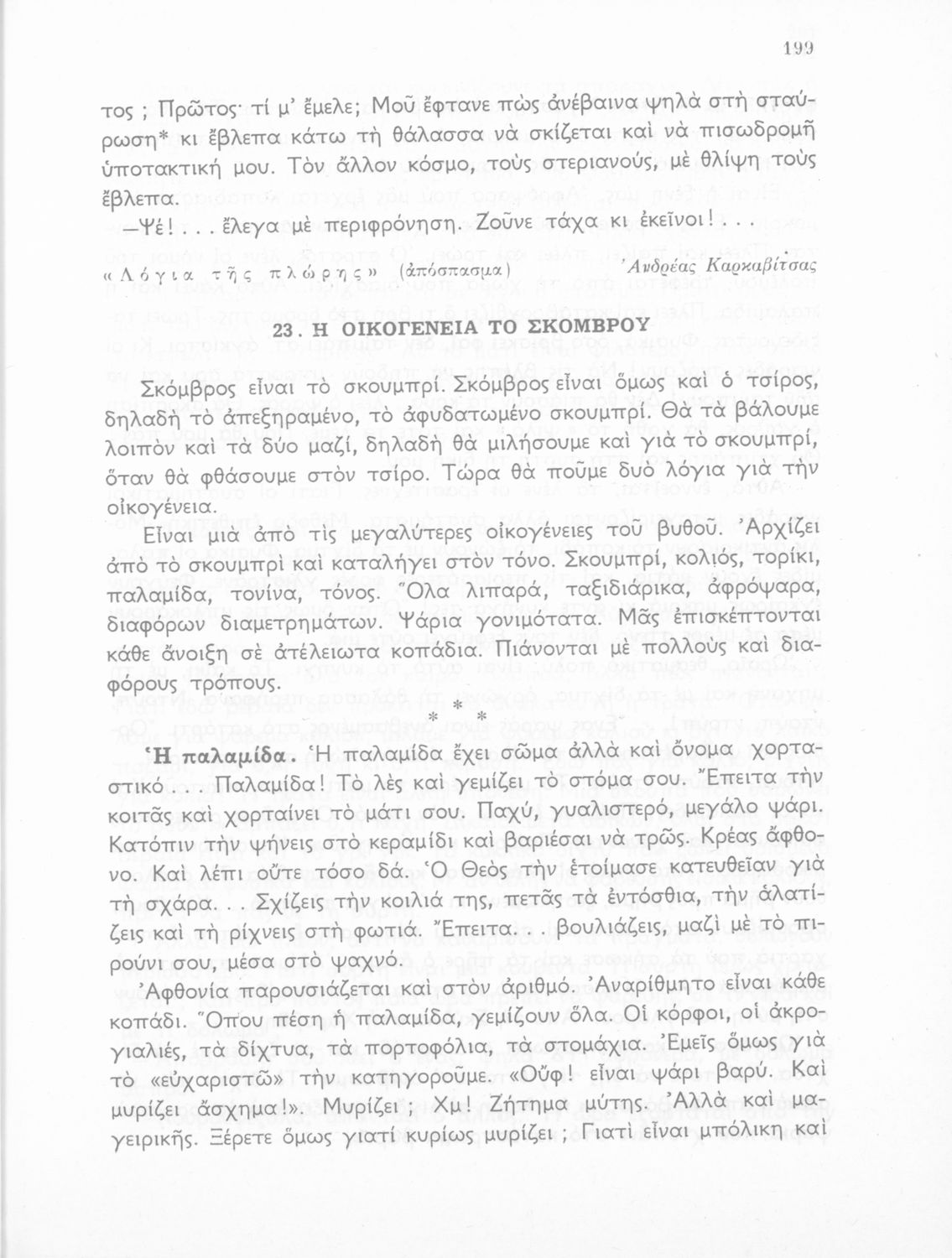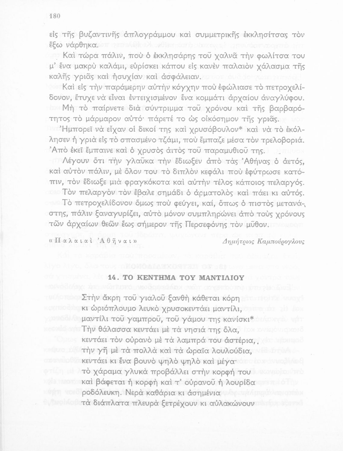 Σχολικό εγχειρίδιο Νέων Ελληνικών Δ' Γυμνασίου που περιλαμβάνει πεζά, ποιήματα και παροιμίες Ελλήνων συγγραφέων εμπνευσμένα από τη θρησκευτική και κοινωνική ζωή, τη βυζαντινή ιστορία, την αρχαία και σύγχρονη ελληνική ιστορία, και την ελληνική φύση. Περιέχει παράρτημα με βιογραφίες των συγγραφέων και λεξιλόγιο.