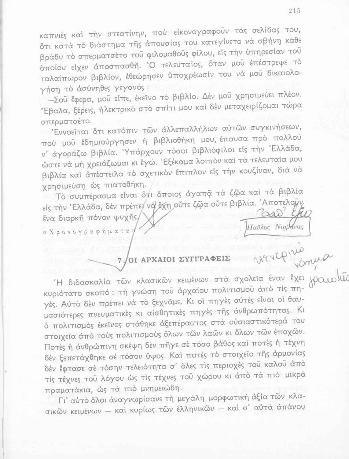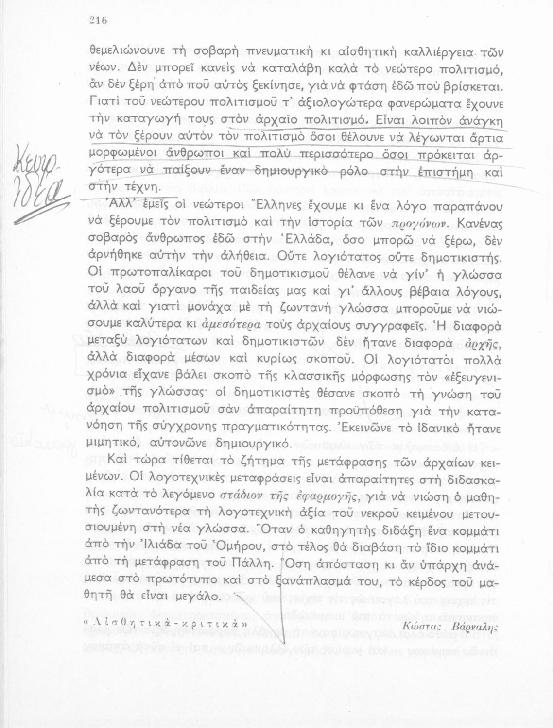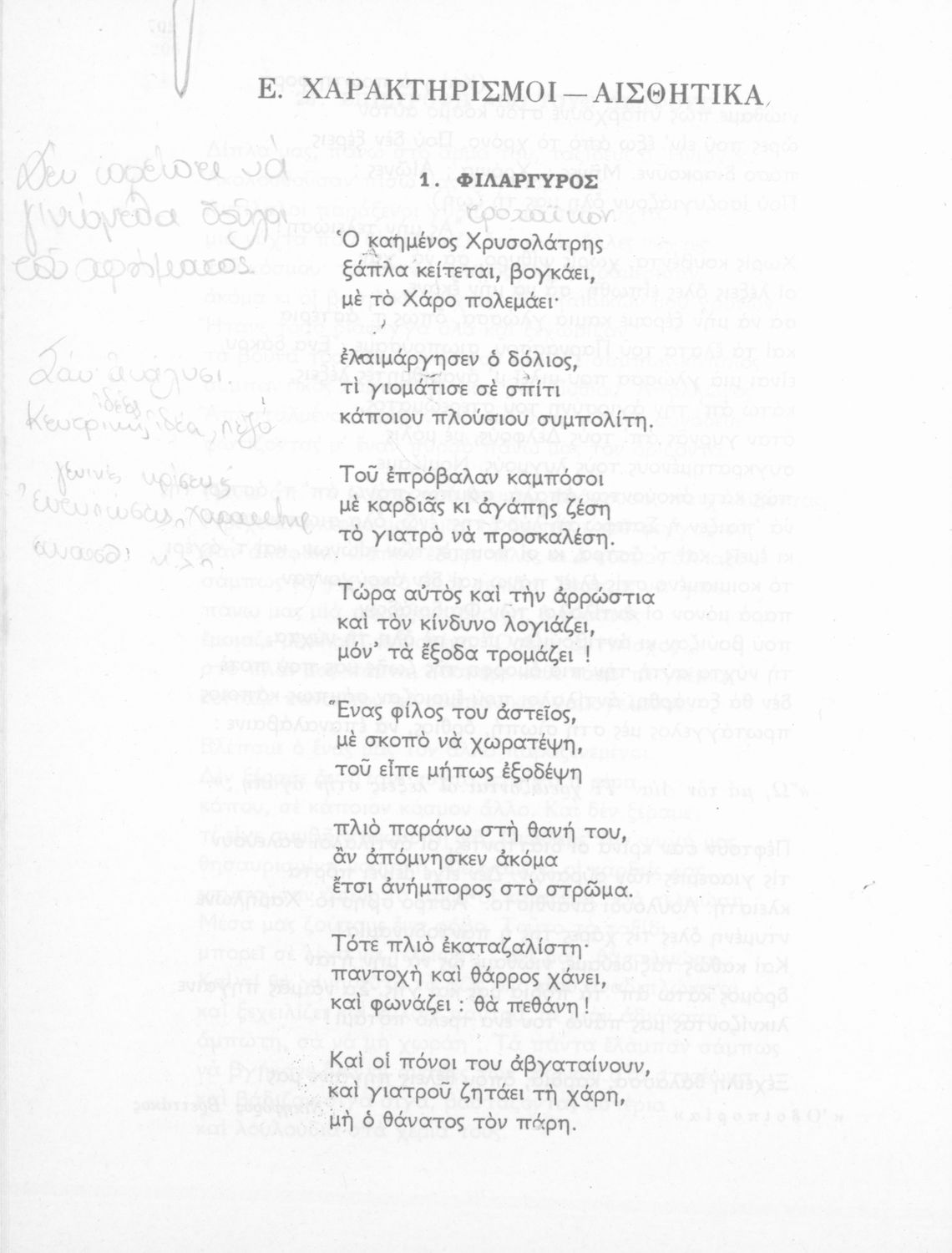 Σχολικό εγχειρίδιο Νέων Ελληνικών Δ' Γυμνασίου που περιλαμβάνει πεζά, ποιήματα και παροιμίες Ελλήνων συγγραφέων εμπνευσμένα από τη θρησκευτική και κοινωνική ζωή, τη βυζαντινή ιστορία, την αρχαία και σύγχρονη ελληνική ιστορία, και την ελληνική φύση. Περιέχει παράρτημα με βιογραφίες των συγγραφέων και λεξιλόγιο.