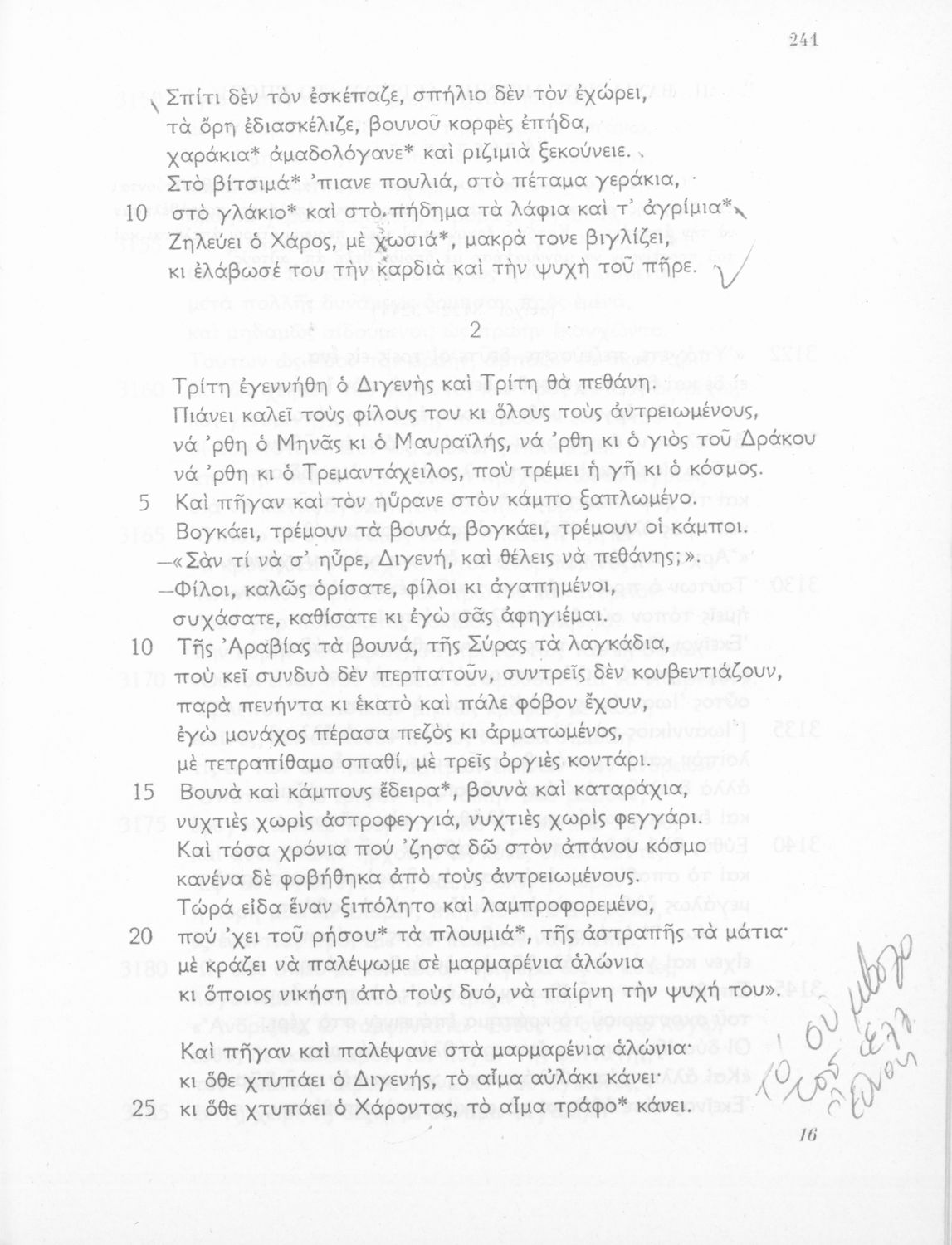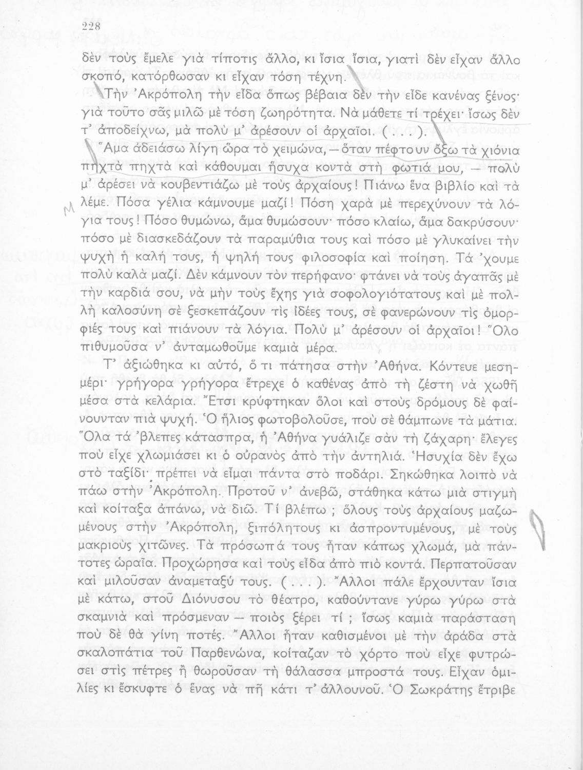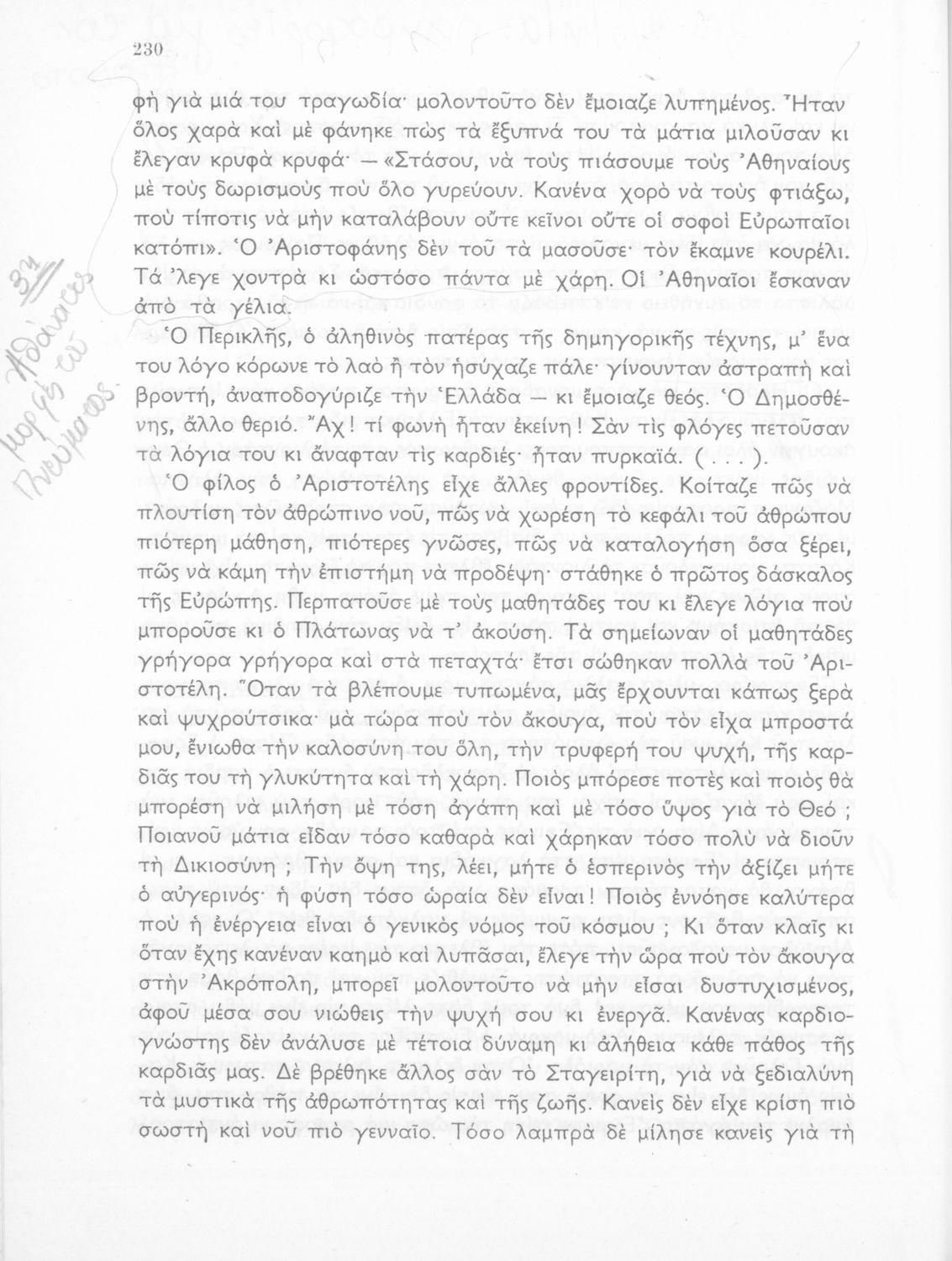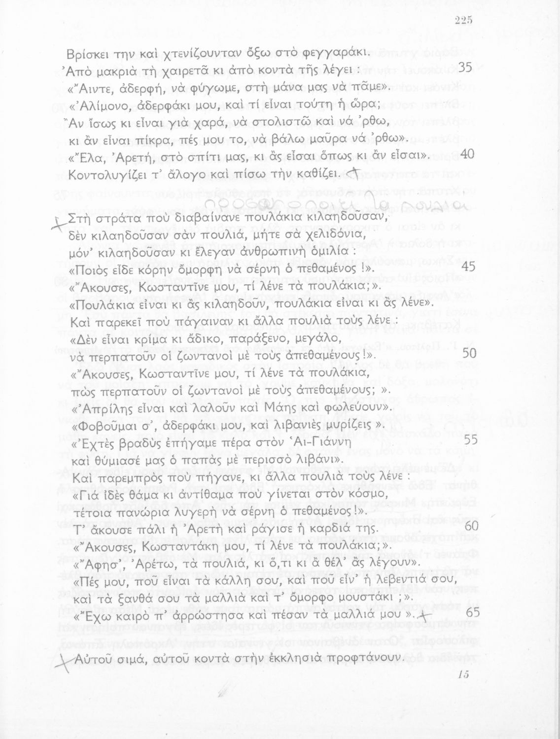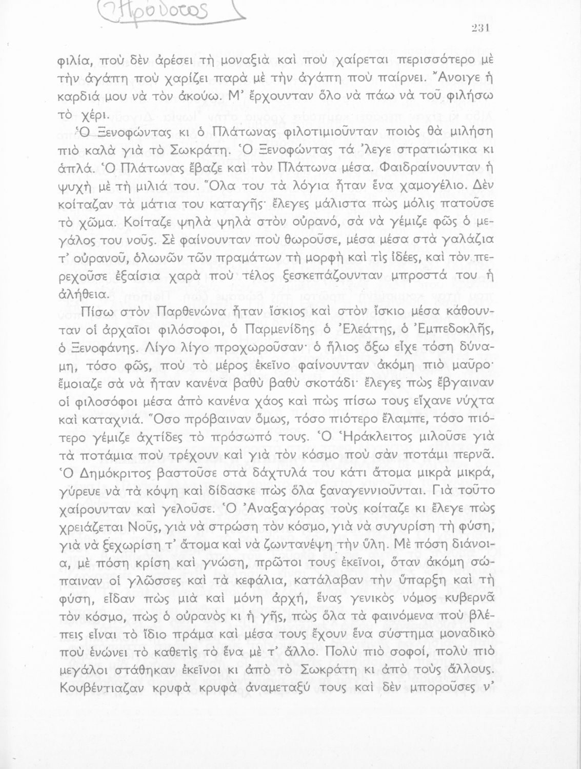 Σχολικό εγχειρίδιο Νέων Ελληνικών Δ΄ Γυμνασίου Θηλέων που περιλαμβάνει πεζά, ποιήματα και δημοτικά τραγούδια εμπνευσμένα από την σύγχρονη ελληνική ιστορία και την οικογενειακή και θρησκευτική ζωή. Περιέχει και