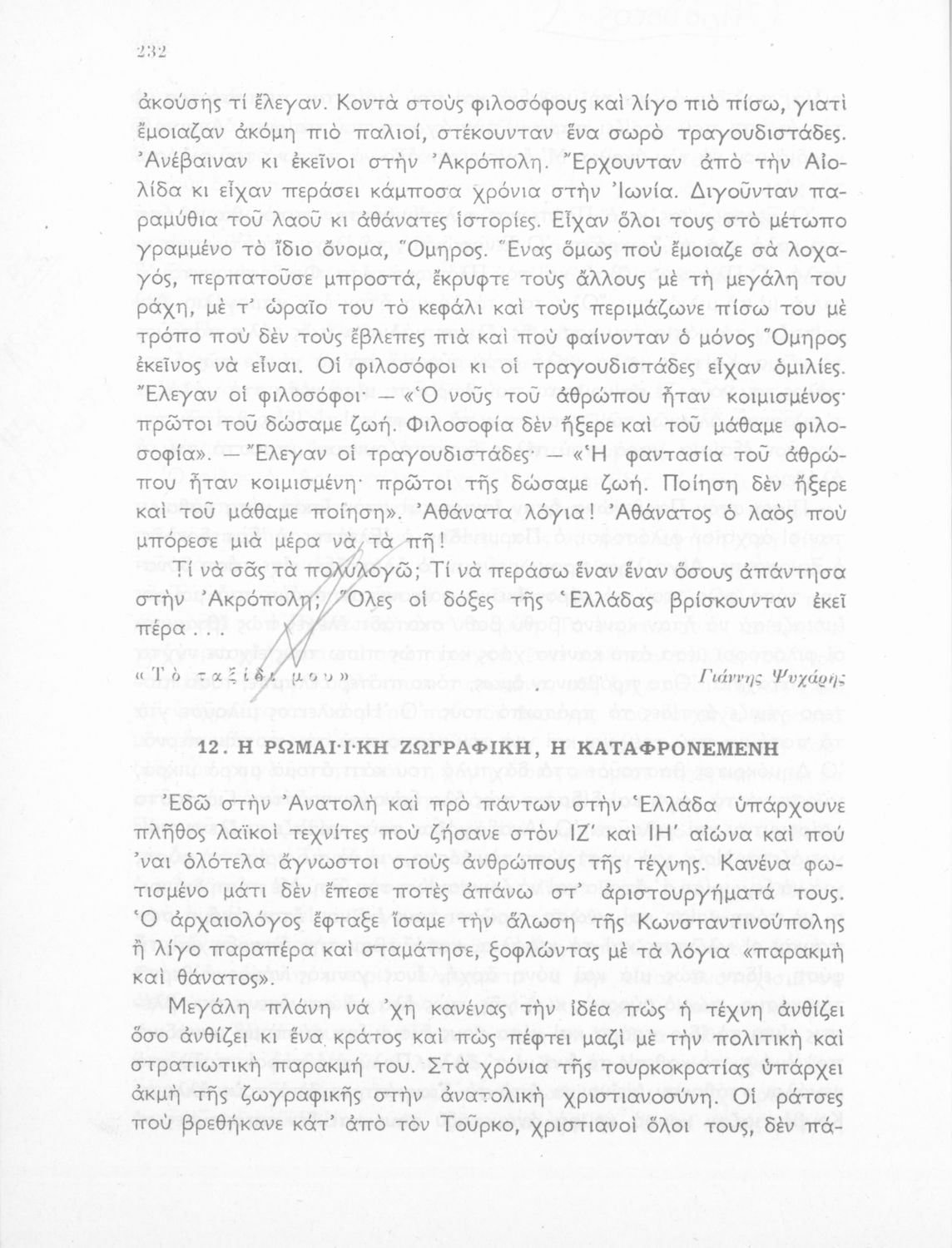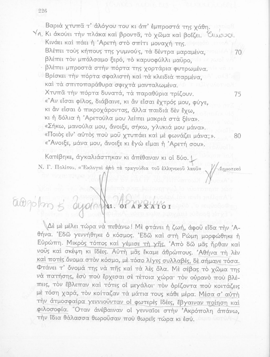 Σχολικό εγχειρίδιο Νέων Ελληνικών Δ΄ Γυμνασίου και Β΄ Αστικού Σχολείου που περιέχει πεζά και ποιήματα Ελλήνων συγγραφέων εμπνευσμένα από τη θρησκευτική και κοινωνική ζωή, την ελληνική μυθολογία, την αρχαία και