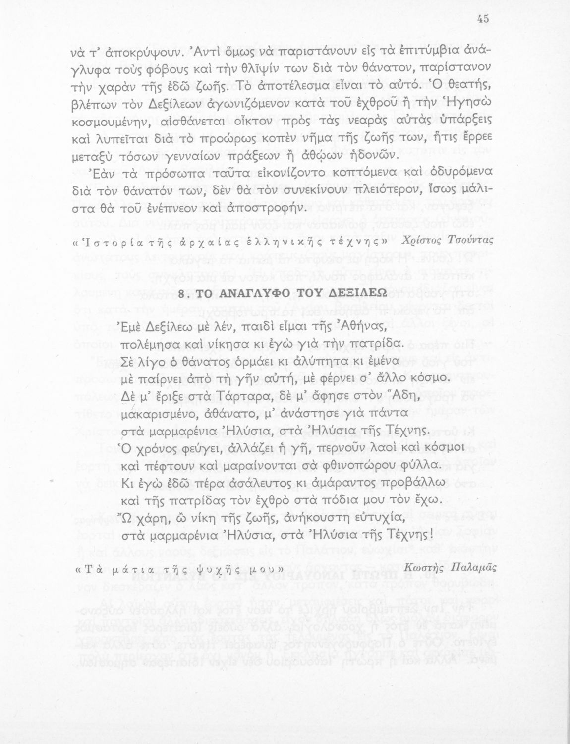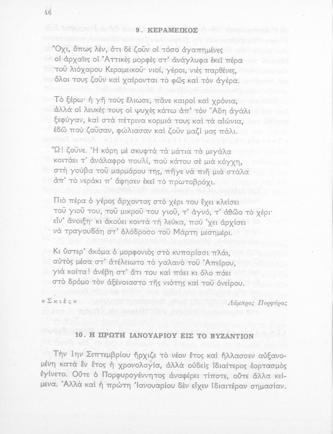 Σχολικό εγχειρίδιο Νέων Ελληνικών Δ΄ Γυμνασίου και Β΄ Αστικού Σχολείου που περιέχει πεζά και ποιήματα Ελλήνων συγγραφέων εμπνευσμένα από τη θρησκευτική και κοινωνική ζωή, την ελληνική μυθολογία, την αρχαία και