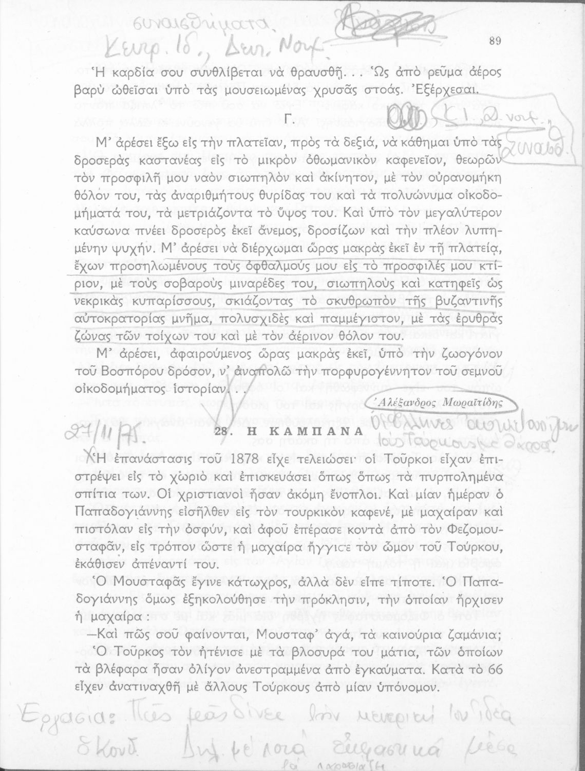 Σχολικό εγχειρίδιο Νέων Ελληνικών Δ' Γυμνασίου που περιλαμβάνει πεζά, ποιήματα και παροιμίες Ελλήνων συγγραφέων εμπνευσμένα από τη θρησκευτική και κοινωνική ζωή, τη βυζαντινή ιστορία, την αρχαία και σύγχρονη ελληνική ιστορία, και την ελληνική φύση. Περιέχει παράρτημα με βιογραφίες των συγγραφέων και λεξιλόγιο.