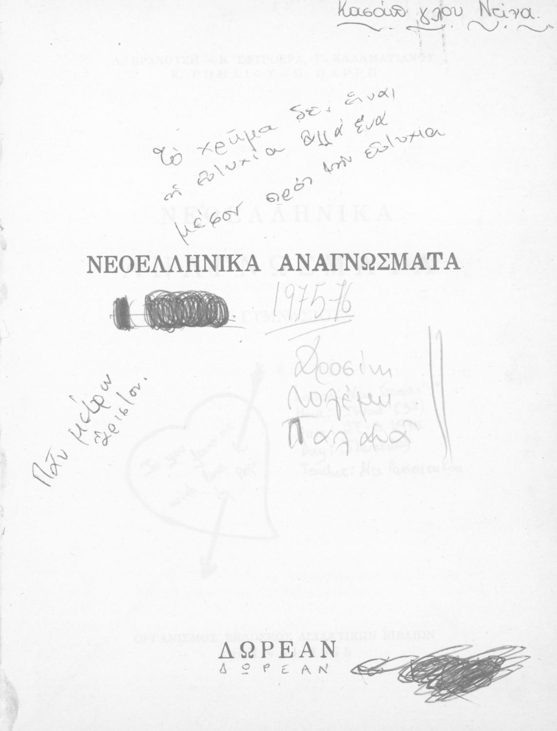 Σχολικό εγχειρίδιο Νέων Ελληνικών Δ΄ Γυμνασίου Θηλέων που περιλαμβάνει πεζά, ποιήματα και δημοτικά τραγούδια εμπνευσμένα από την σύγχρονη ελληνική ιστορία και την οικογενειακή και θρησκευτική ζωή. Περιέχει και