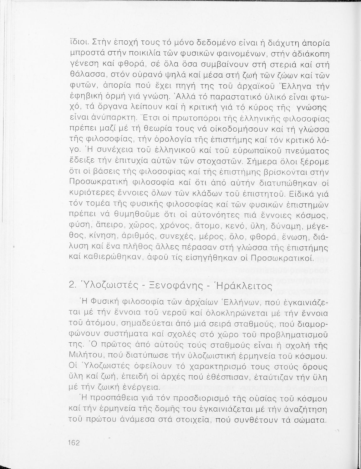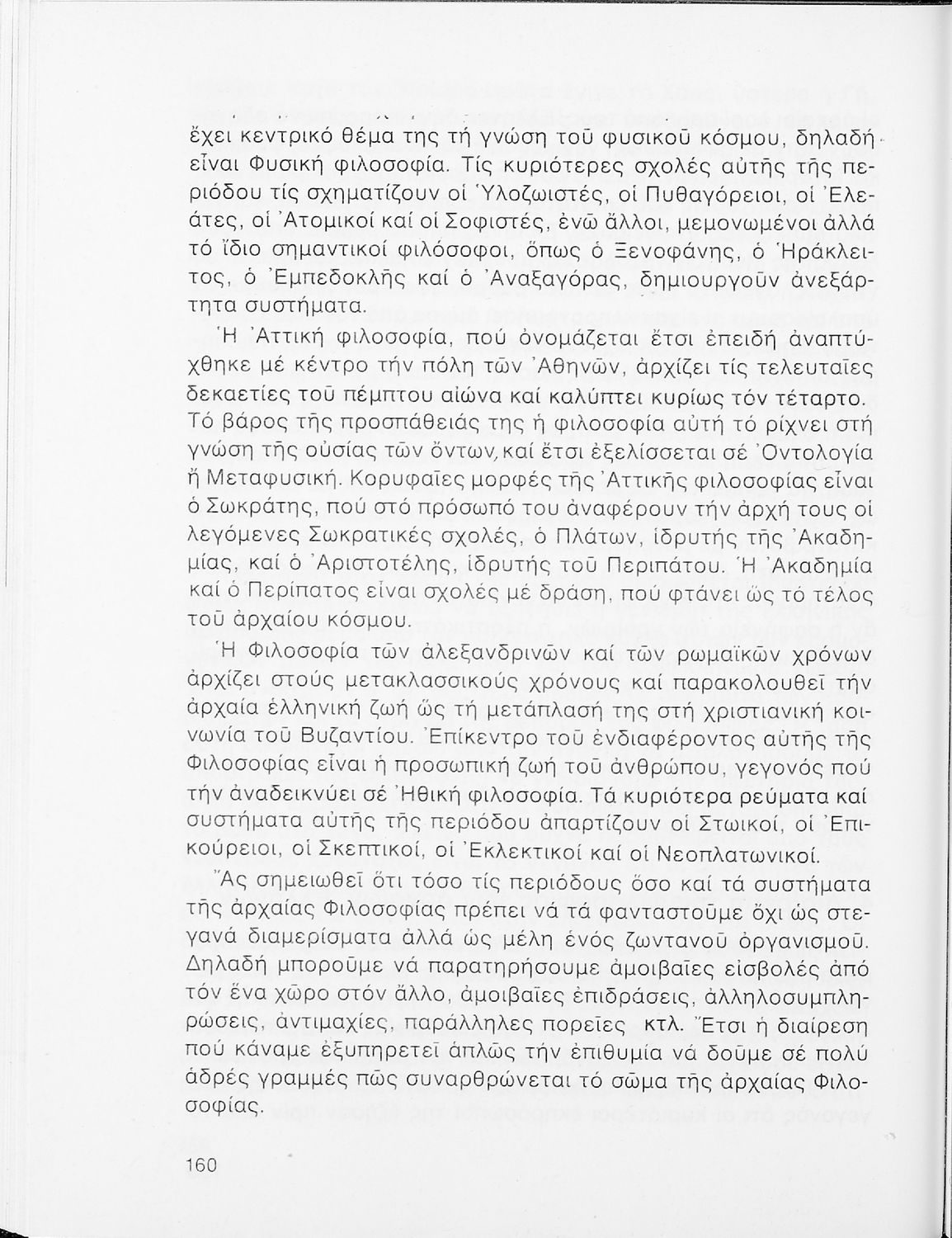 Σχολικό εγχειρίδιο Φιλοσοφίας Γ΄ Λυκείου που ακολουθεί μια ιστορική πραγμάτευση επιστημολογικών, ηθικών και αισθητικών ζητημάτων και καλύπτει δύο περιόδους: α) την ελληνική αρχαιότητα και β) την σύγχρονη ευρωπαϊκή σκέψη από τον Descartes και τον Kant στον λογικό θετικισμό και τον νεοκαντιανισμό. Περιέχει εκτενές κεφάλαιο για τους προσωκρατικούς.