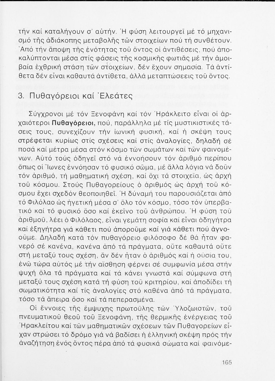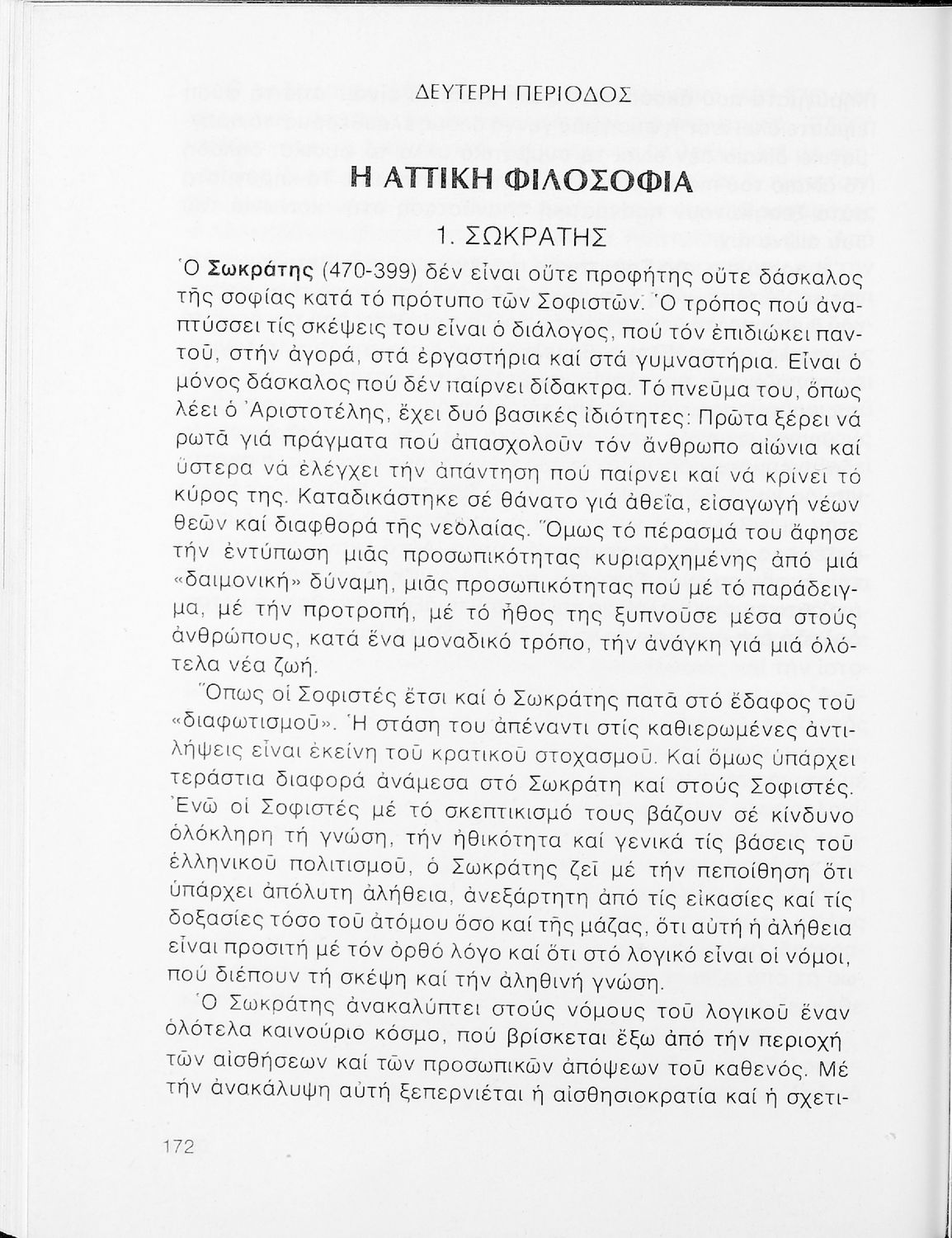 Σχολικό εγχειρίδιο Φιλοσοφίας Γ΄ Λυκείου που ακολουθεί μια ιστορική πραγμάτευση επιστημολογικών, ηθικών και αισθητικών ζητημάτων και καλύπτει δύο περιόδους: α) την ελληνική αρχαιότητα και β) την σύγχρονη ευρωπαϊκή σκέψη από τον Descartes και τον Kant στον λογικό θετικισμό και τον νεοκαντιανισμό. Περιέχει εκτενές κεφάλαιο για τους προσωκρατικούς.