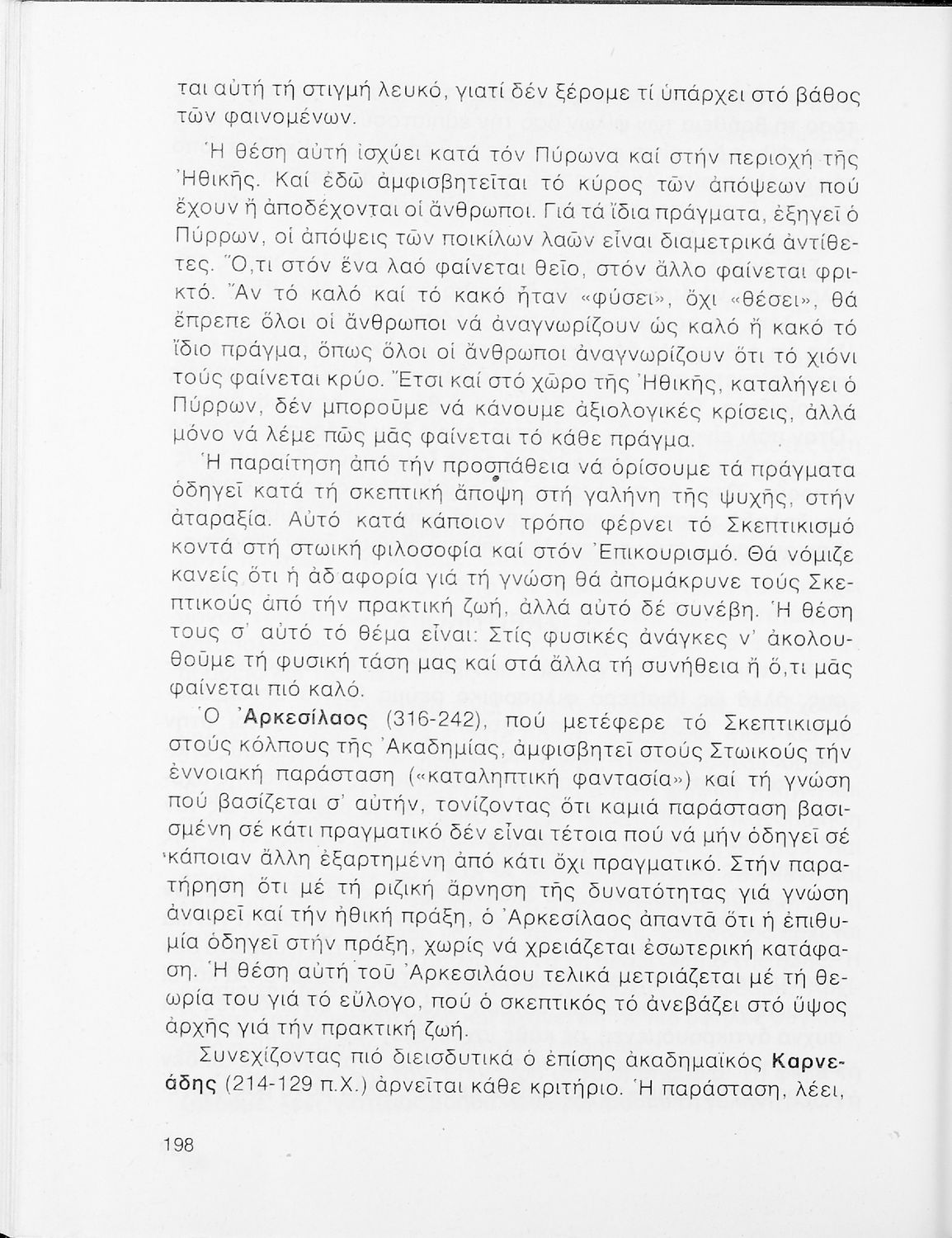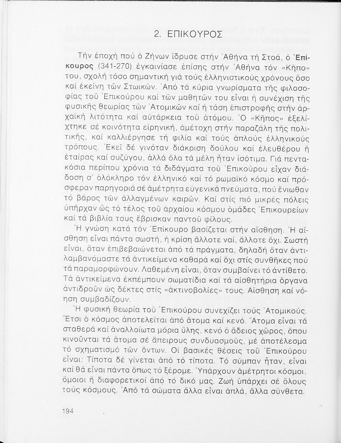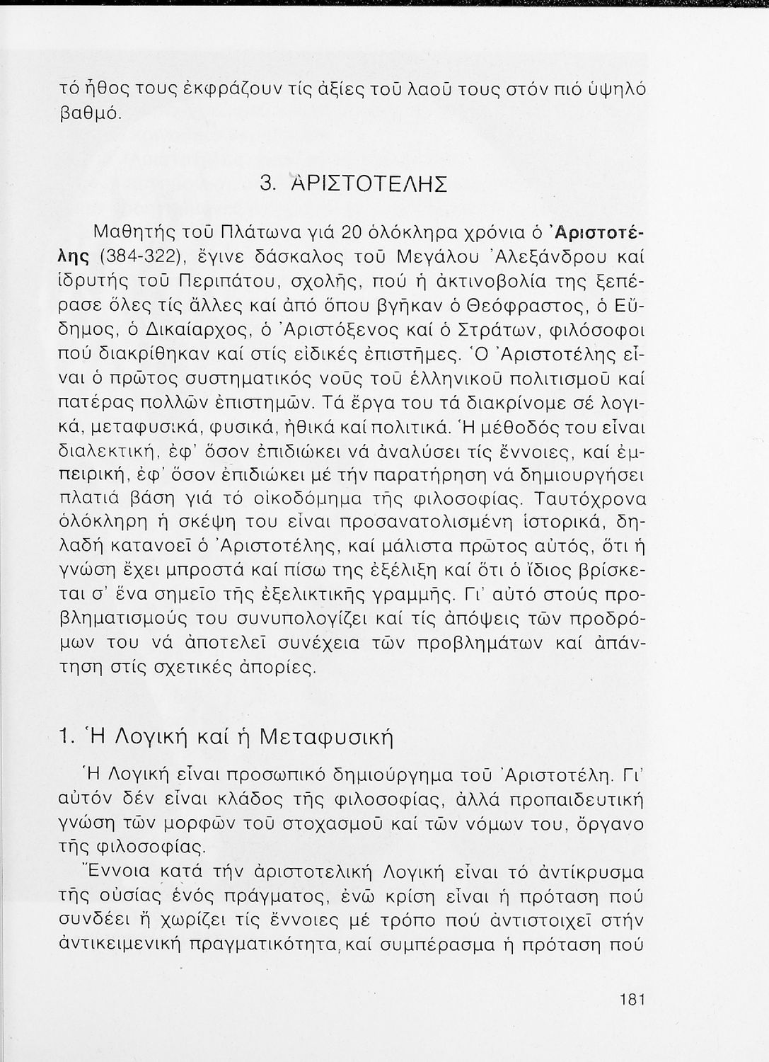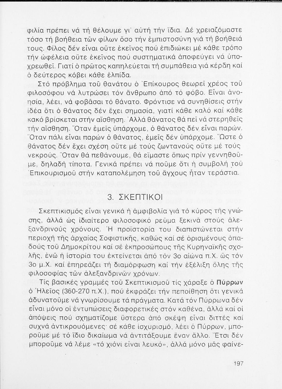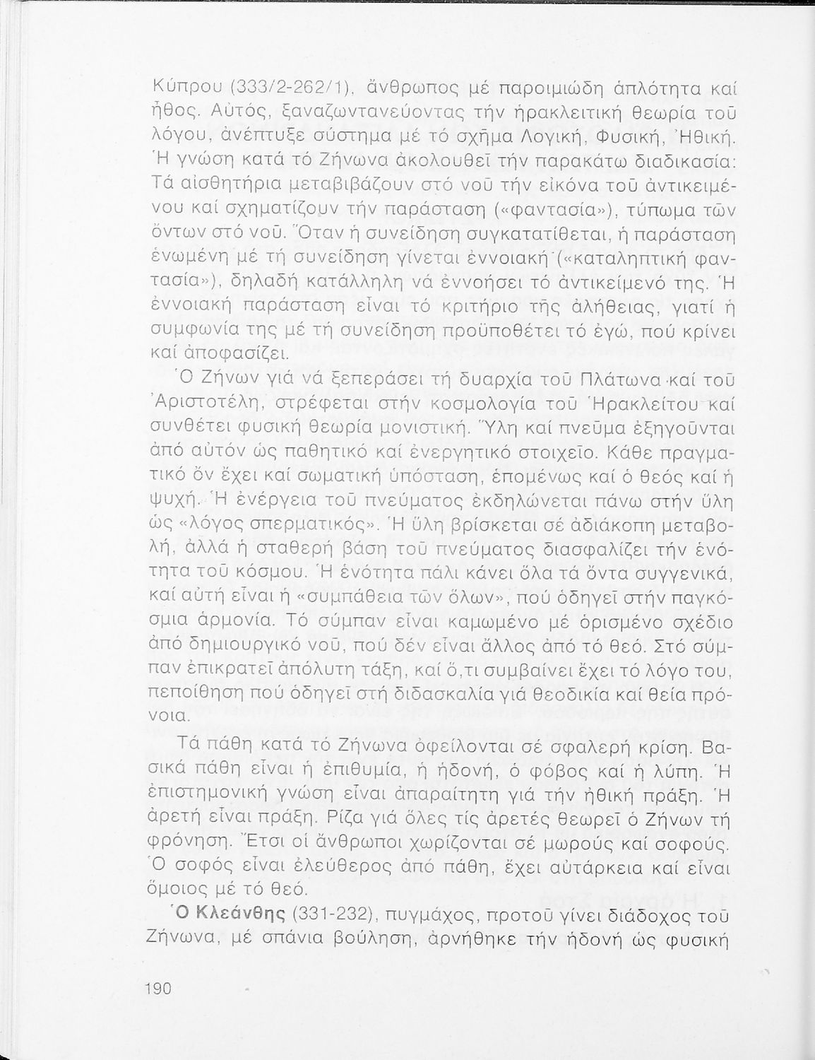 Σχολικό εγχειρίδιο Φιλοσοφίας Γ΄ Λυκείου που ακολουθεί μια ιστορική πραγμάτευση επιστημολογικών, ηθικών και αισθητικών ζητημάτων και καλύπτει δύο περιόδους: α) την ελληνική αρχαιότητα και β) την σύγχρονη ευρωπαϊκή σκέψη από τον Descartes και τον Kant στον λογικό θετικισμό και τον νεοκαντιανισμό. Περιέχει εκτενές κεφάλαιο για τους προσωκρατικούς.