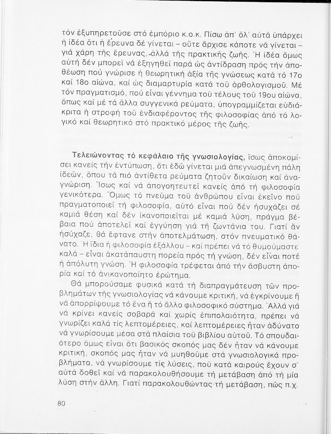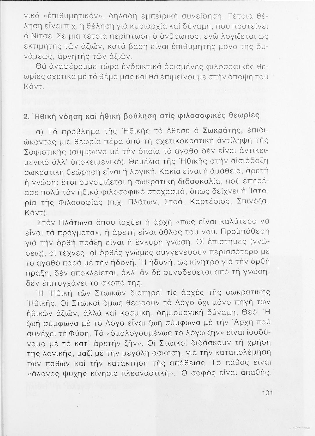 Σχολικό εγχειρίδιο Φιλοσοφίας Γ΄ Λυκείου που ακολουθεί μια ιστορική πραγμάτευση επιστημολογικών, ηθικών και αισθητικών ζητημάτων και καλύπτει δύο περιόδους: α) την ελληνική αρχαιότητα και β) την σύγχρονη ευρωπαϊκή σκέψη από τον Descartes και τον Kant στον λογικό θετικισμό και τον νεοκαντιανισμό. Περιέχει εκτενές κεφάλαιο για τους προσωκρατικούς.