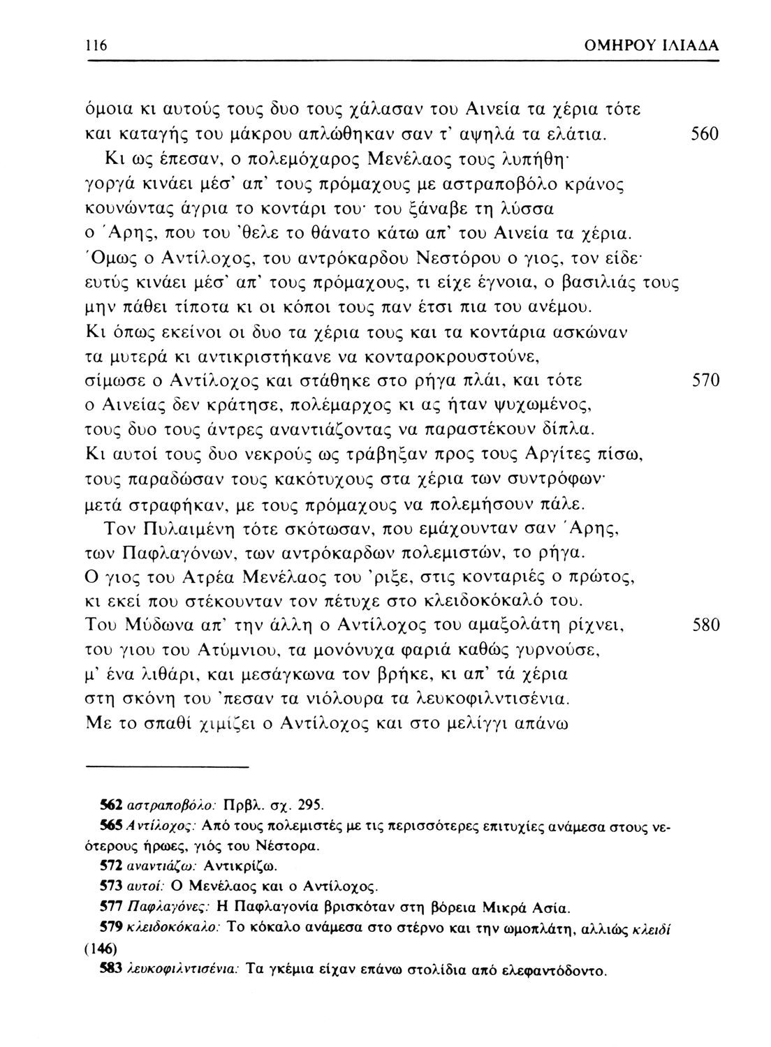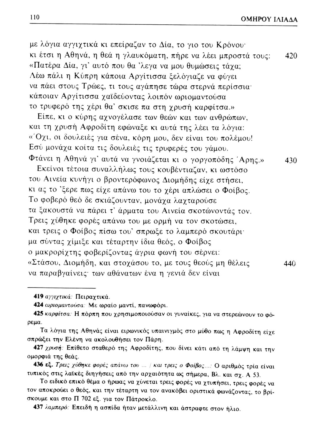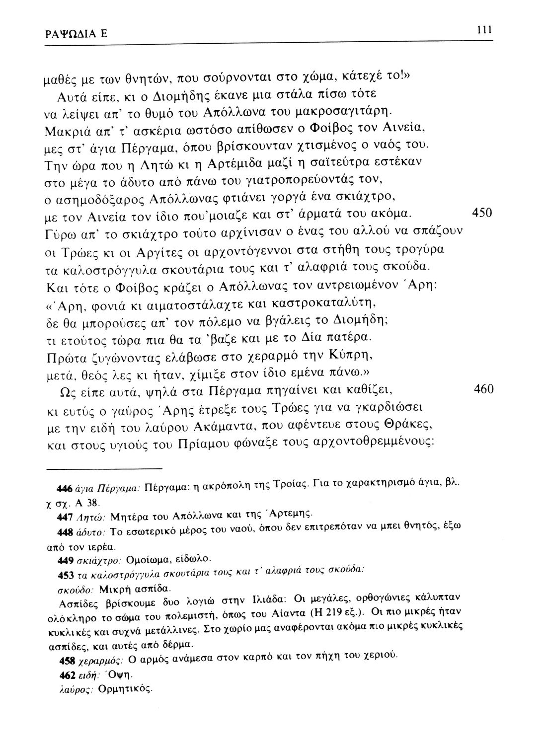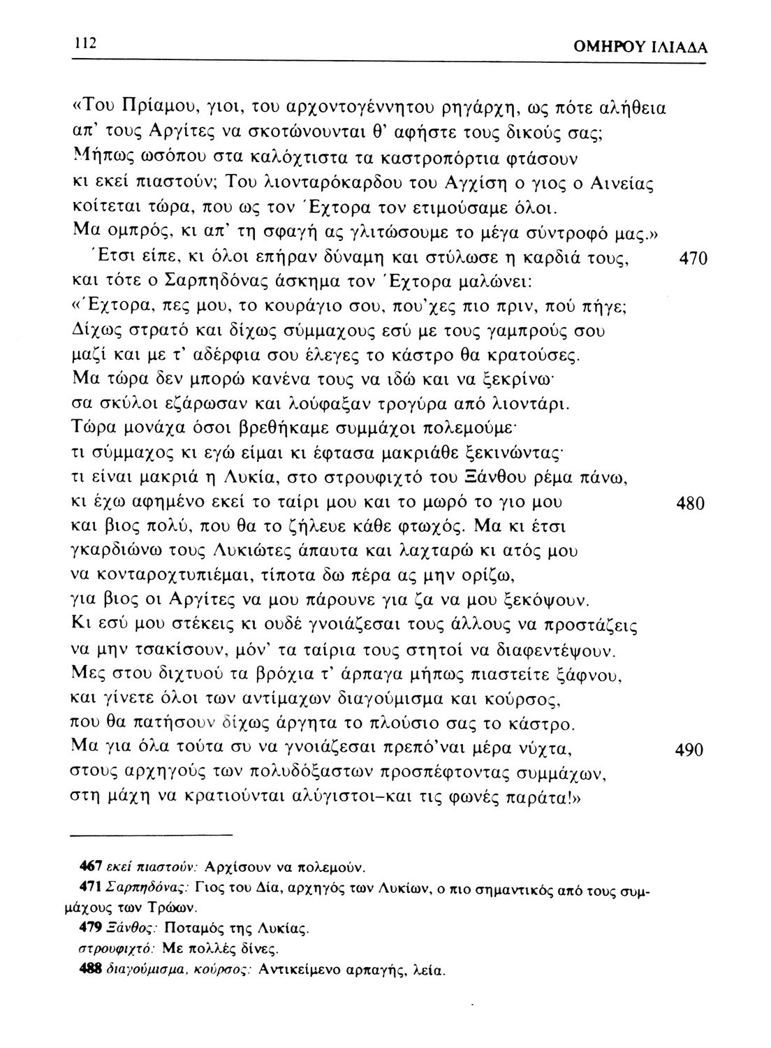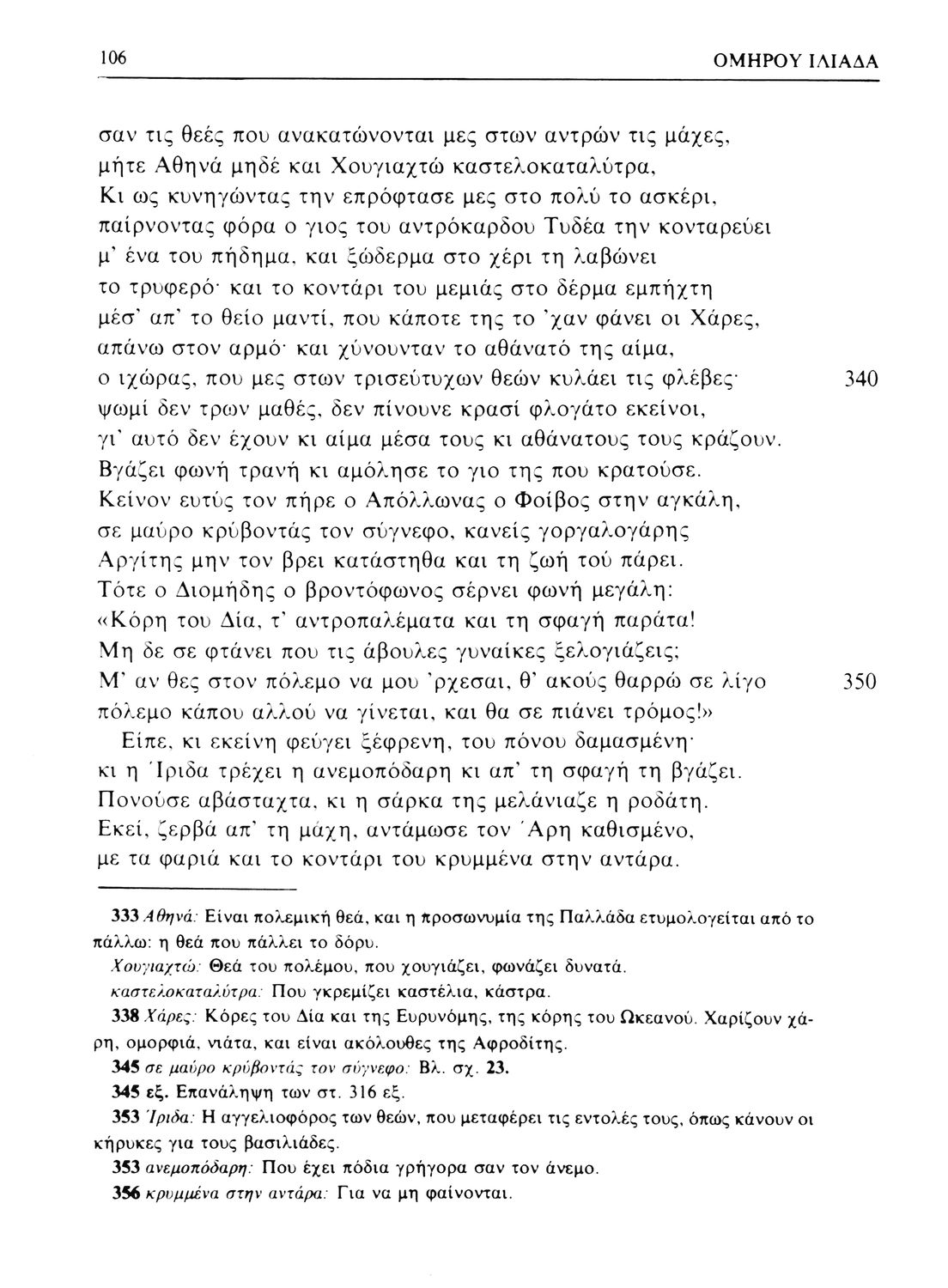 Σχολικό εγχειρίδιο Αρχαίων Ελληνικών για τη Β' Γυμνασίου που περιλαμβάνει την Ιλιάδα Ομήρου. Το βιβλίο αποτελεί το Α΄ τεύχος από δύο. Η εισαγωγή και τα σχόλια έγιναν από την Ελένη Ι. Κακριδή.