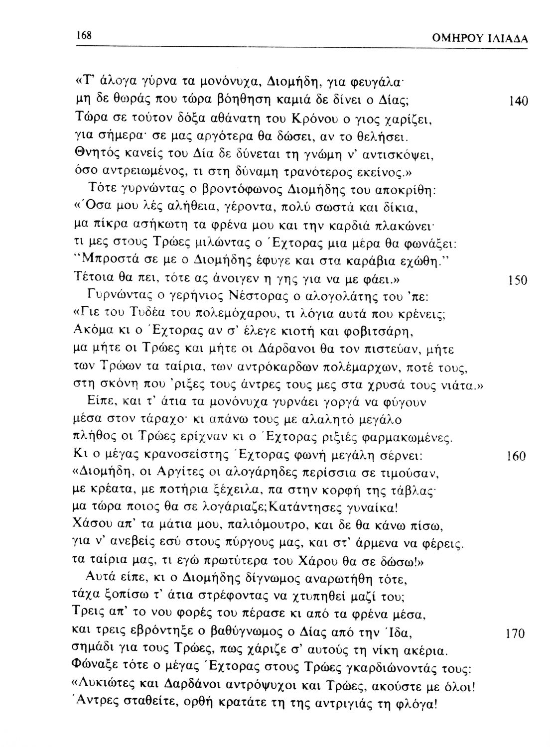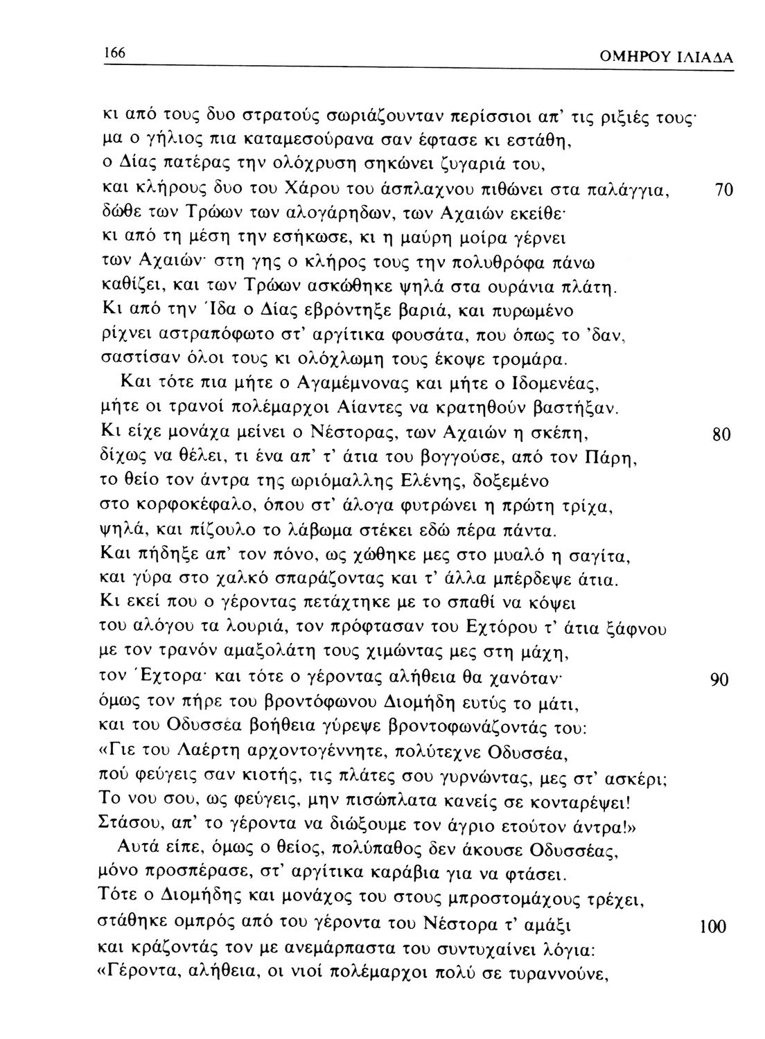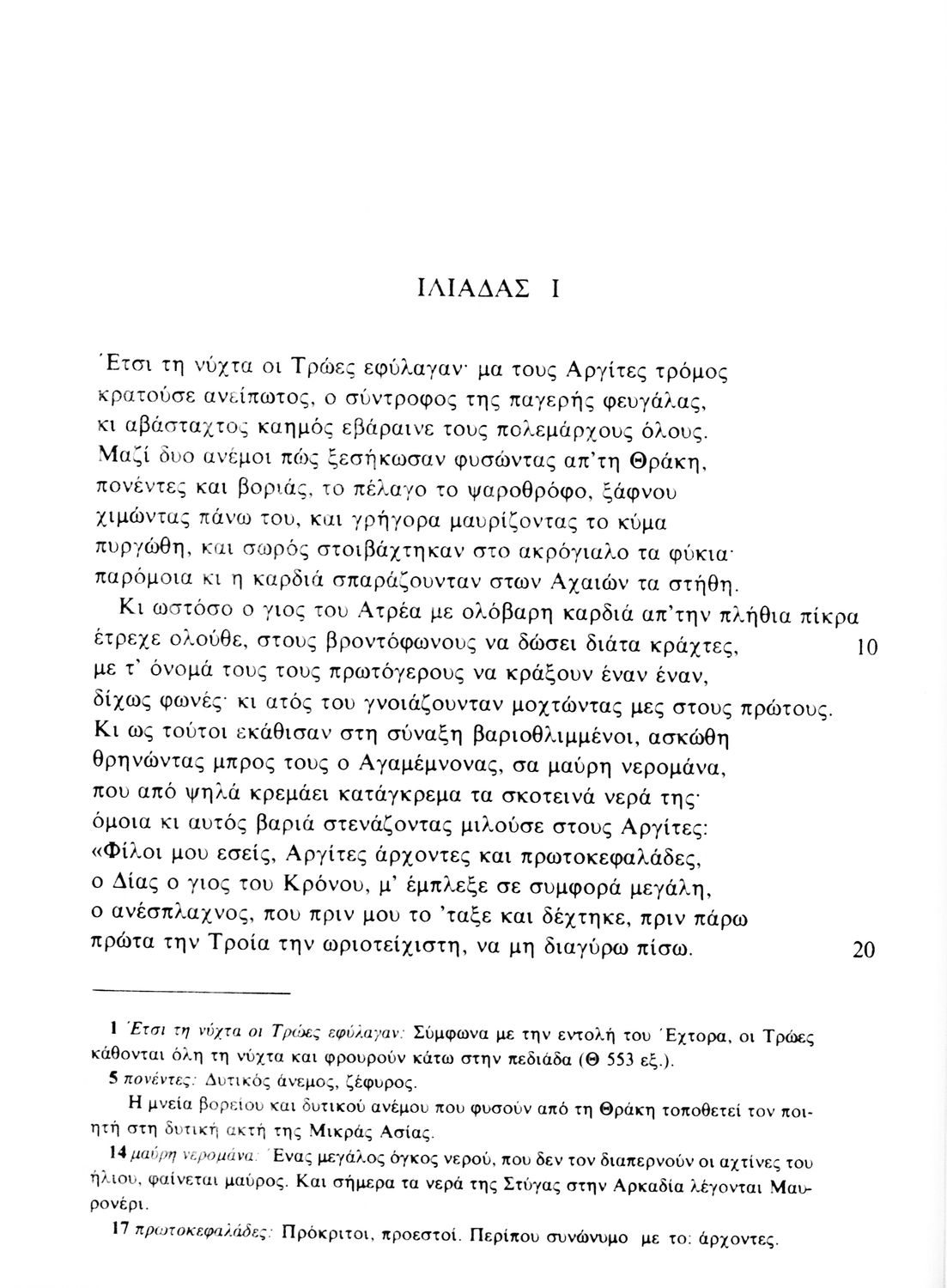 Σχολικό εγχειρίδιο Αρχαίων Ελληνικών για τη Β' Γυμνασίου που περιλαμβάνει την Ιλιάδα Ομήρου. Το βιβλίο αποτελεί το Α΄ τεύχος από δύο. Η εισαγωγή και τα σχόλια έγιναν από την Ελένη Ι. Κακριδή.