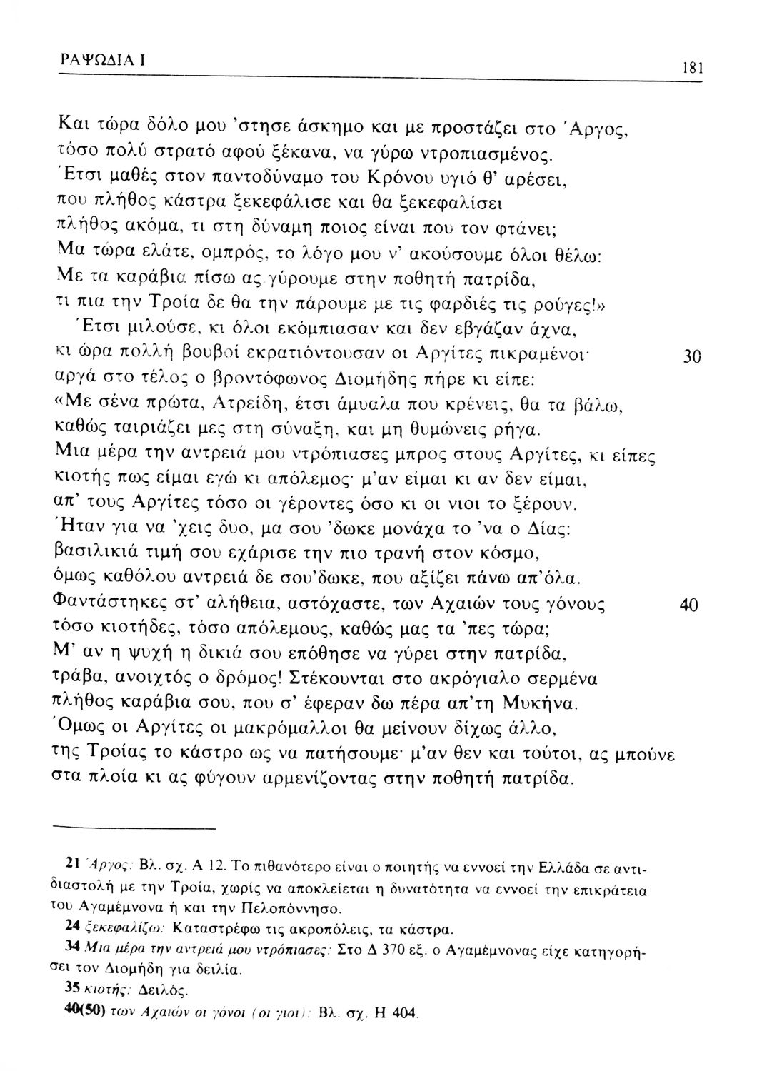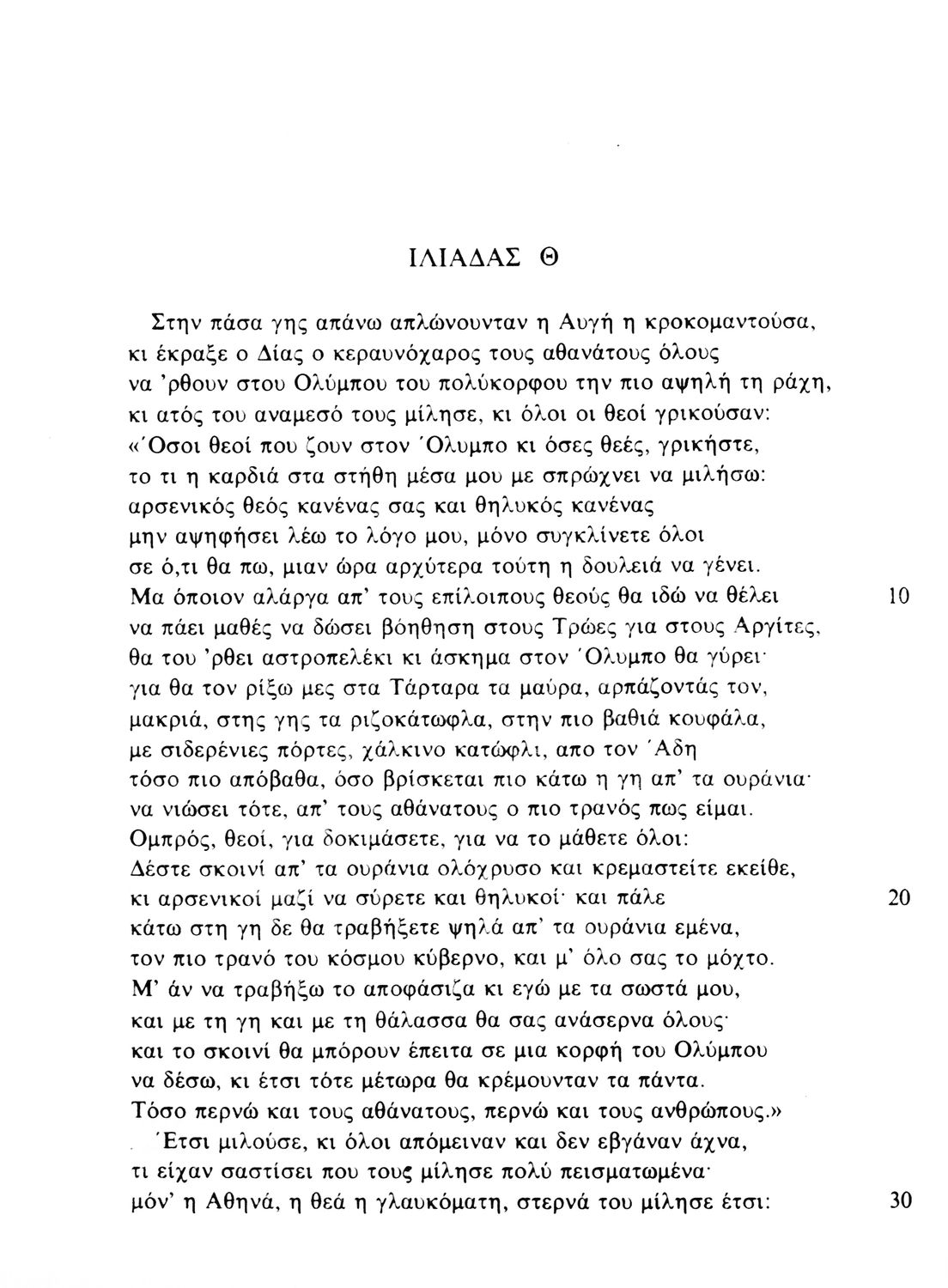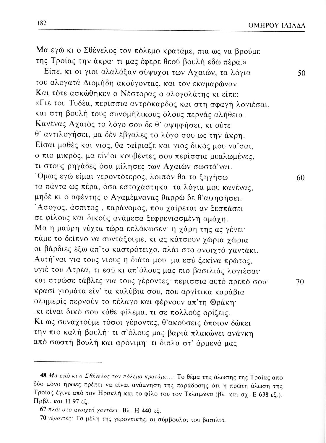 Σχολικό εγχειρίδιο Αρχαίων Ελληνικών για τη Β' Γυμνασίου που περιλαμβάνει την Ιλιάδα Ομήρου. Το βιβλίο αποτελεί το Α΄ τεύχος από δύο. Η εισαγωγή και τα σχόλια έγιναν από την Ελένη Ι. Κακριδή.