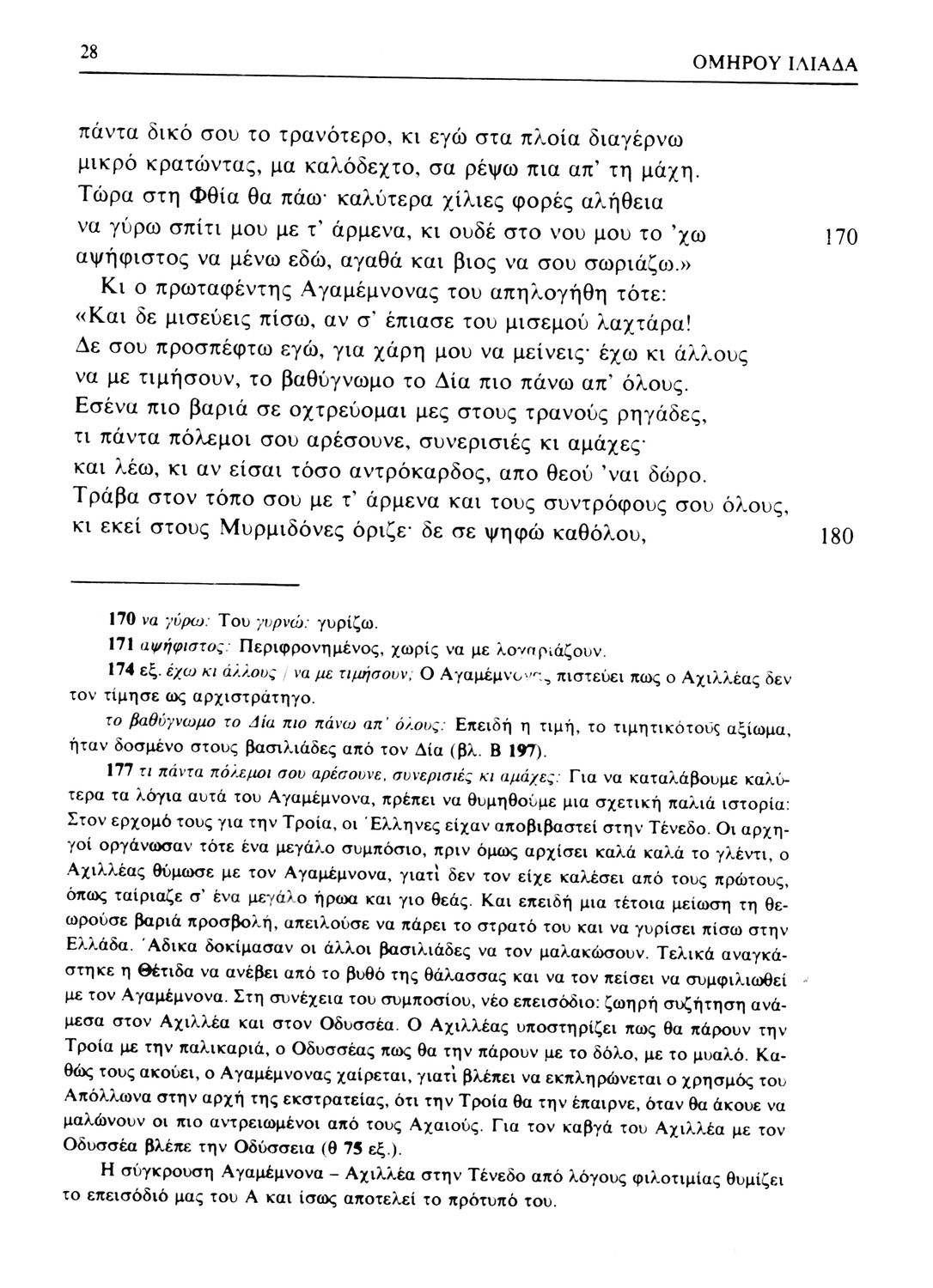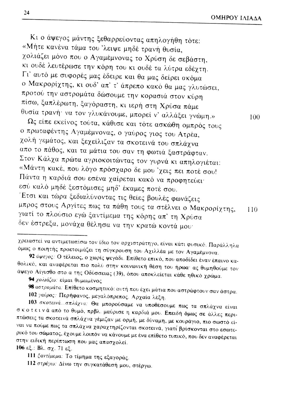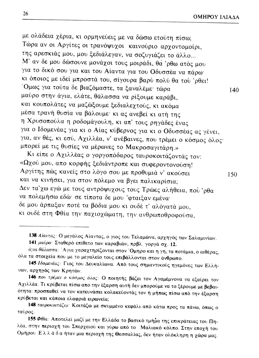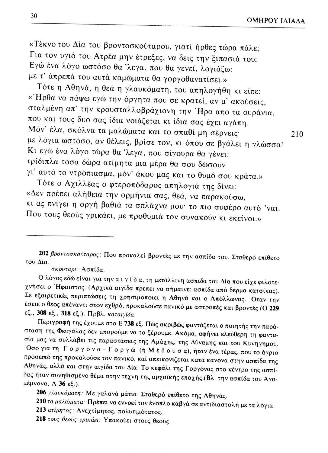 Σχολικό εγχειρίδιο Αρχαίων Ελληνικών για τη Β' Γυμνασίου που περιλαμβάνει την Ιλιάδα Ομήρου. Το βιβλίο αποτελεί το Α΄ τεύχος από δύο. Η εισαγωγή και τα σχόλια έγιναν από την Ελένη Ι. Κακριδή.