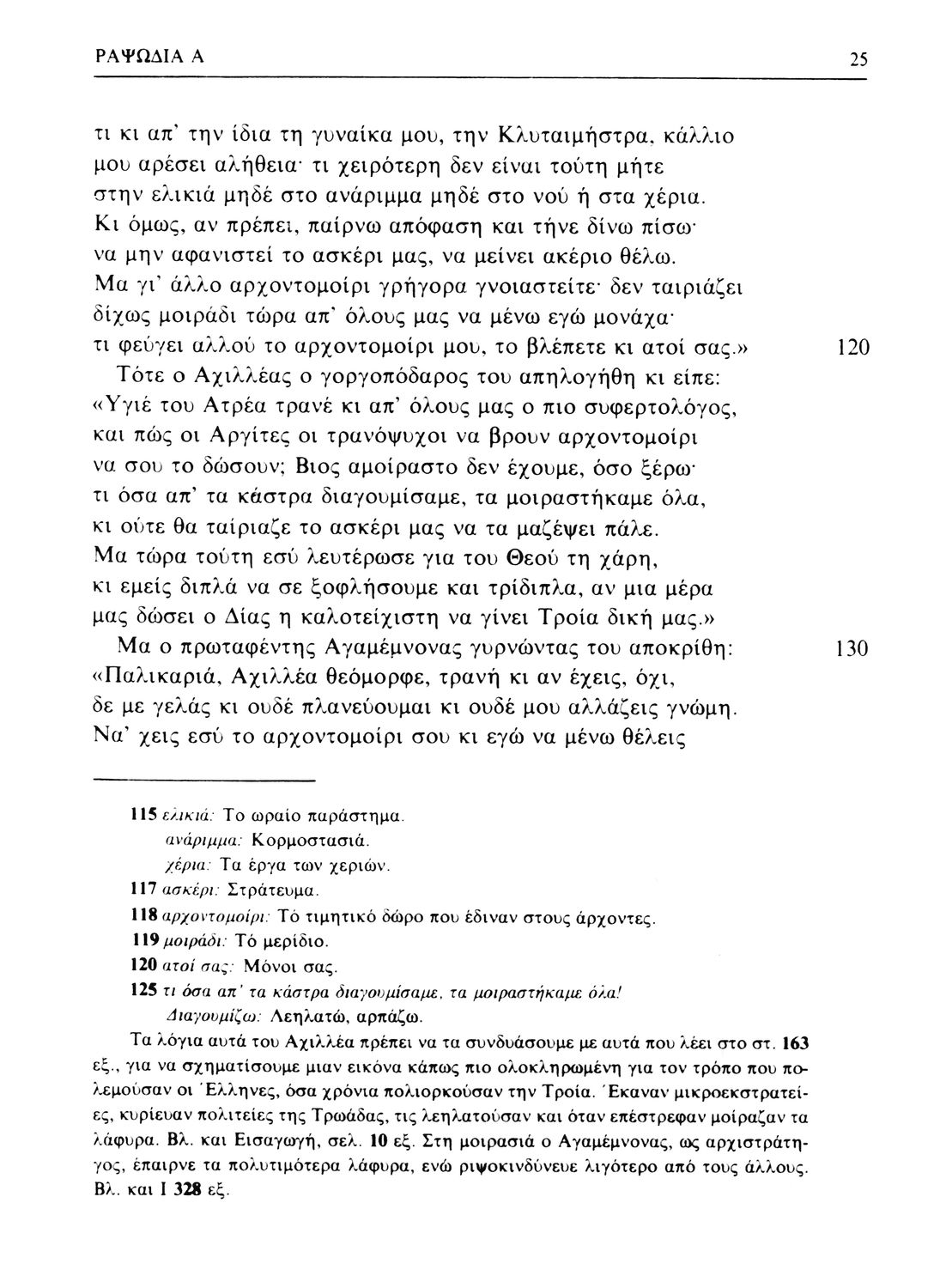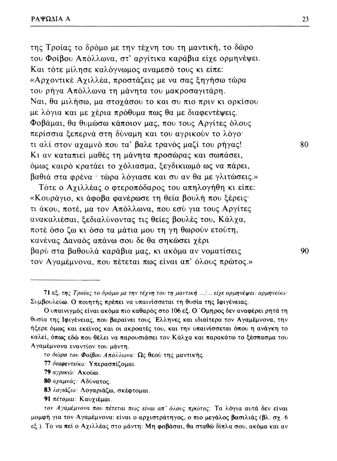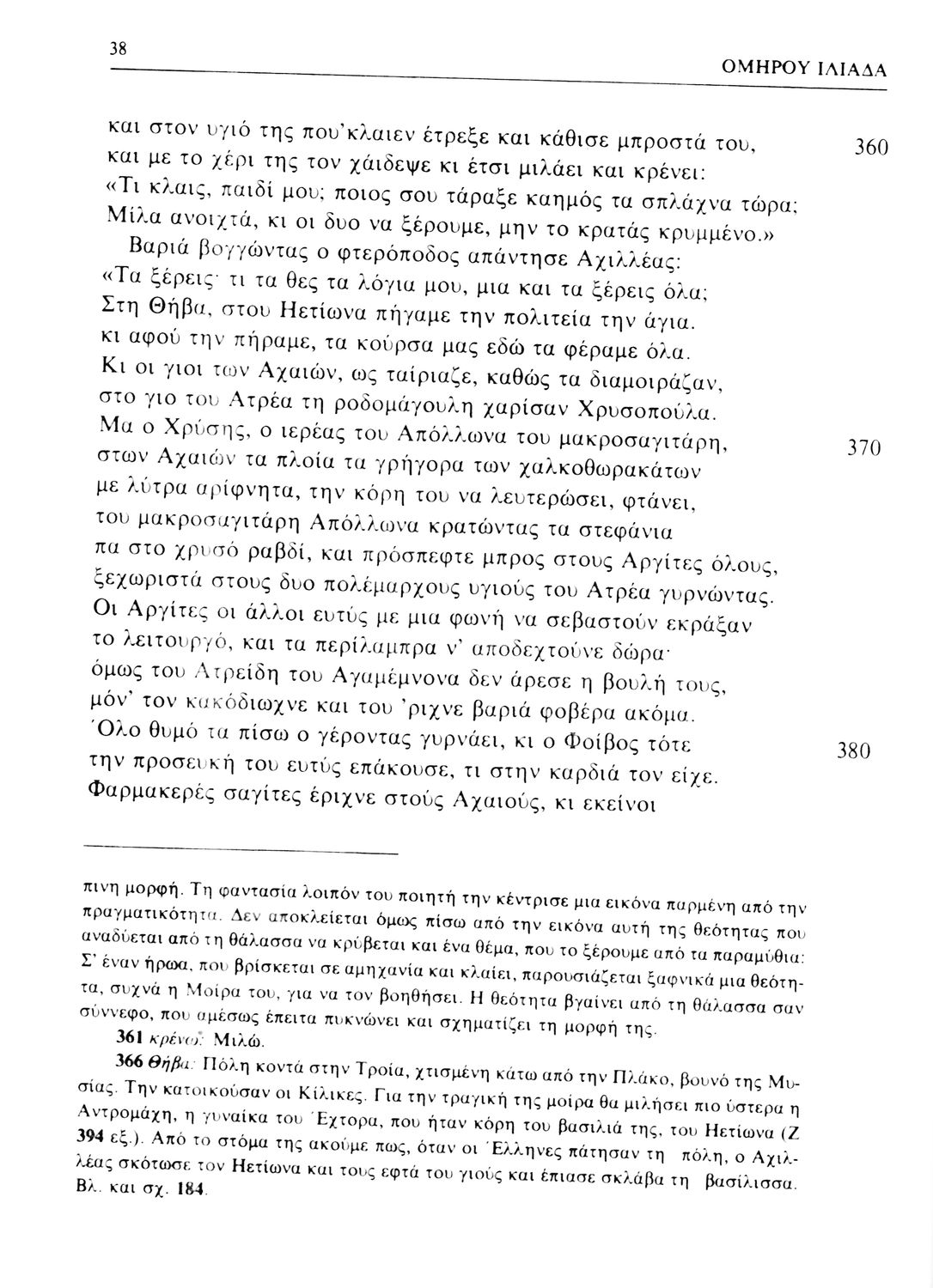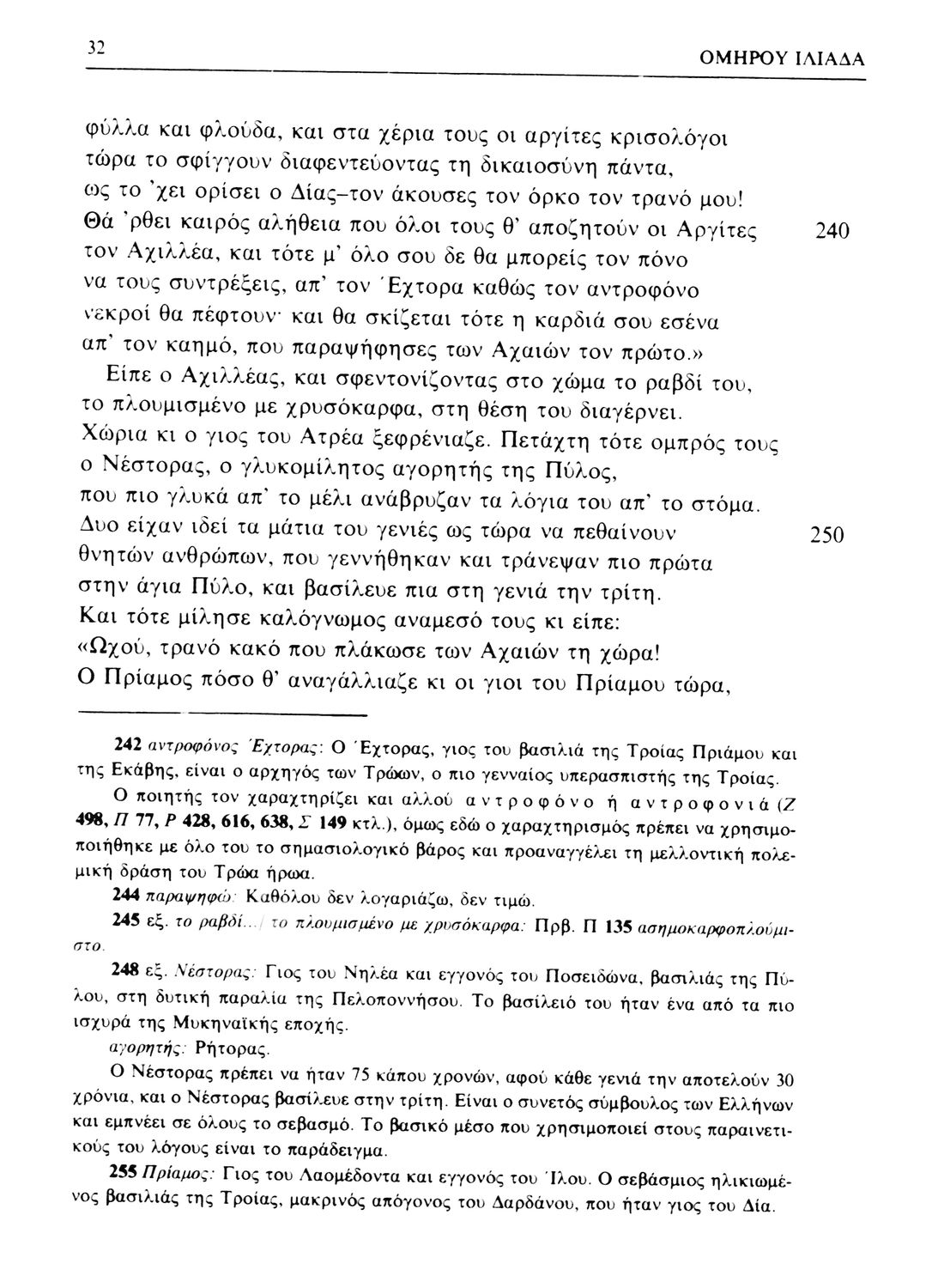 Σχολικό εγχειρίδιο Αρχαίων Ελληνικών για τη Β' Γυμνασίου που περιλαμβάνει την Ιλιάδα Ομήρου. Το βιβλίο αποτελεί το Α΄ τεύχος από δύο. Η εισαγωγή και τα σχόλια έγιναν από την Ελένη Ι. Κακριδή.