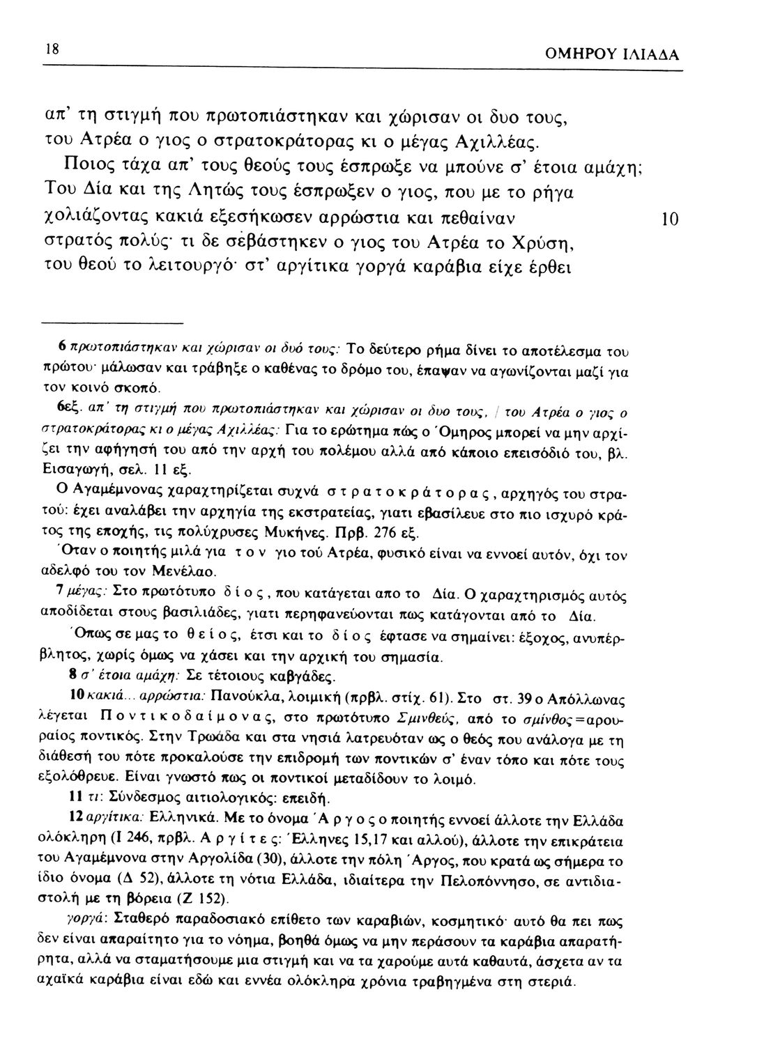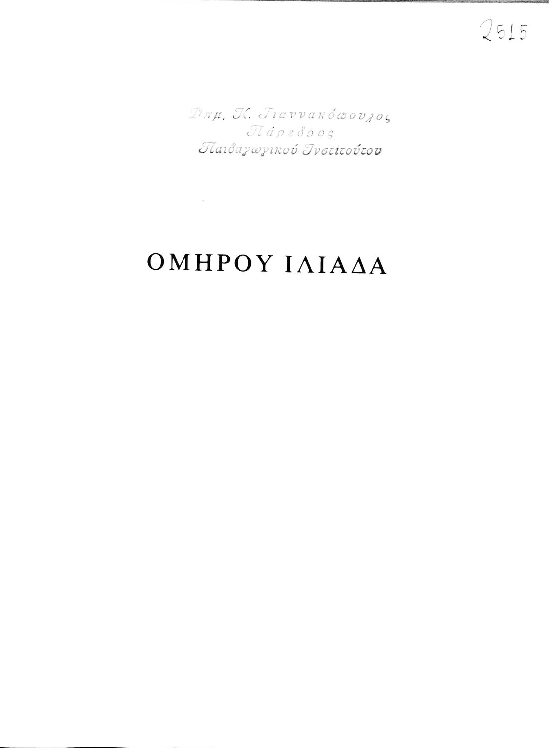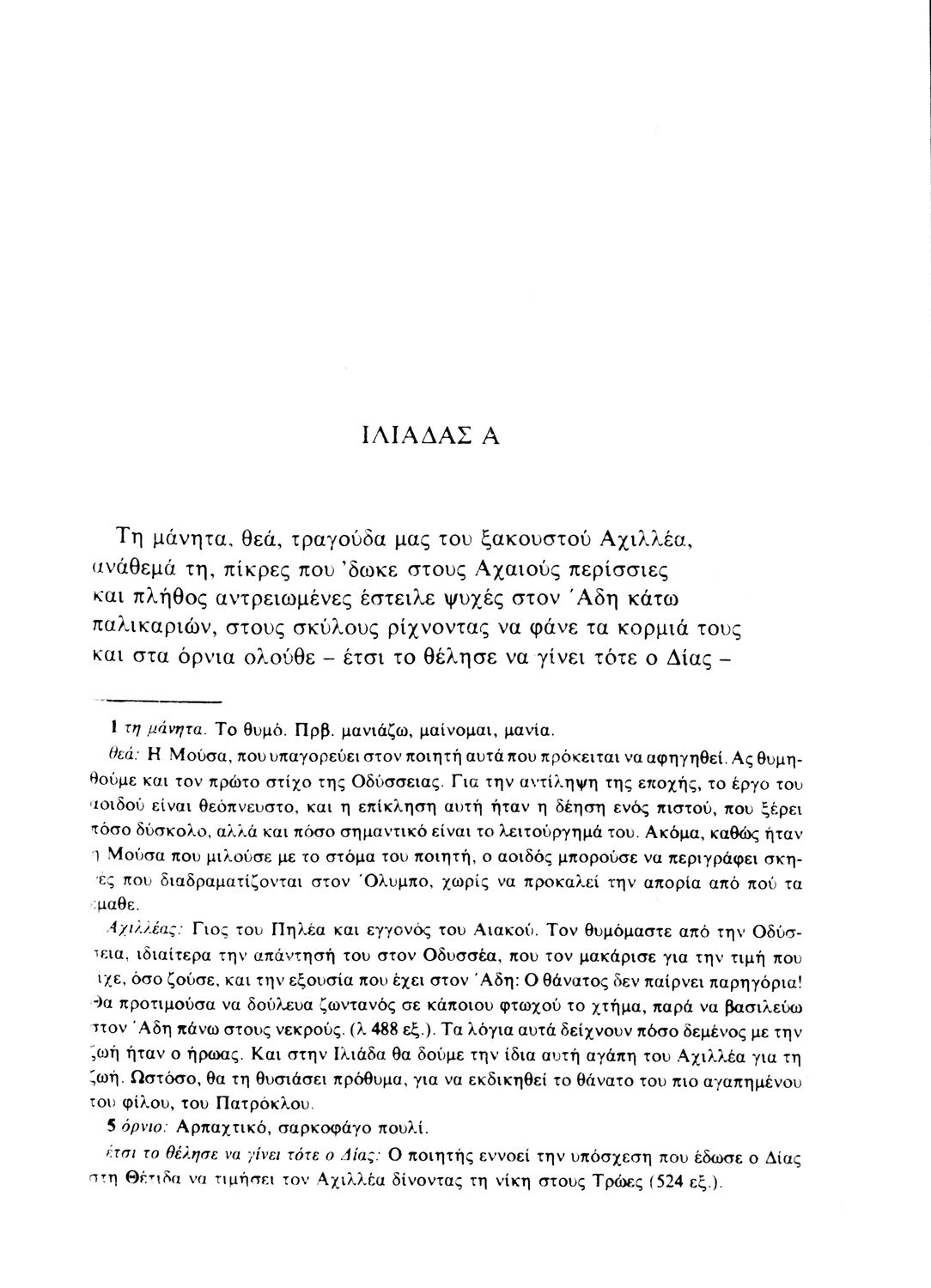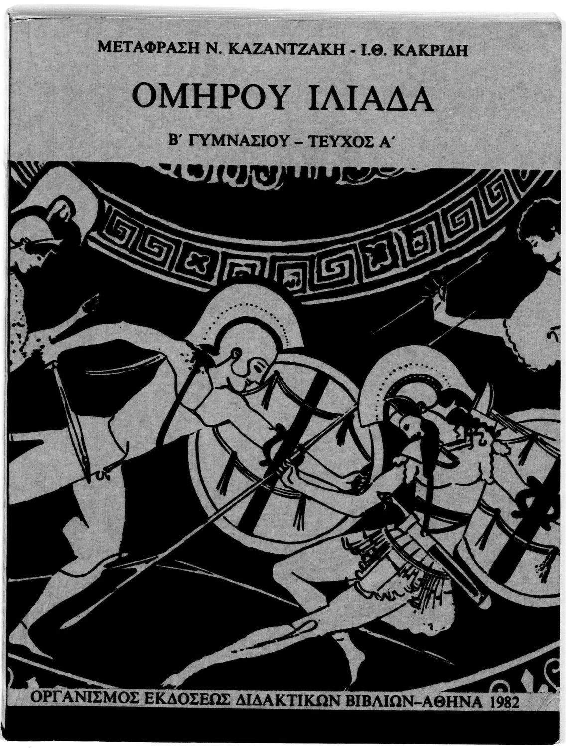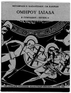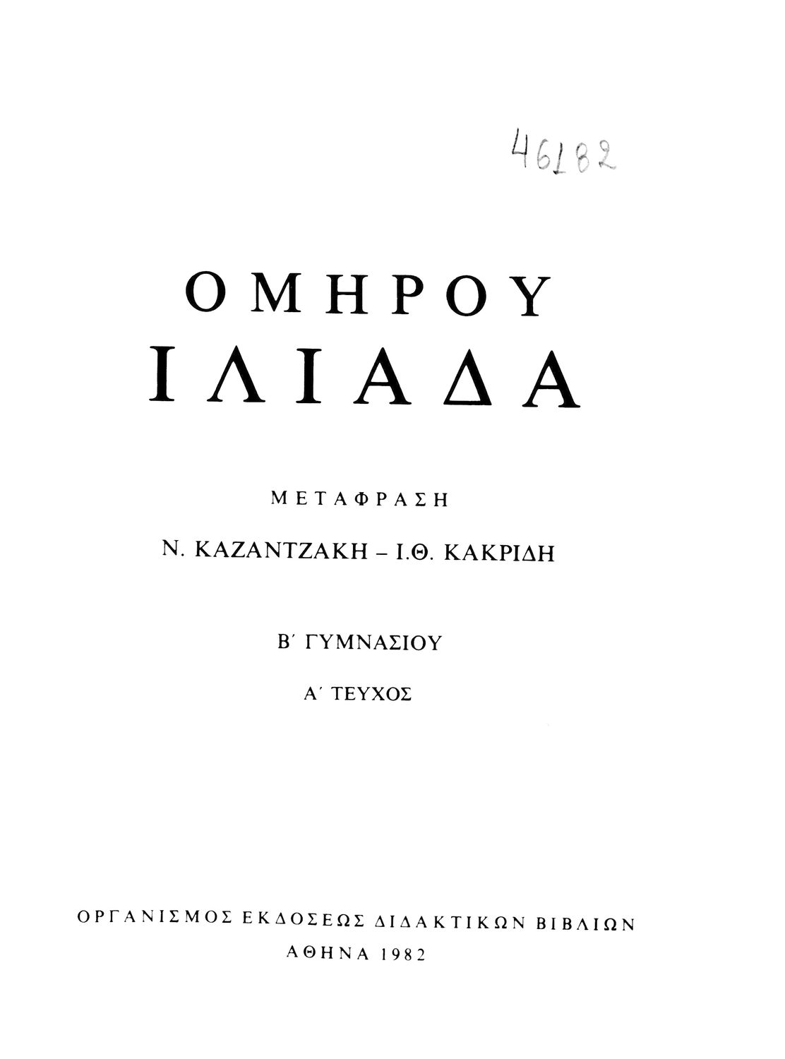 Σχολικό εγχειρίδιο Αρχαίων Ελληνικών για τη Β' Γυμνασίου που περιλαμβάνει την Ιλιάδα Ομήρου. Το βιβλίο αποτελεί το Α΄ τεύχος από δύο. Η εισαγωγή και τα σχόλια έγιναν από την Ελένη Ι. Κακριδή.