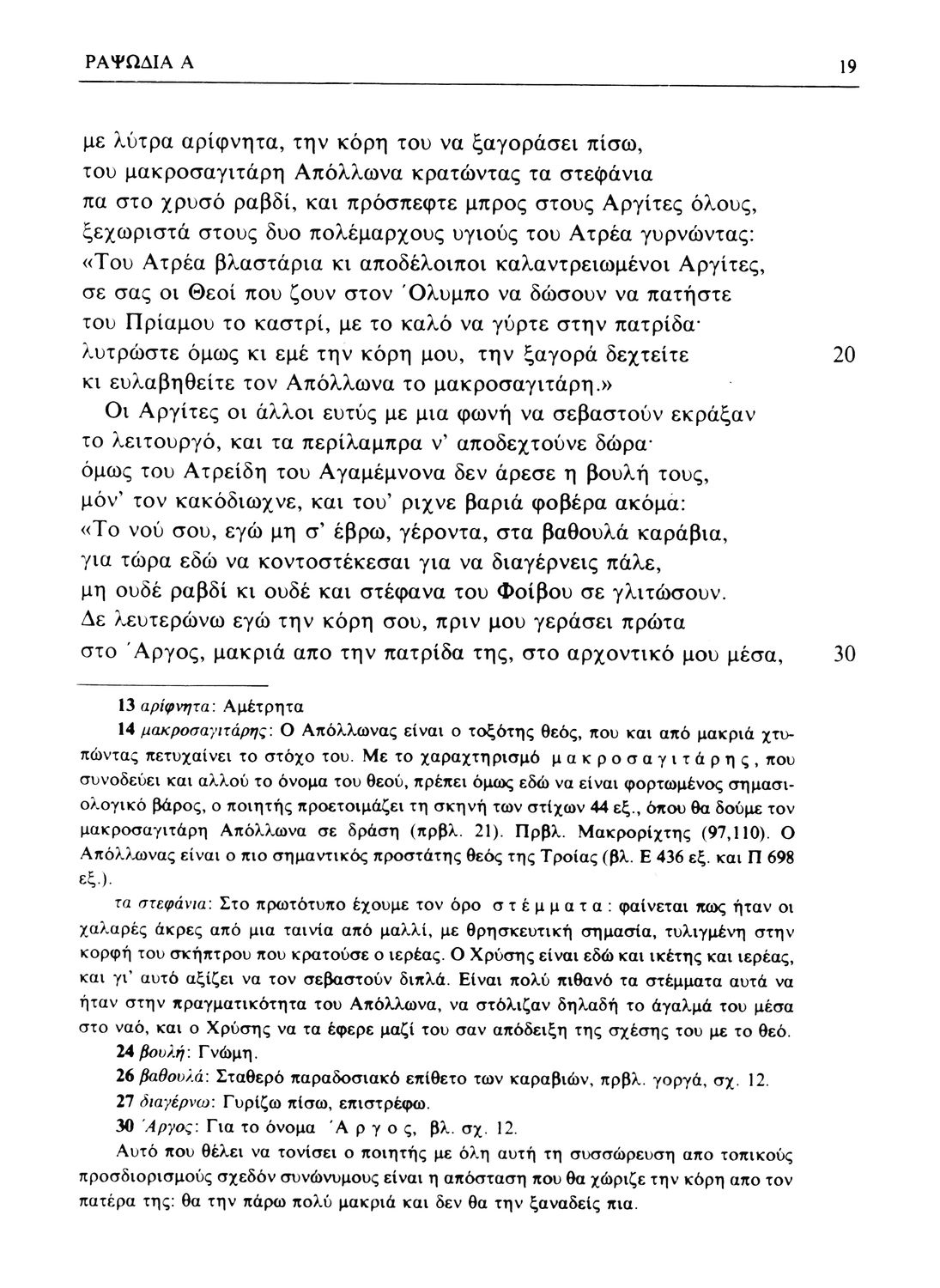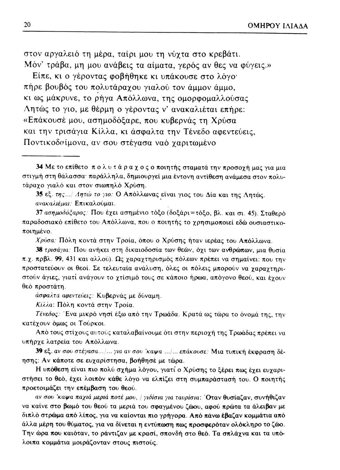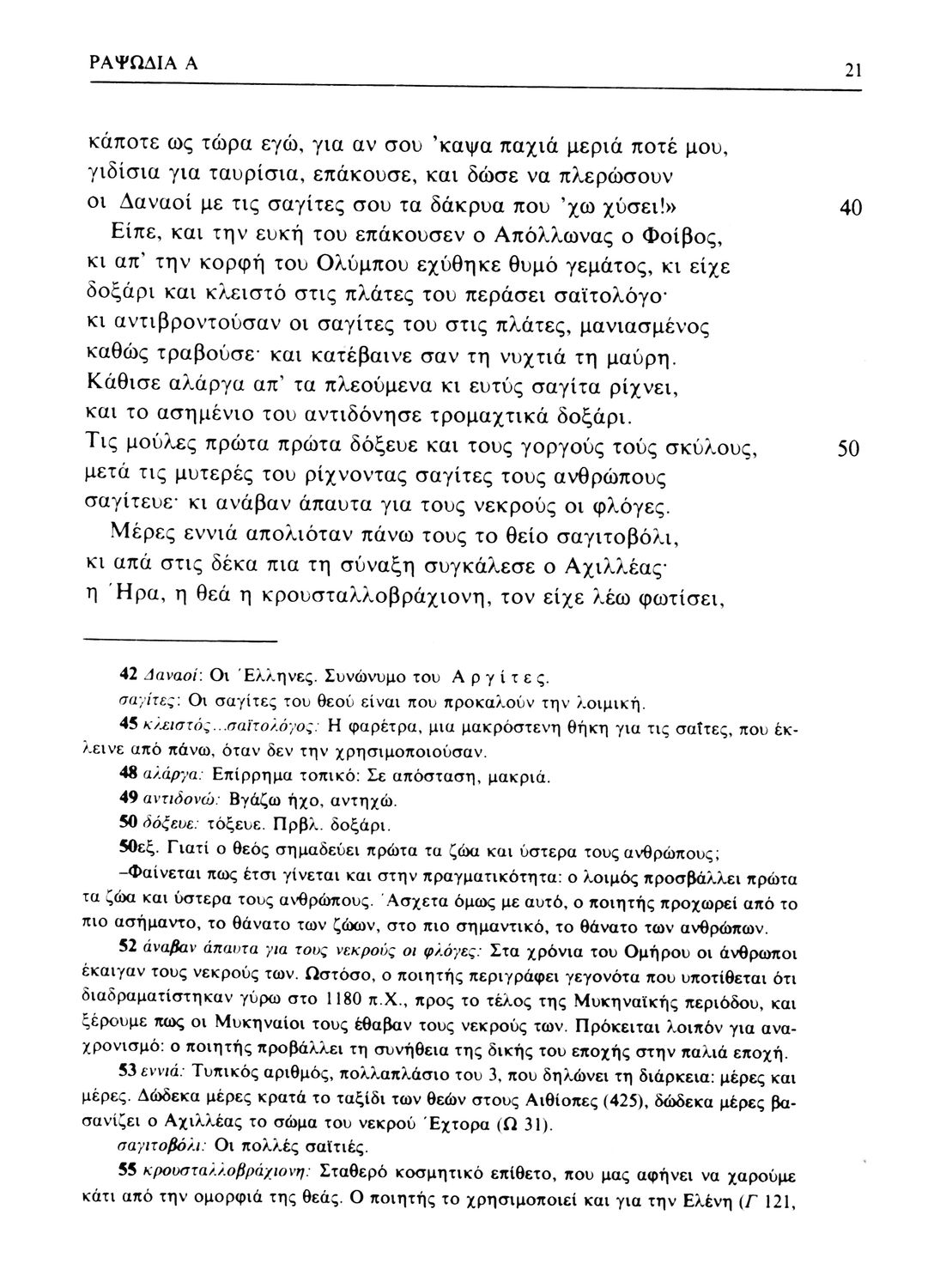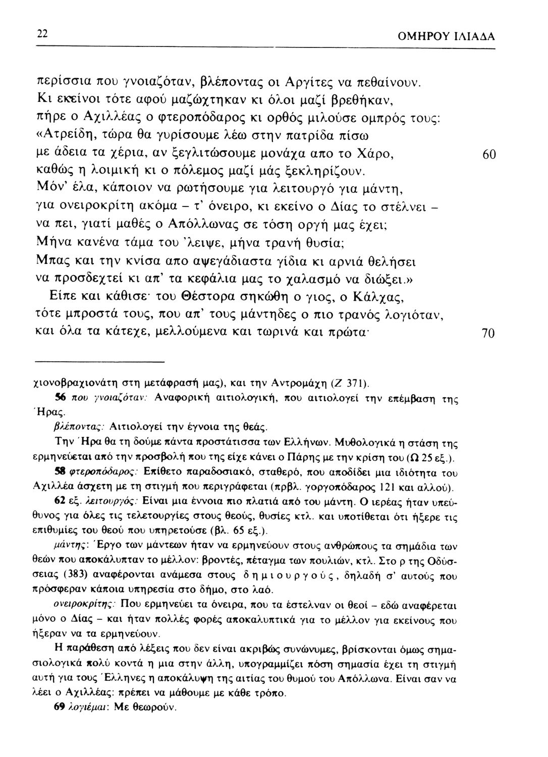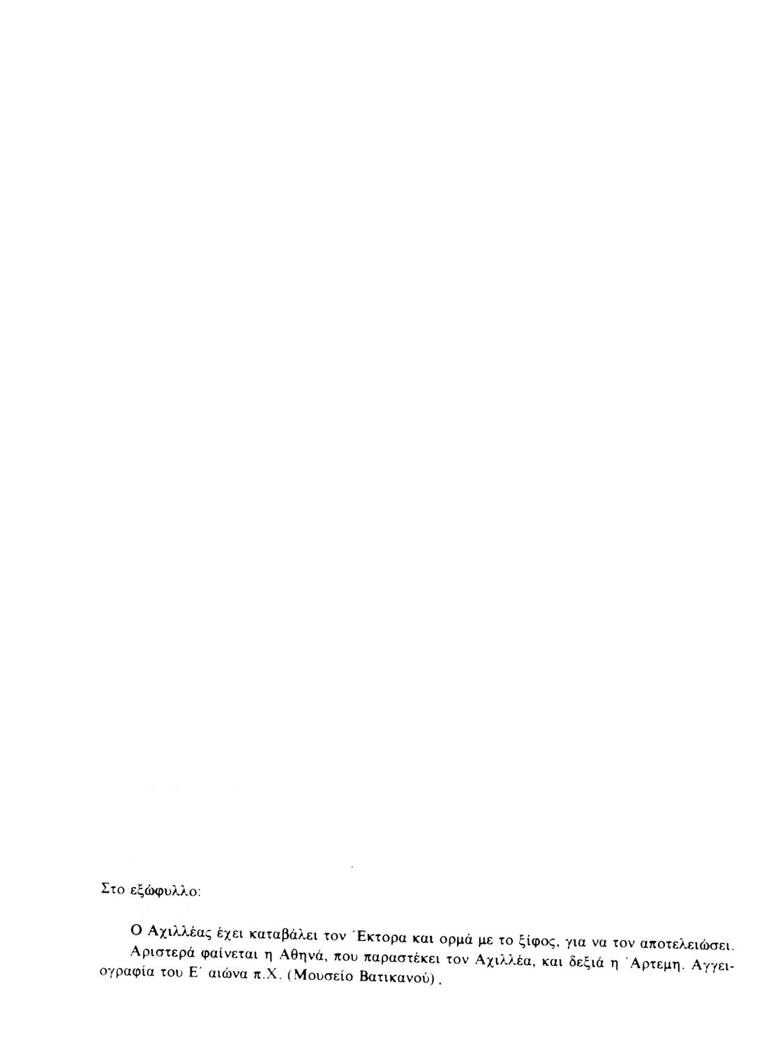 Σχολικό εγχειρίδιο Αρχαίων Ελληνικών για τη Β' Γυμνασίου που περιλαμβάνει την Ιλιάδα Ομήρου. Το βιβλίο αποτελεί το Α΄ τεύχος από δύο. Η εισαγωγή και τα σχόλια έγιναν από την Ελένη Ι. Κακριδή.