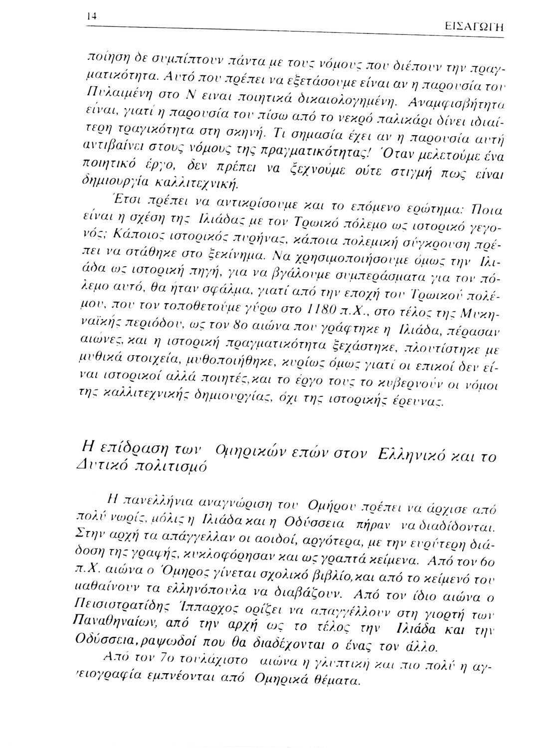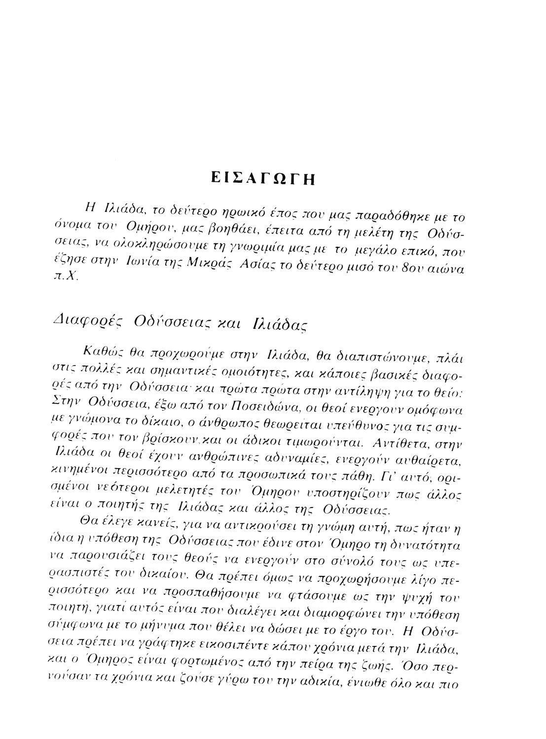 Βαθμίδα εκπαίδευσης: Δευτεροβάθμια Τάξη: Β' Γυμνασίου Μάθημα: Αρχαία Ελληνικά Γλώσσα: Δημοτική Παρουσίαση περιεχομένου: Σχολικό εγχειρίδιο Αρχαίων Ελληνικών για τη Β' Γυμνασίου που περιλαμβάνει την Ιλιάδα Ομήρου. Το βιβλίο αποτελεί το Α΄ τεύχος από δύο. Η εισαγωγή και τα σχόλια έγιναν από την Ελένη Ι. Κακριδή. |