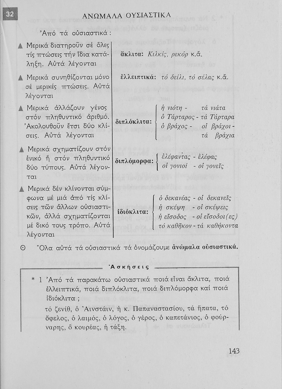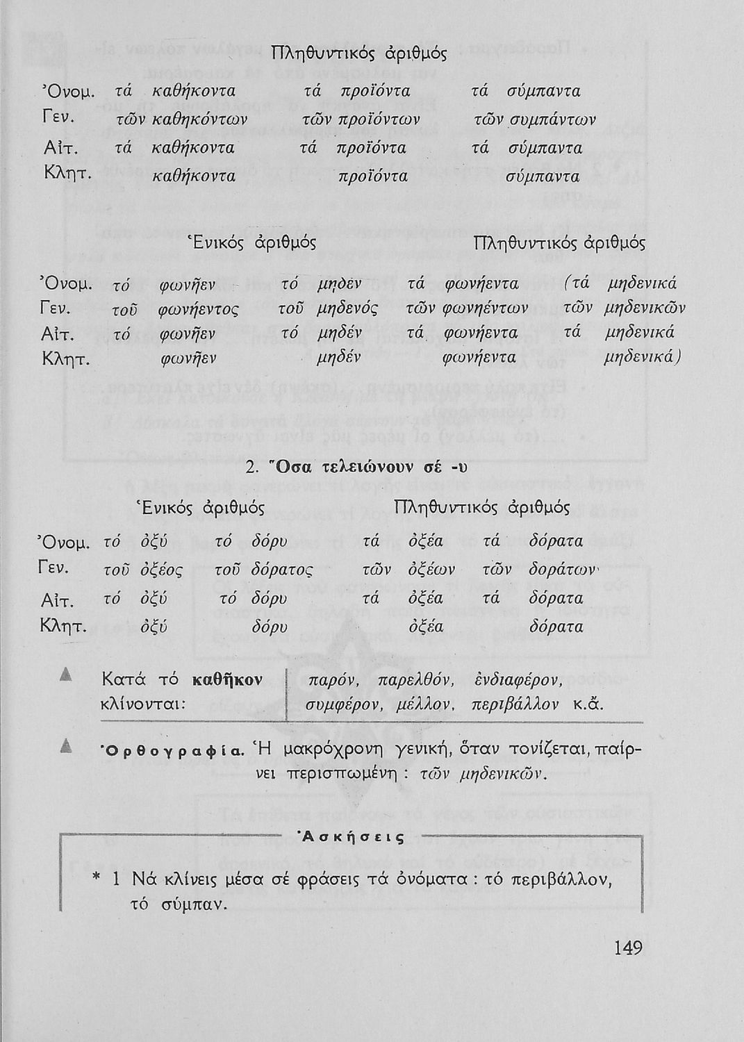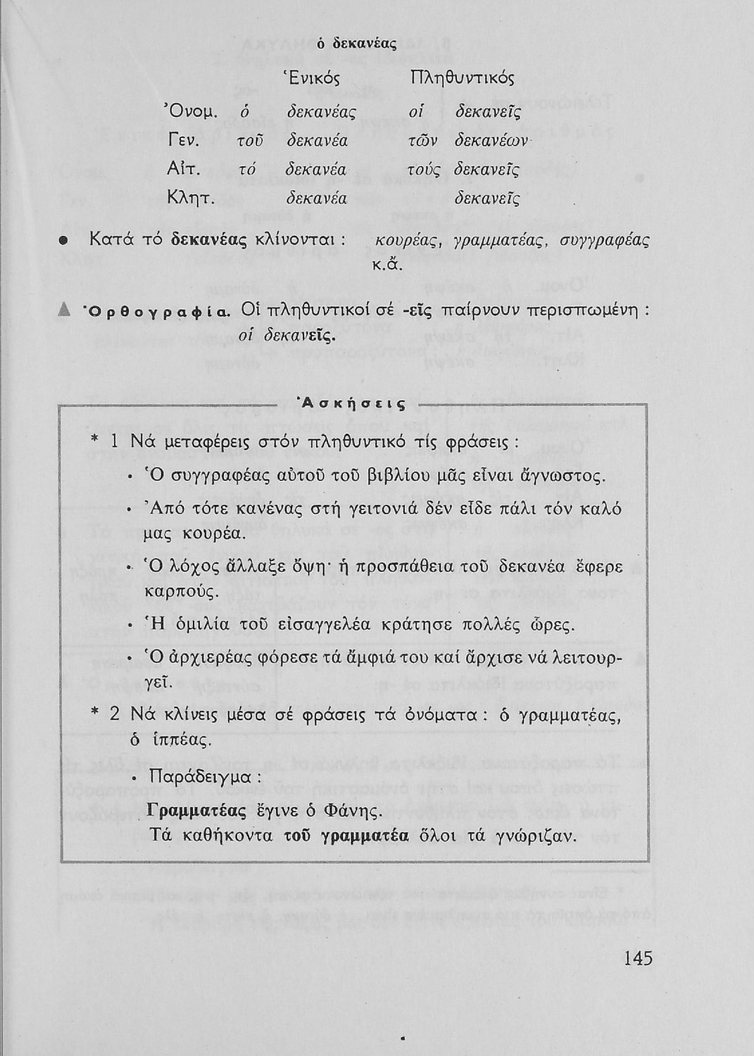 Σχολικό εγχειρίδιο της Ε΄ και ΣΤ΄ τάξης Δημοτικού για την γραμματική της ελληνικής γλώσσας με κανόνες και παραδείγματα. Στο επίμετρο υπάρχουν πίνακες με ανώμαλους σχηματισμούς ρημάτων.