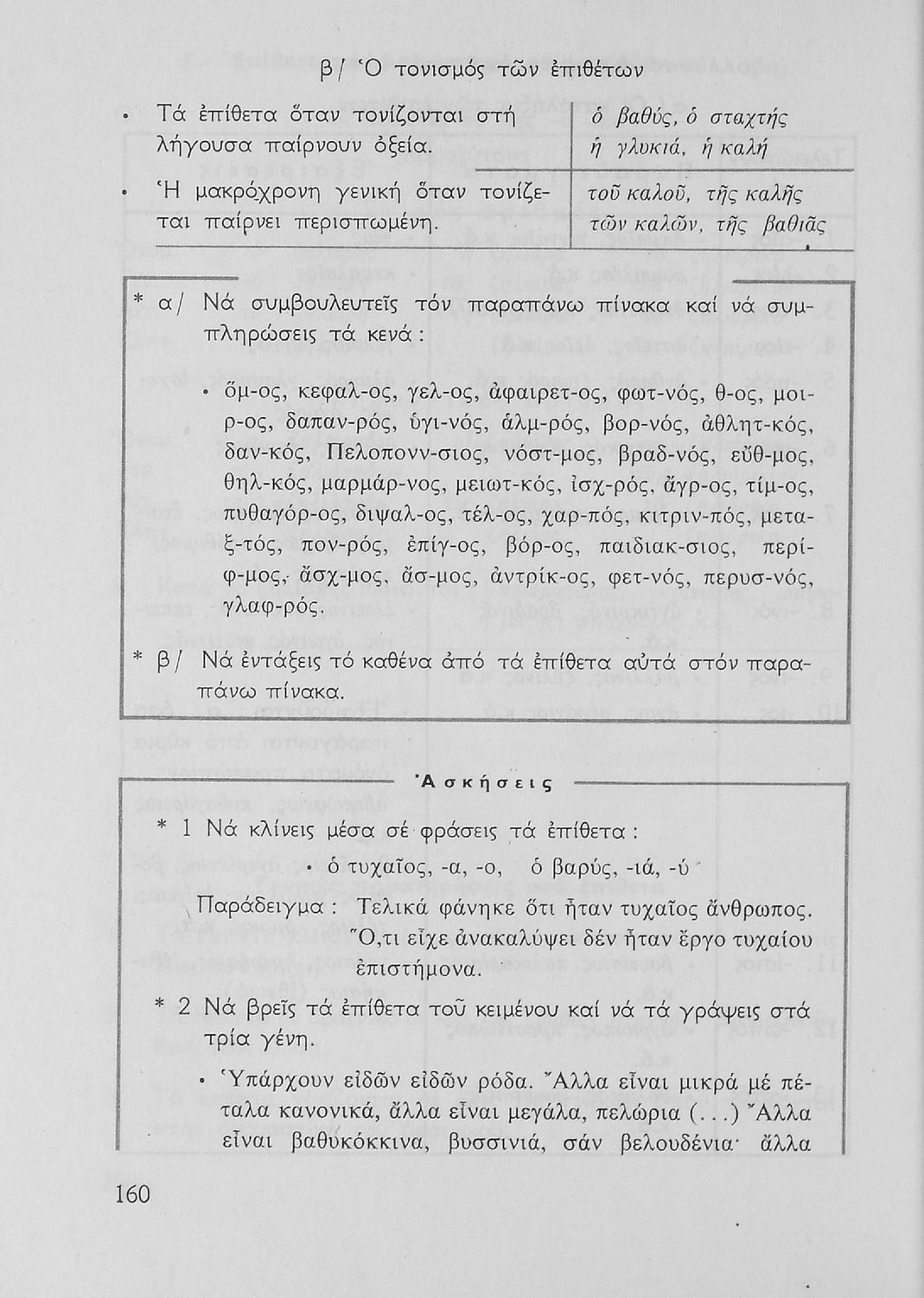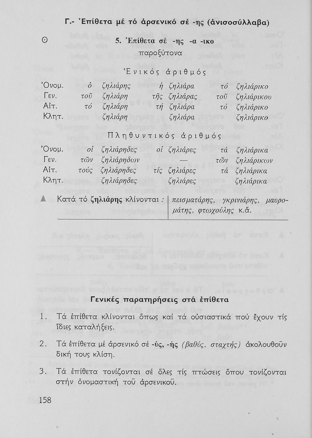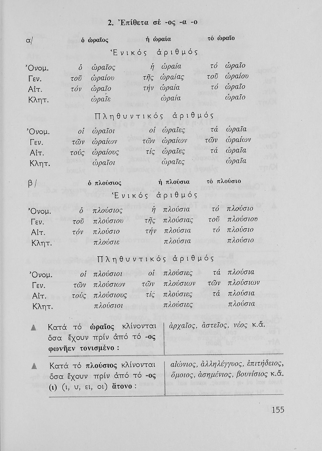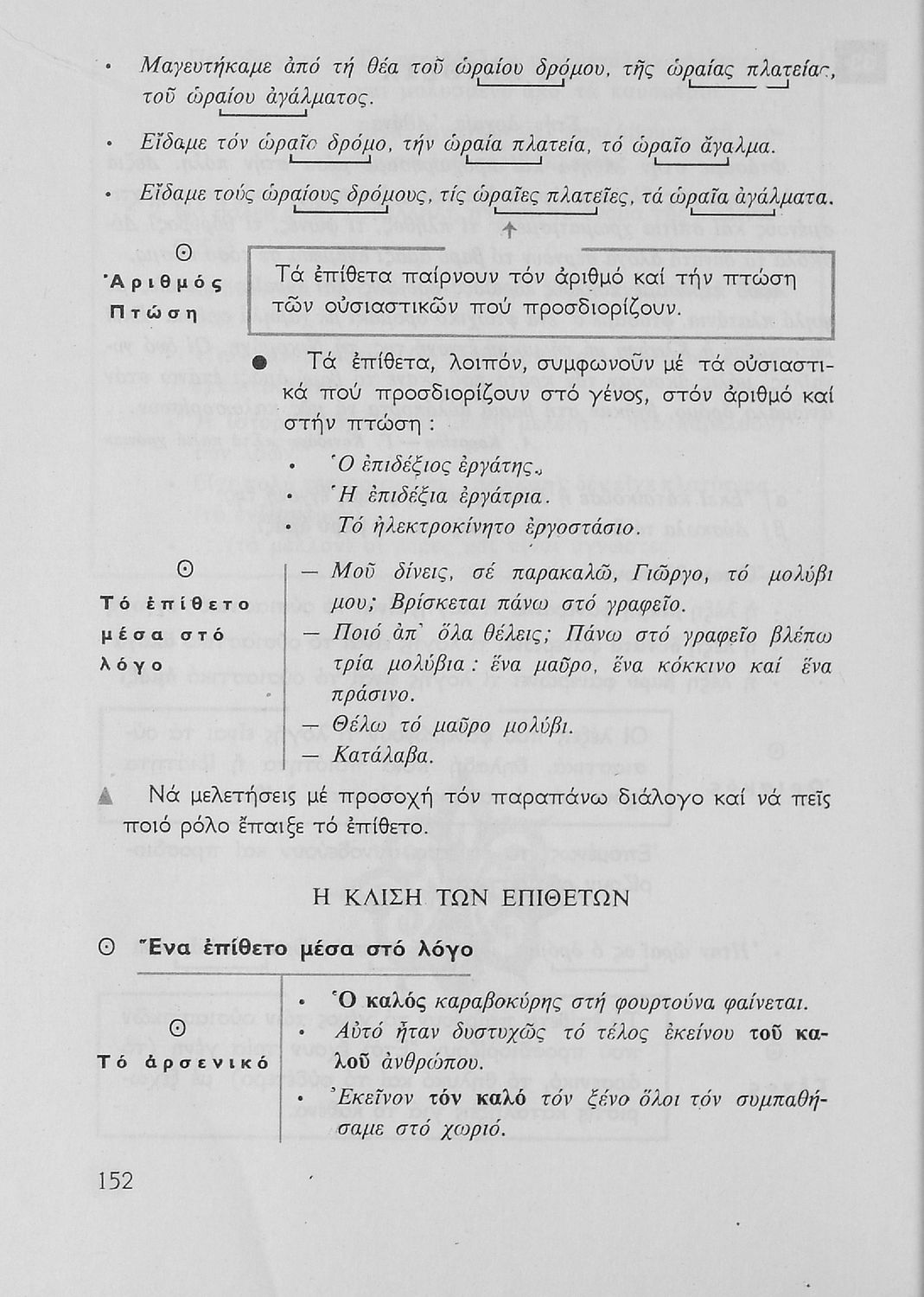 Σχολικό εγχειρίδιο για την Ε΄ και ΣΤ΄ τάξη Δημοτικού με γραμματικούς κανόνες και παραδείγματα για τα κλιτά και άκλιτα μέρη του λόγου.