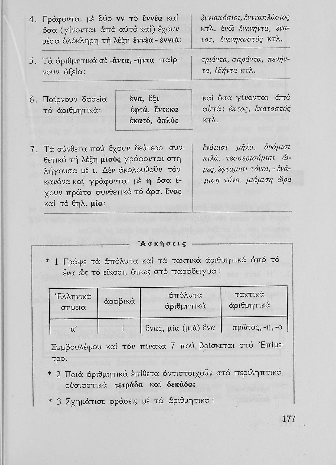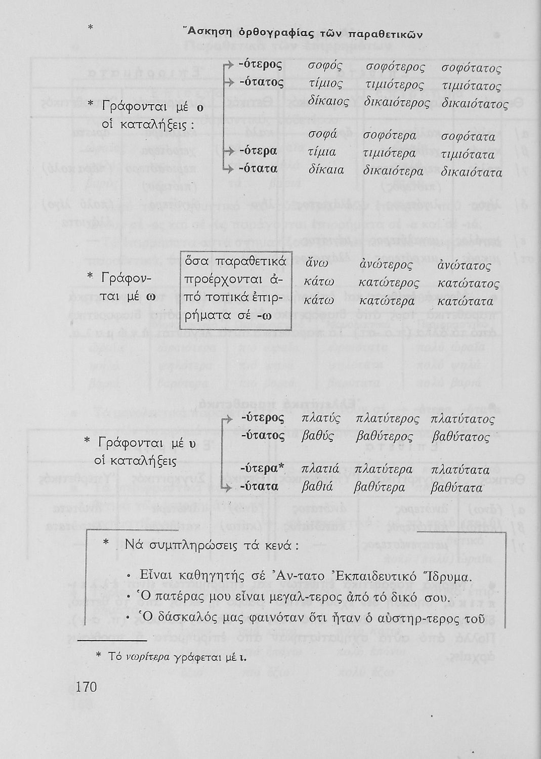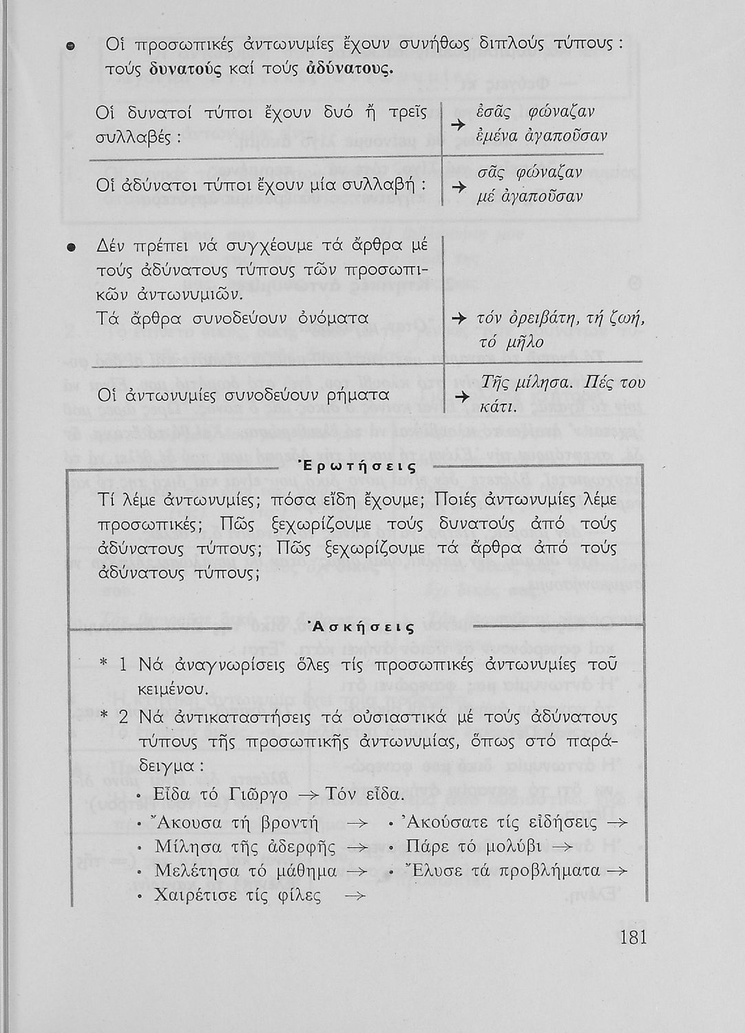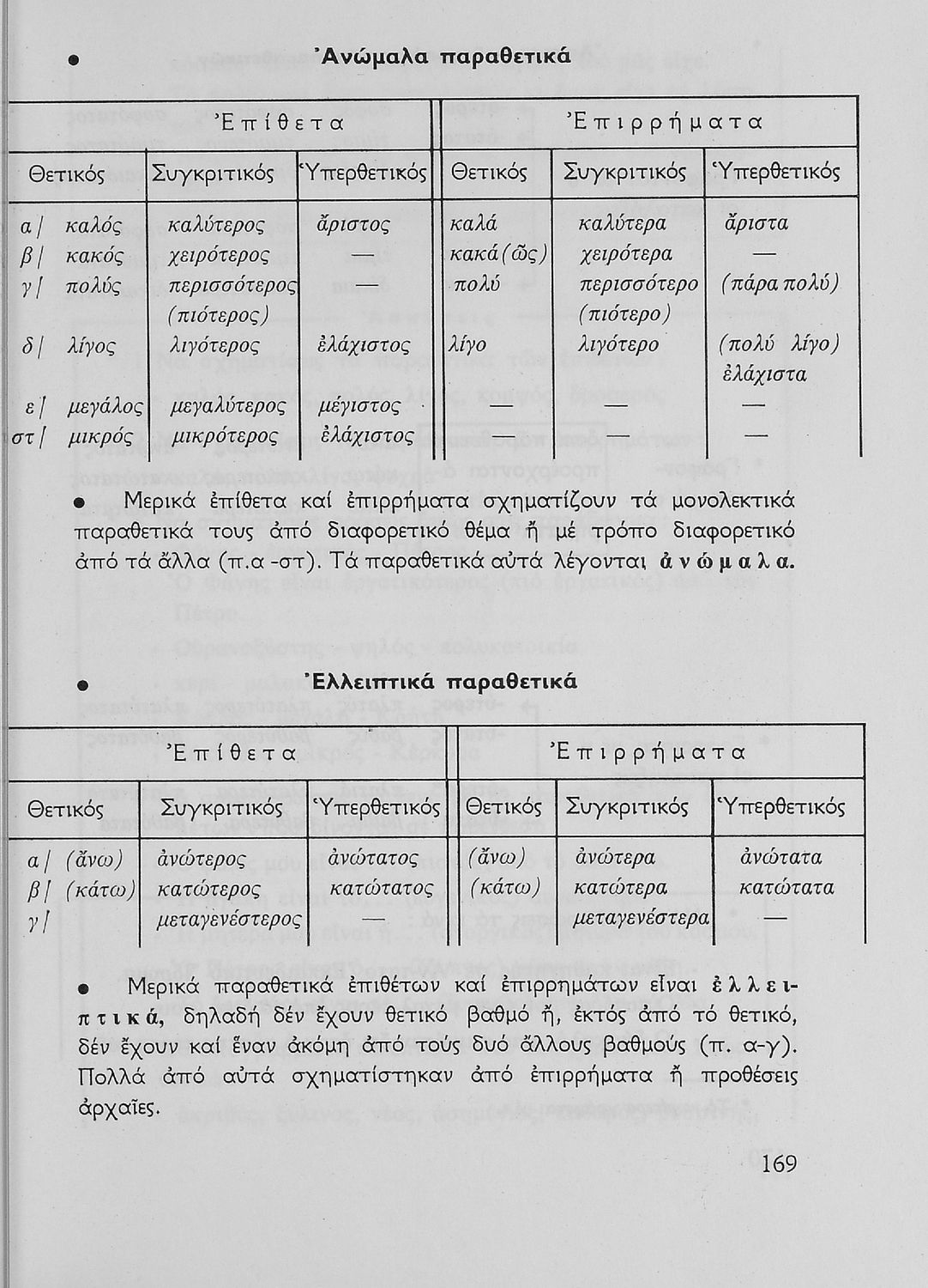 Σχολικό εγχειρίδιο της Ε΄ και ΣΤ΄ τάξης Δημοτικού για την γραμματική της ελληνικής γλώσσας με κανόνες και παραδείγματα. Στο επίμετρο υπάρχουν πίνακες με ανώμαλους σχηματισμούς ρημάτων.