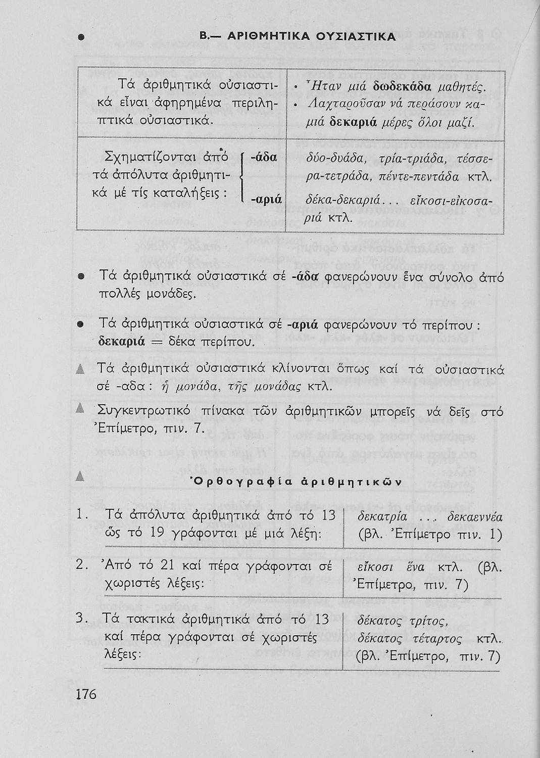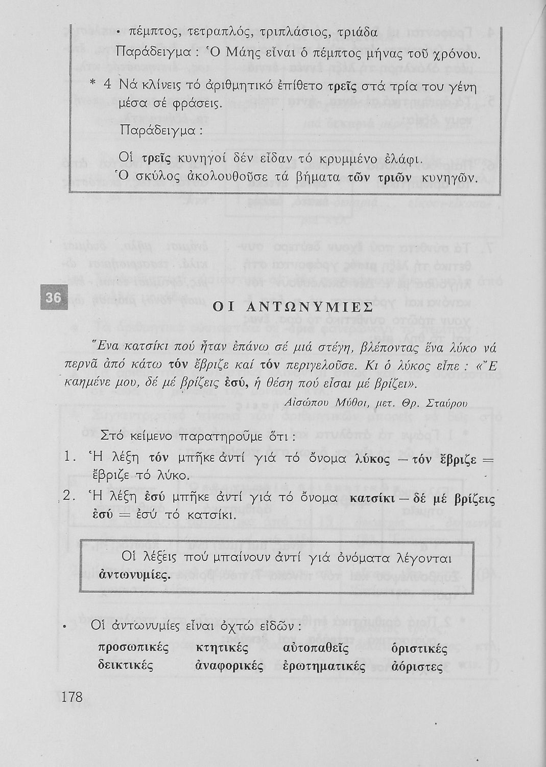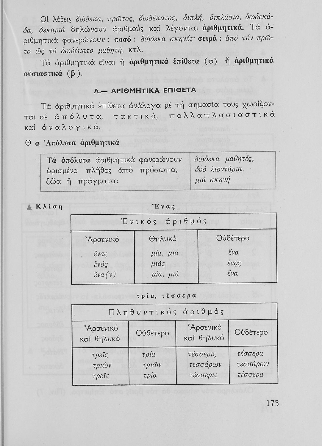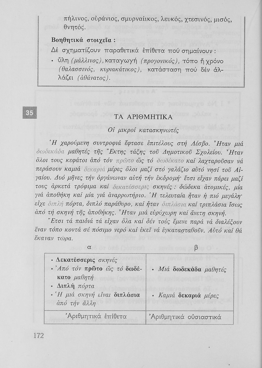 Σχολικό εγχειρίδιο για την Ε΄ και ΣΤ΄ τάξη Δημοτικού με γραμματικούς κανόνες και παραδείγματα για τα κλιτά και άκλιτα μέρη του λόγου.