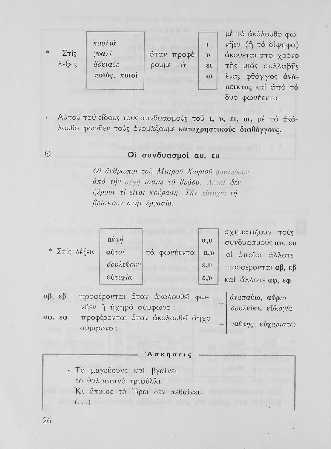 Σχολικό εγχειρίδιο Γλώσσας για τις Ε΄ και ΣΤ΄ Δημοτικού που περιλαμβάνει με κείμενα και ασκήσεις για τη διδασκαλία των γραμματικών φαινομένων.