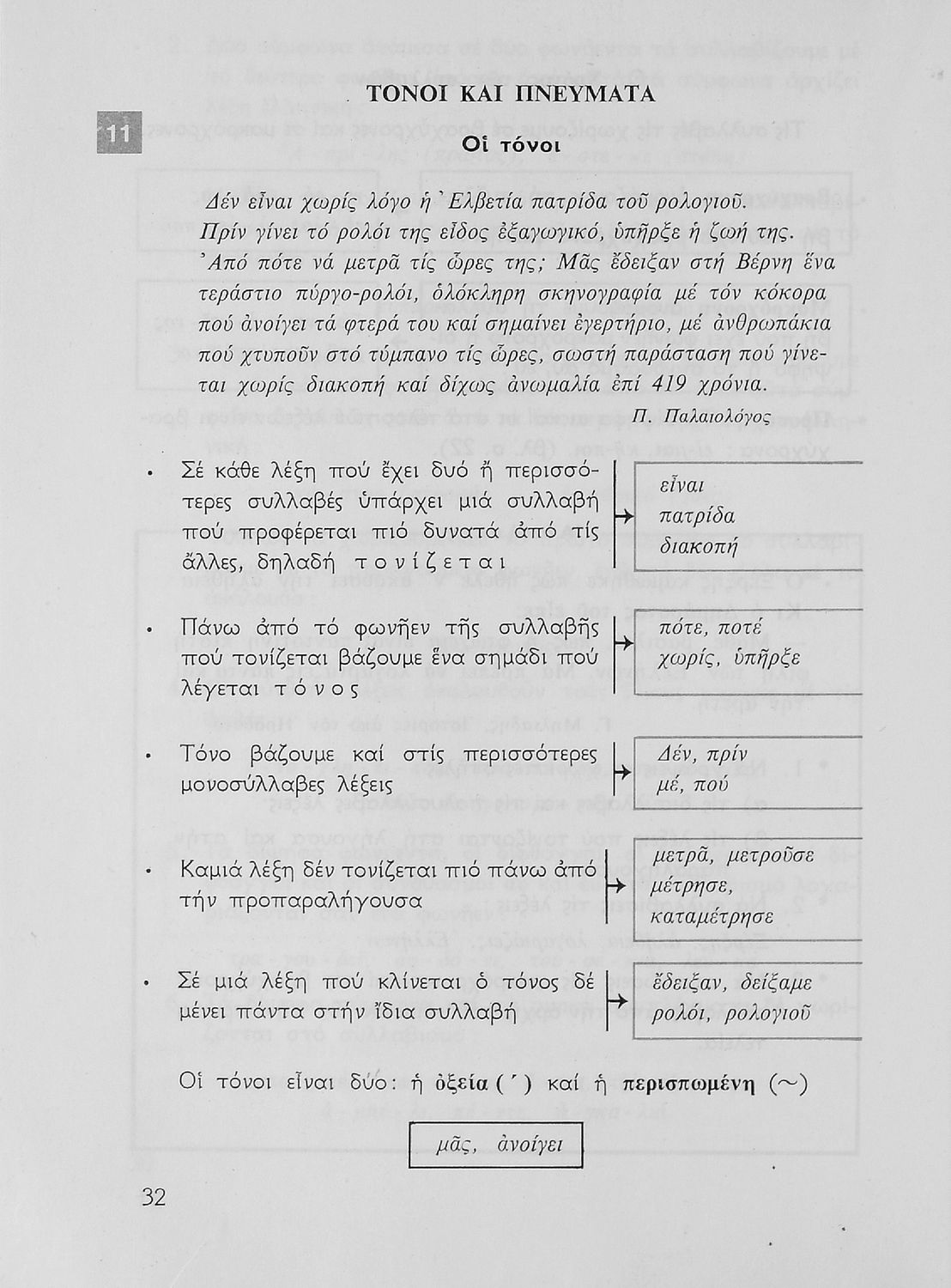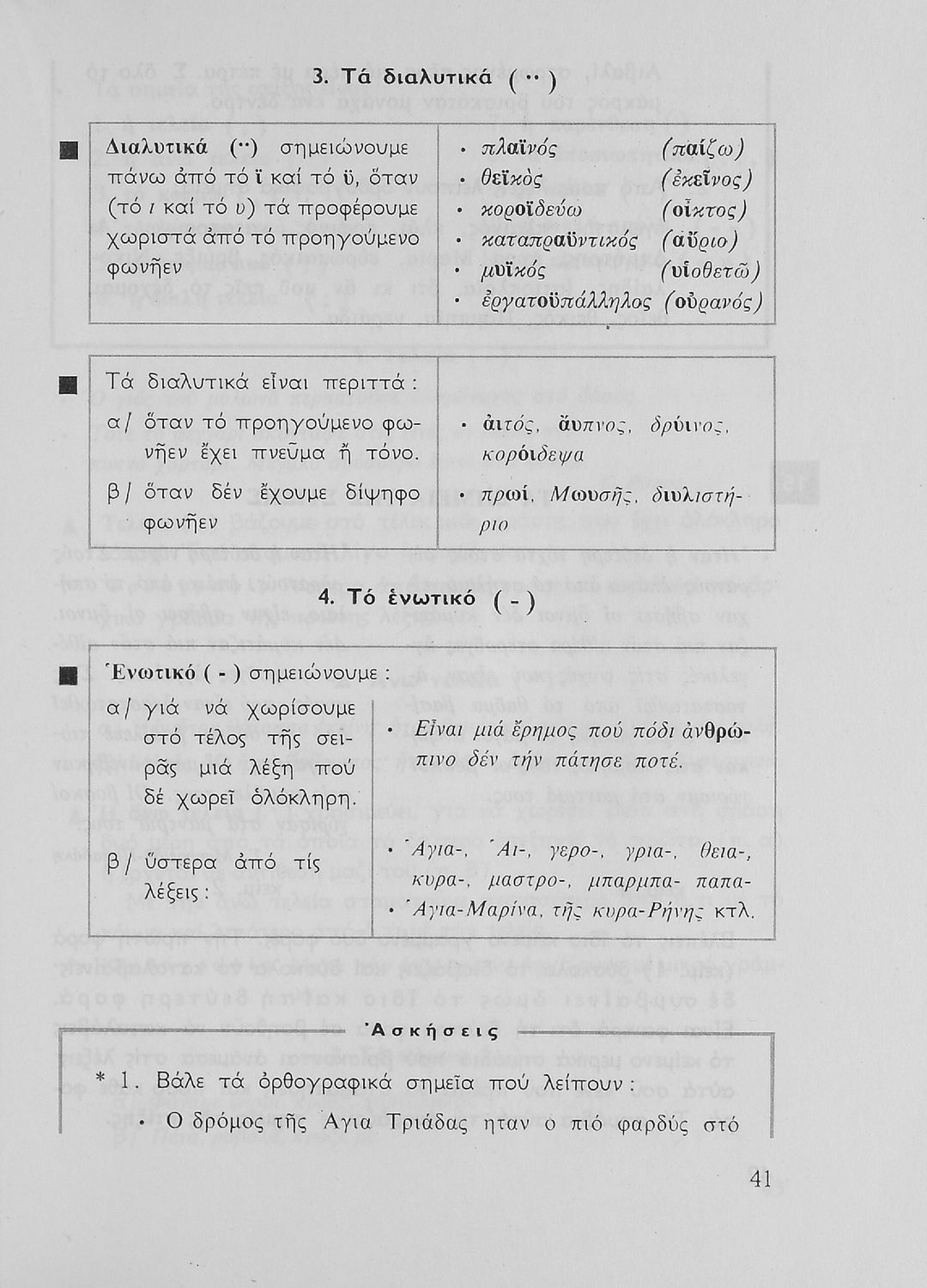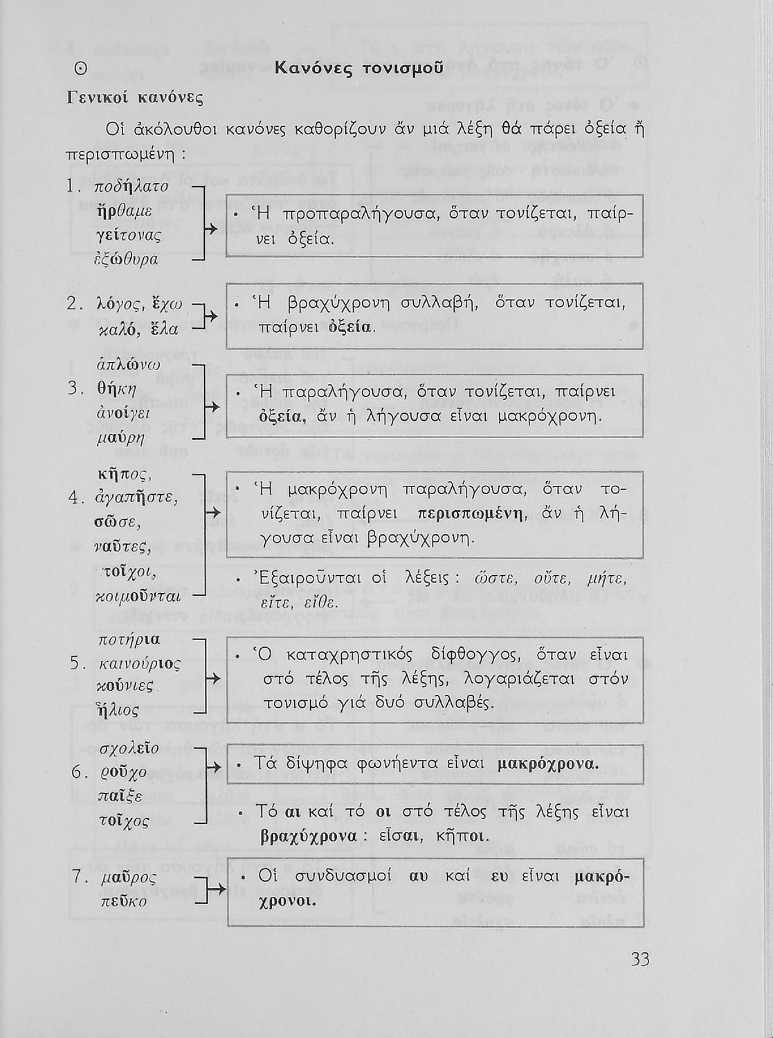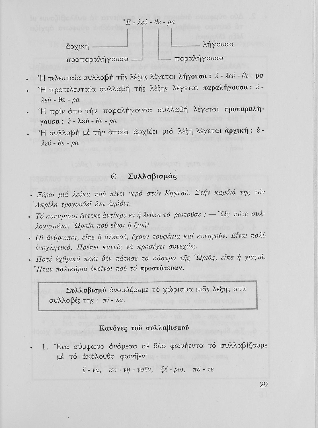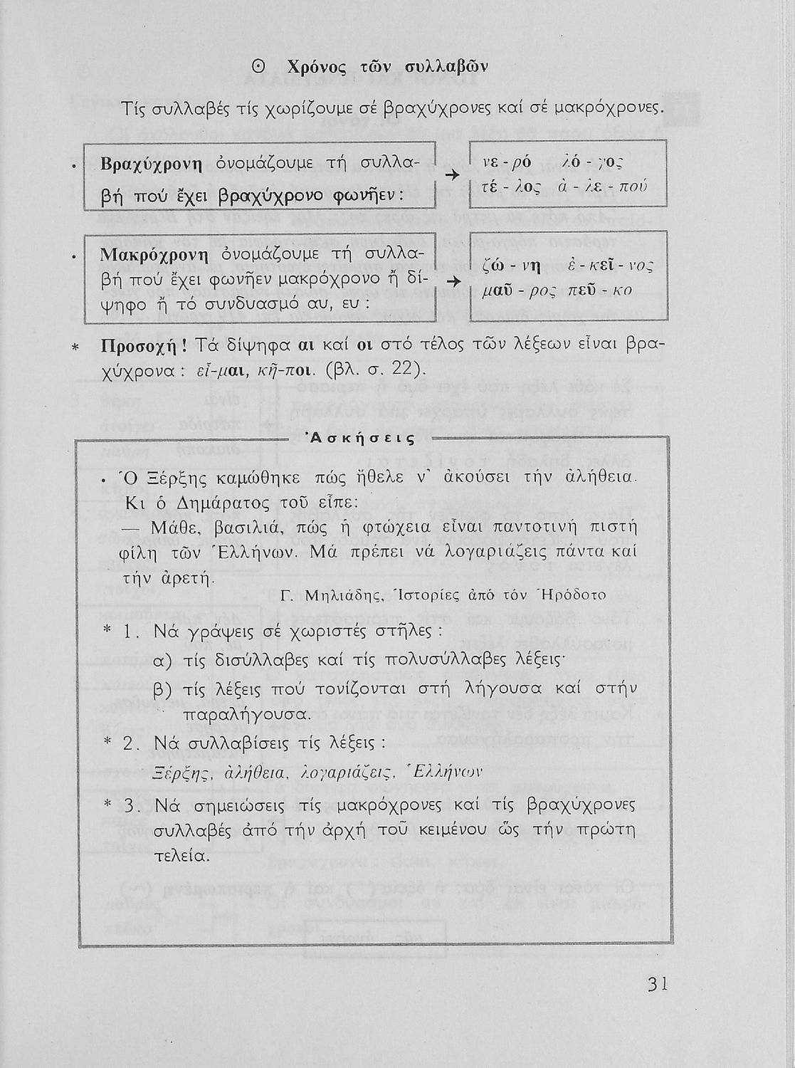 Σχολικό εγχειρίδιο της Ε΄ και ΣΤ΄ τάξης Δημοτικού για την γραμματική της ελληνικής γλώσσας με κανόνες και παραδείγματα. Στο επίμετρο υπάρχουν πίνακες με ανώμαλους σχηματισμούς ρημάτων.