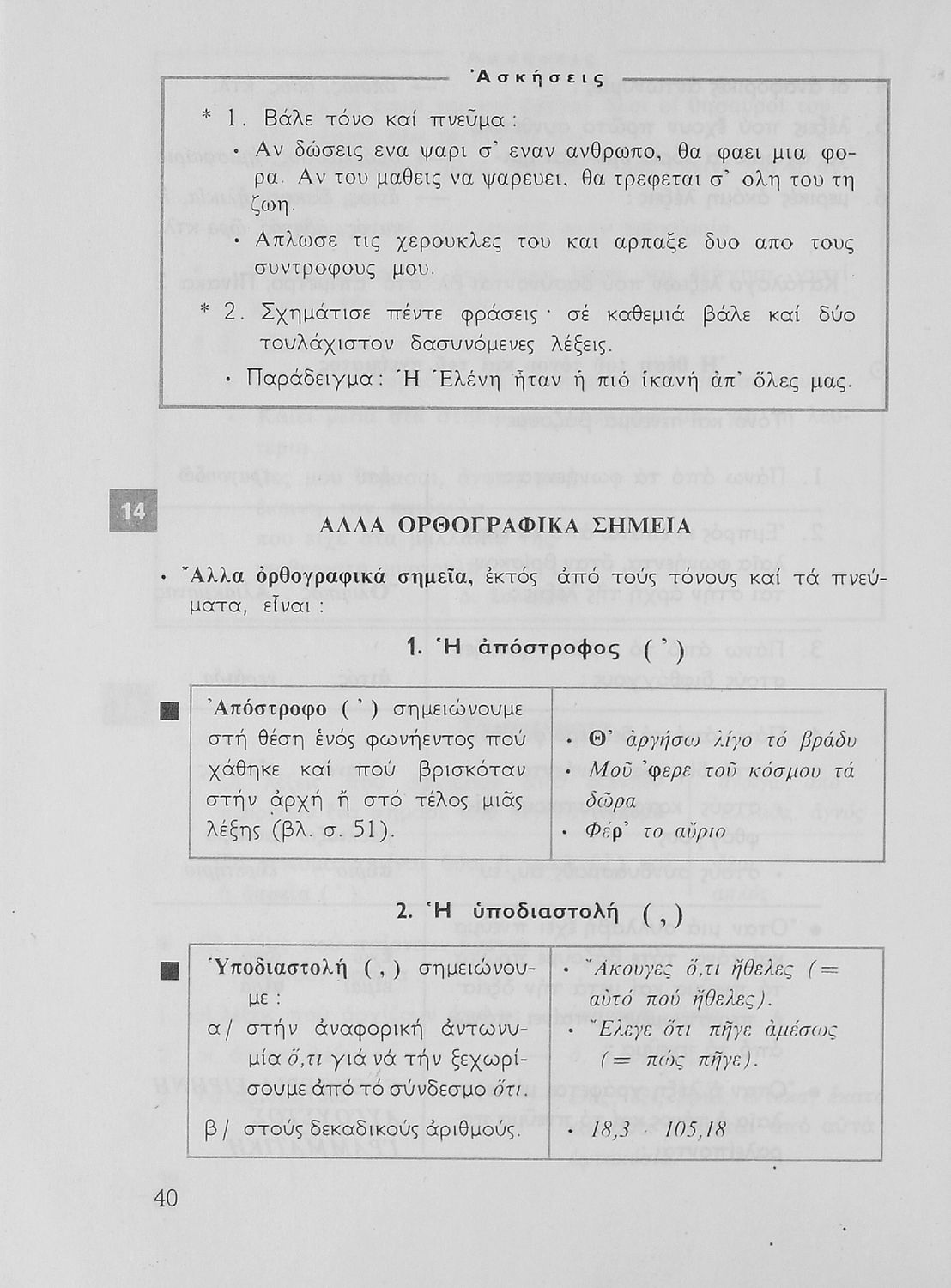 Σχολικό εγχειρίδιο για την Ε΄ και ΣΤ΄ Δημοτικού με κείμενα και ασκήσεις πάνω σε μαθήματα της Γραμματικής για εξάσκηση και εμπέδωση των μαθητών.