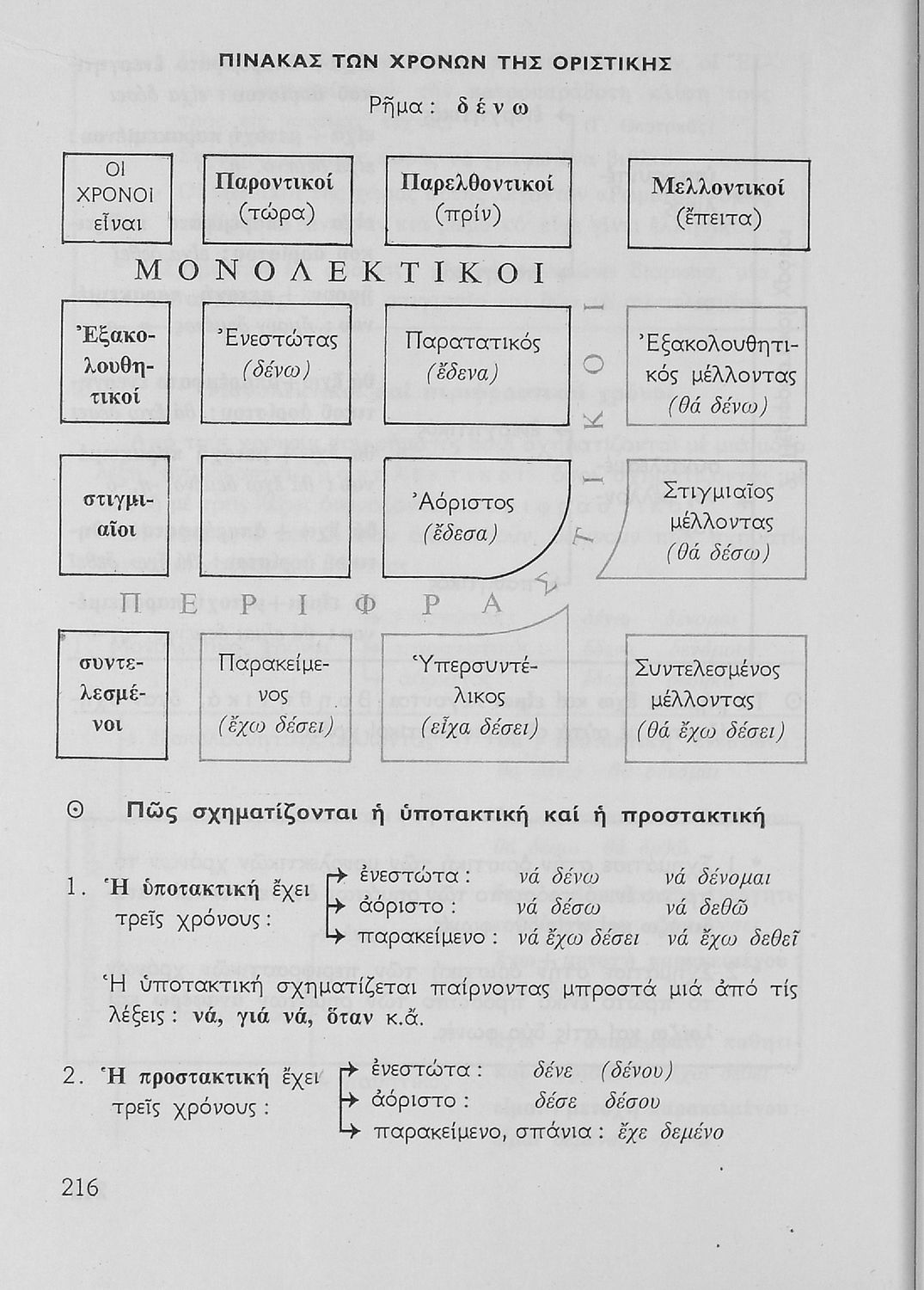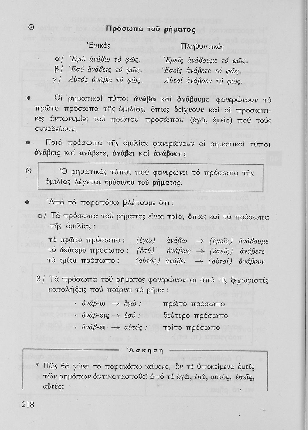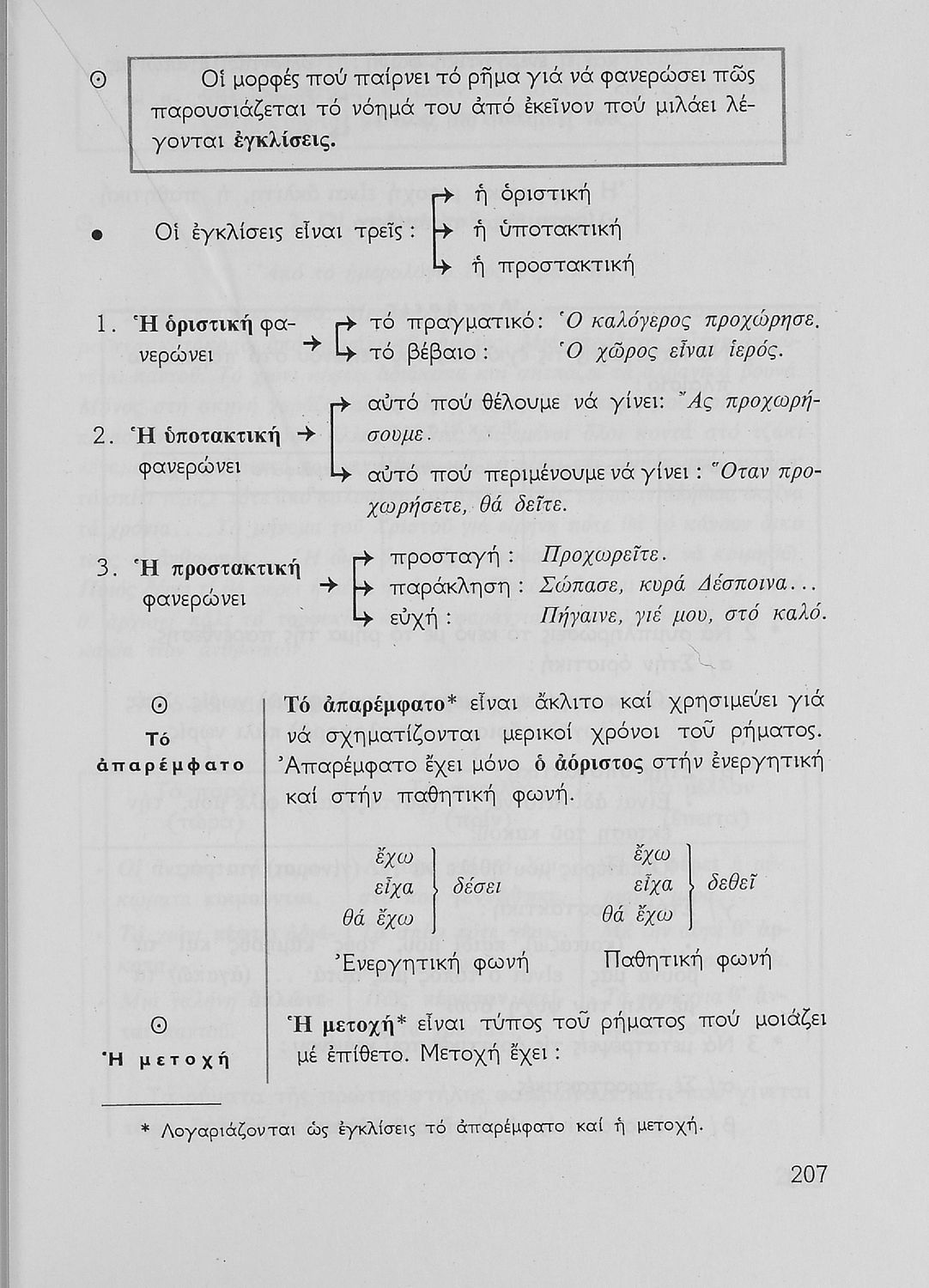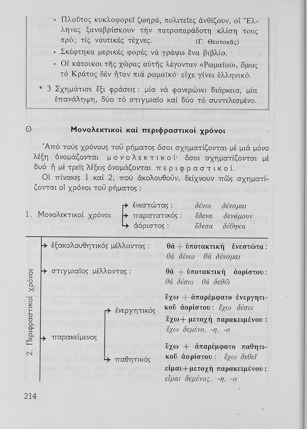 Σχολικό εγχειρίδιο της Ε΄ και ΣΤ΄ τάξης Δημοτικού για την γραμματική της ελληνικής γλώσσας με κανόνες και παραδείγματα. Στο επίμετρο υπάρχουν πίνακες με ανώμαλους σχηματισμούς ρημάτων.