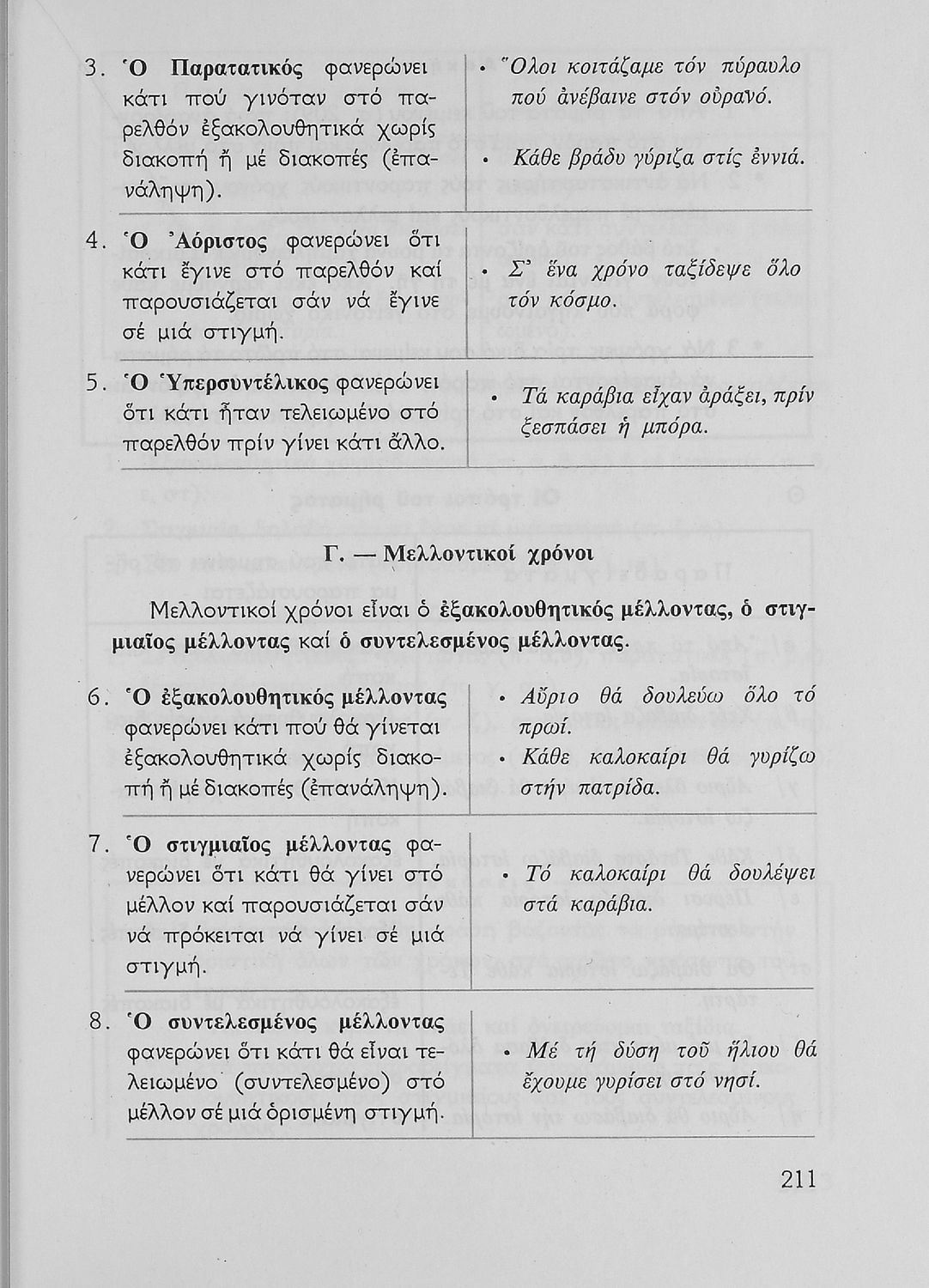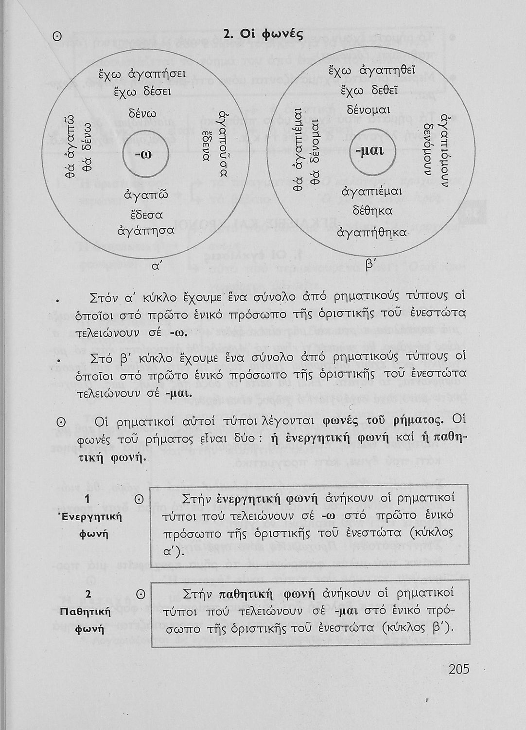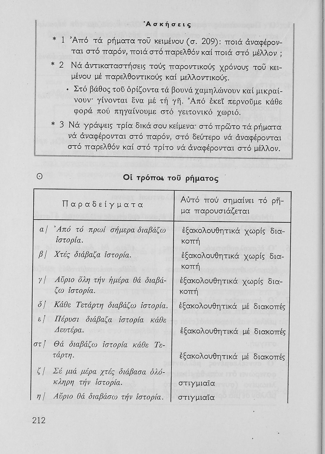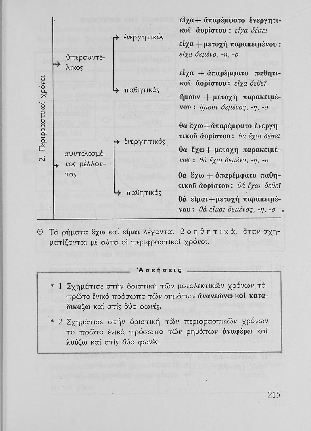 Σχολικό εγχειρίδιο της Ε΄ και ΣΤ΄ τάξης Δημοτικού για την γραμματική της ελληνικής γλώσσας με κανόνες και παραδείγματα. Στο επίμετρο υπάρχουν πίνακες με ανώμαλους σχηματισμούς ρημάτων.