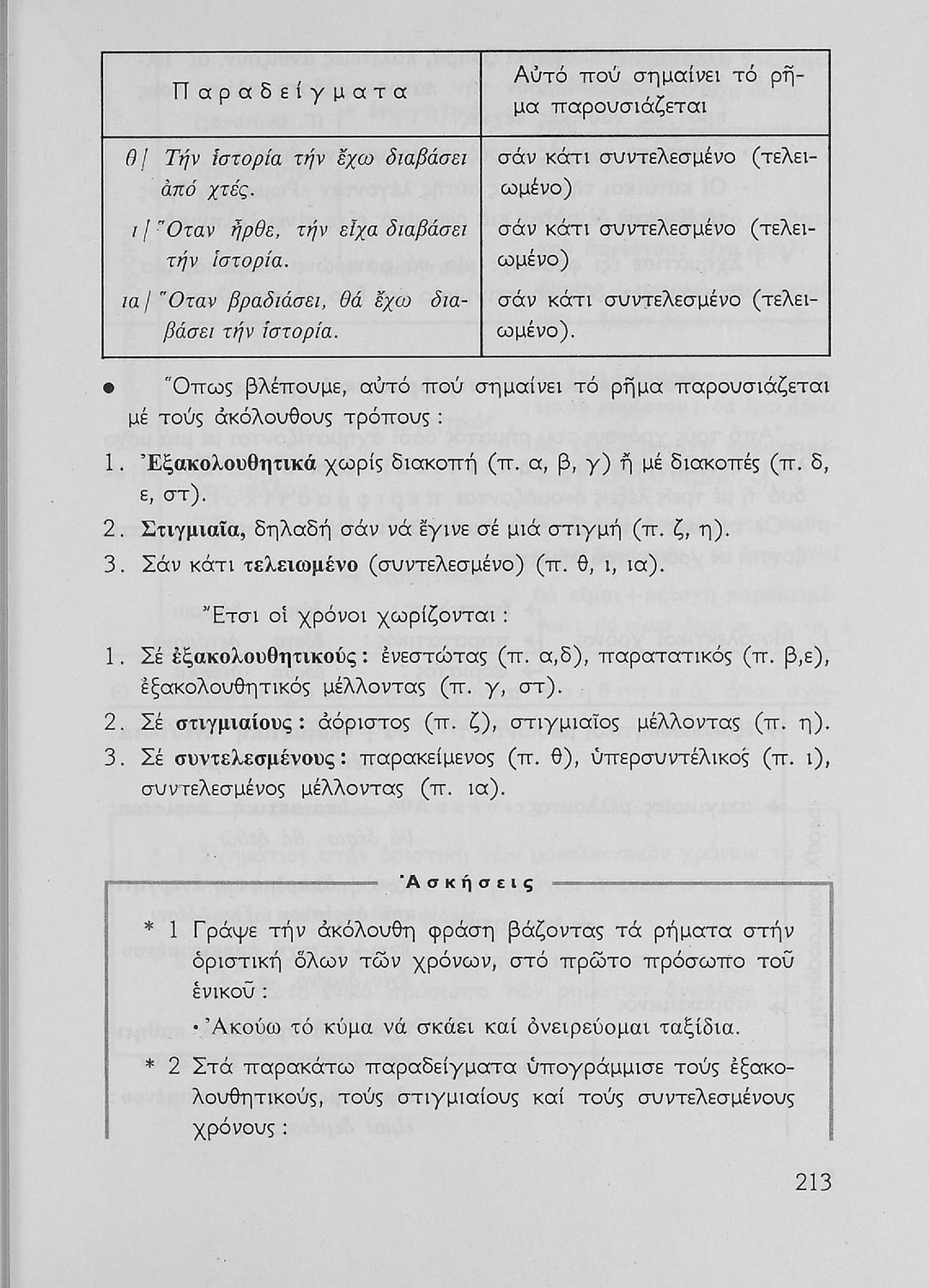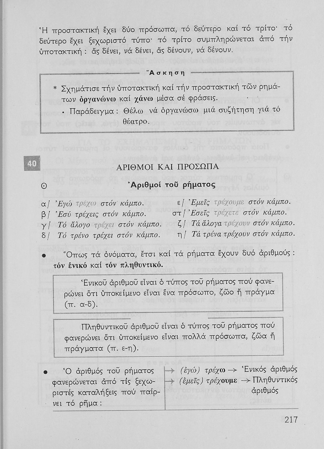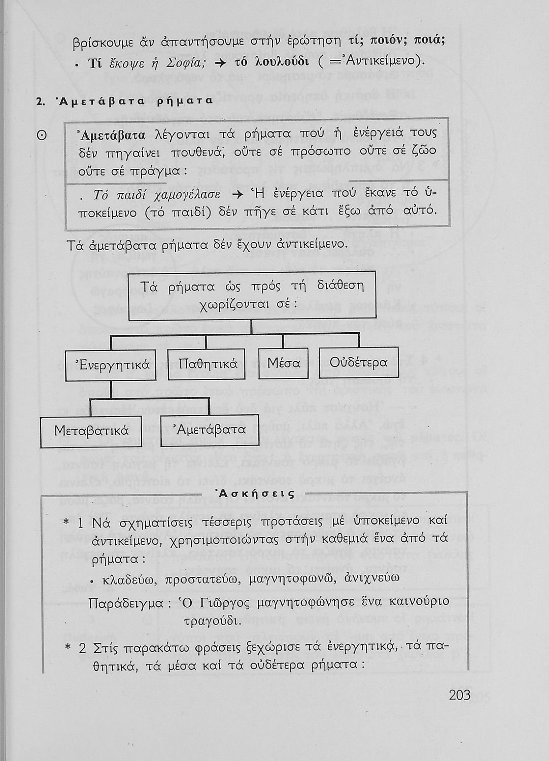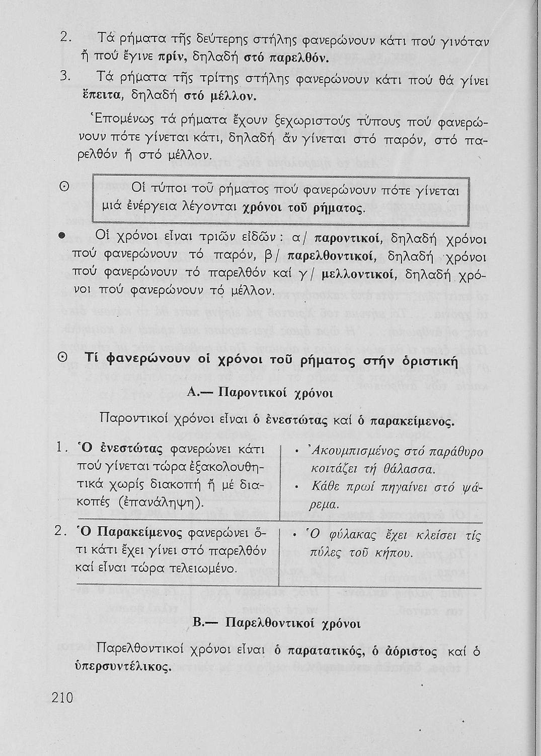 Σχολικό εγχειρίδιο της Ε΄ και ΣΤ΄ τάξης Δημοτικού για την γραμματική της ελληνικής γλώσσας με κανόνες και παραδείγματα. Στο επίμετρο υπάρχουν πίνακες με ανώμαλους σχηματισμούς ρημάτων.