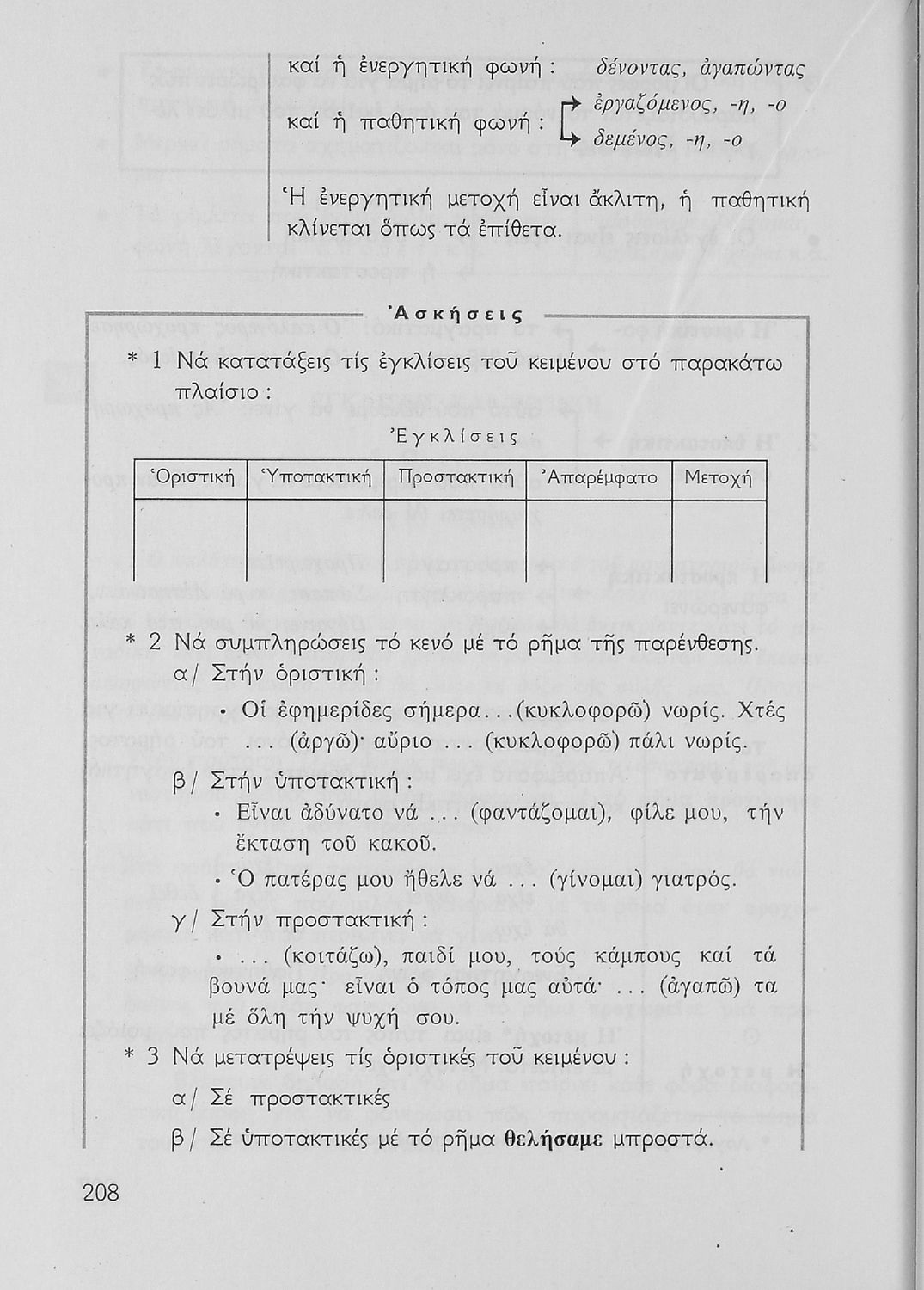 Σχολικό εγχειρίδιο Γλώσσας για τις Ε΄ και ΣΤ΄ Δημοτικού που περιλαμβάνει με κείμενα και ασκήσεις για τη διδασκαλία των γραμματικών φαινομένων.