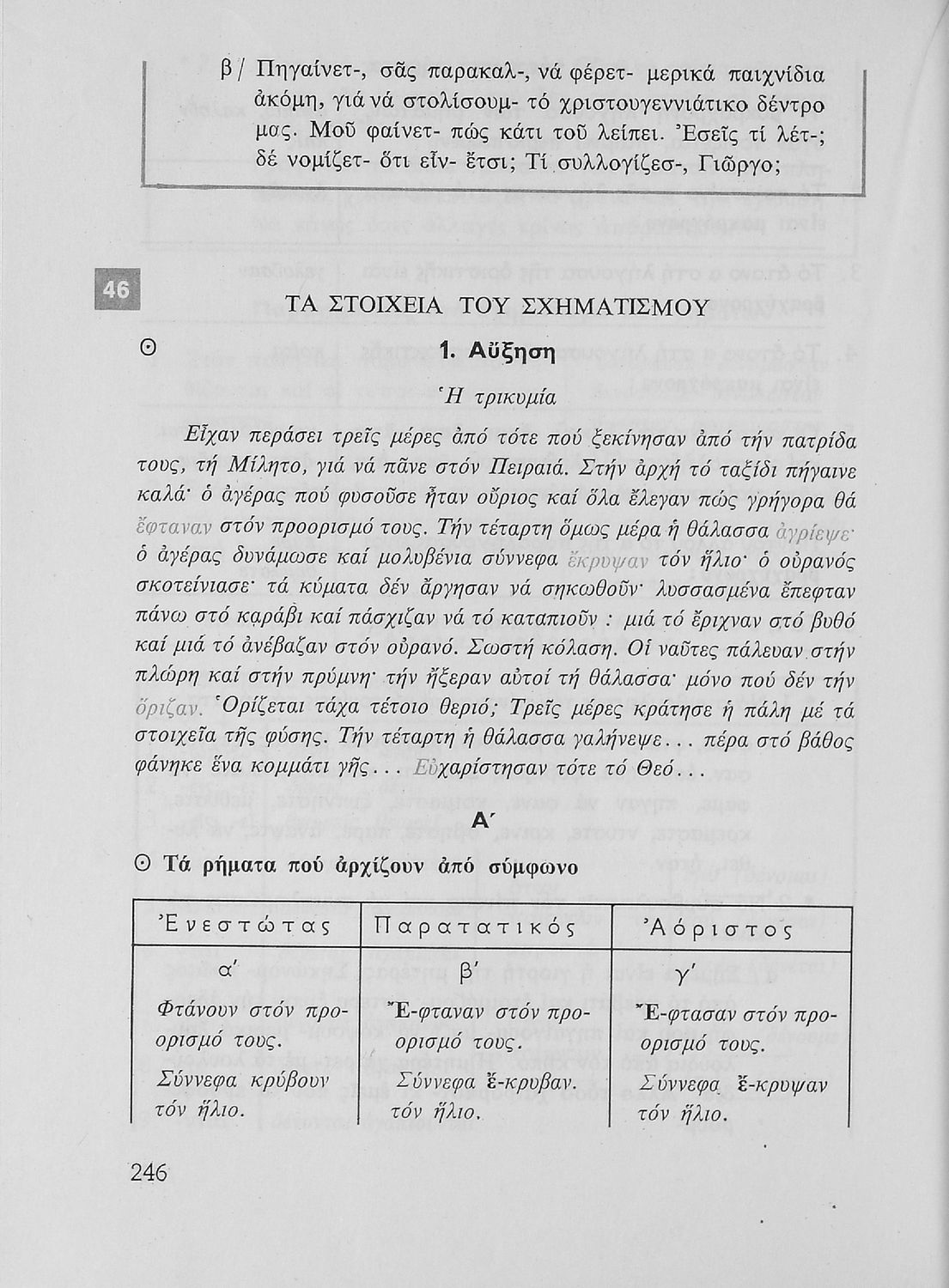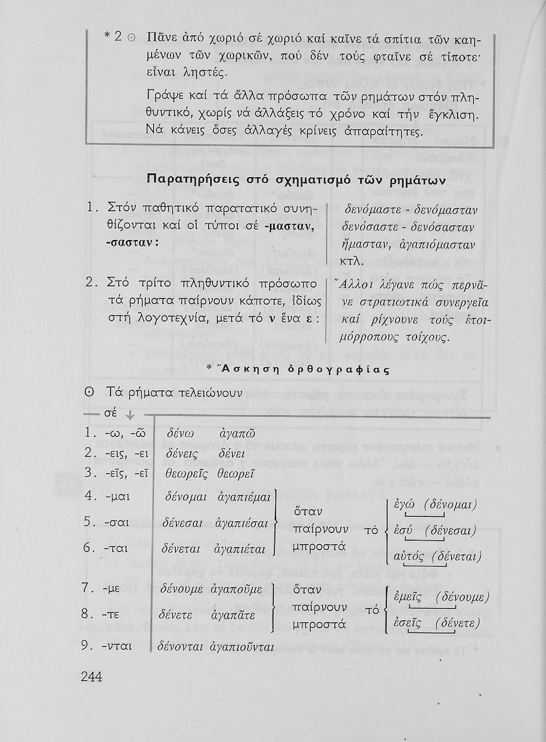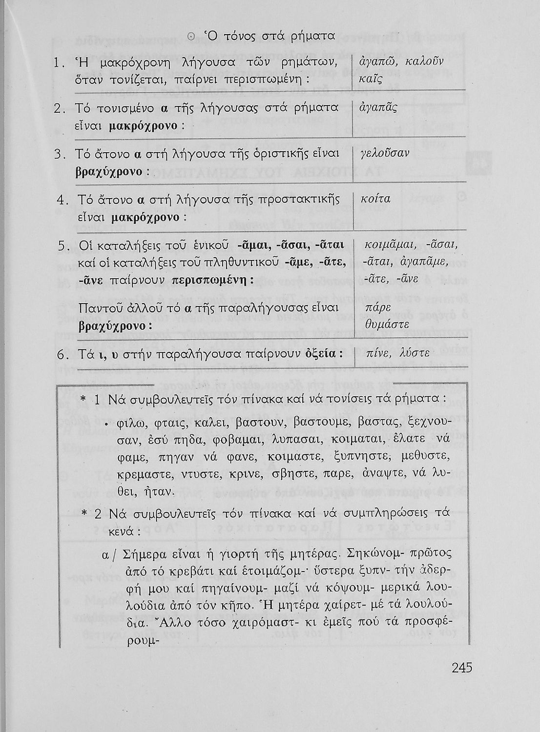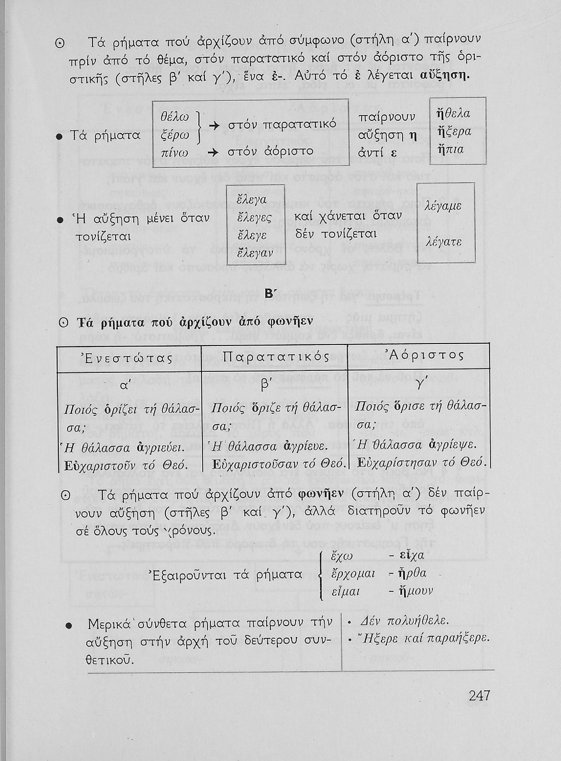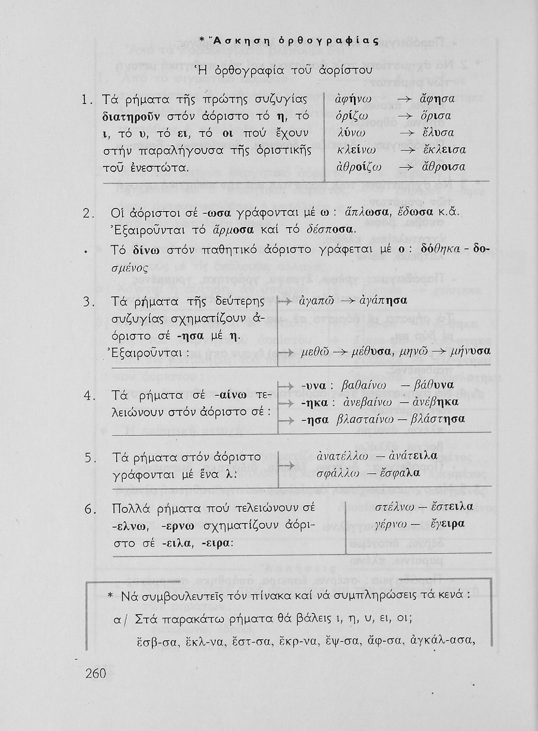 Σχολικό εγχειρίδιο της Ε΄ και ΣΤ΄ τάξης Δημοτικού για την γραμματική της ελληνικής γλώσσας με κανόνες και παραδείγματα. Στο επίμετρο υπάρχουν πίνακες με ανώμαλους σχηματισμούς ρημάτων.