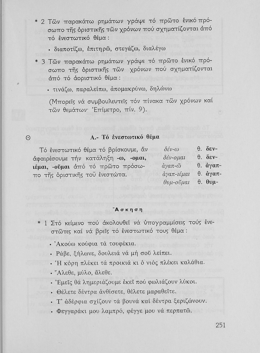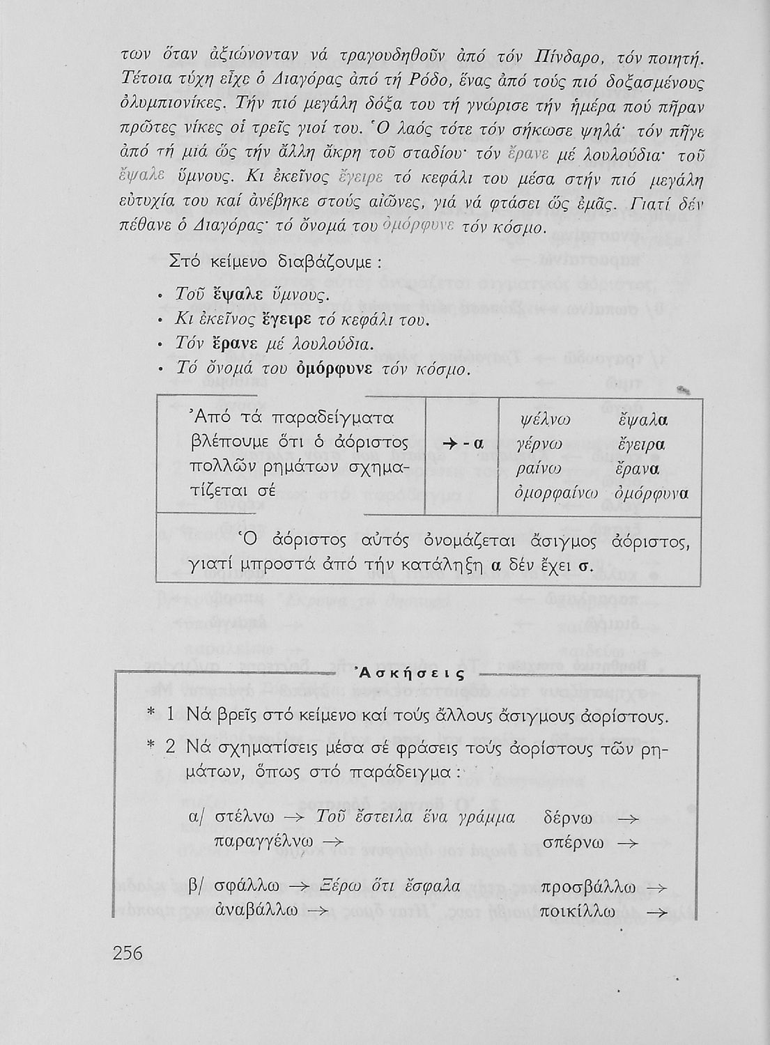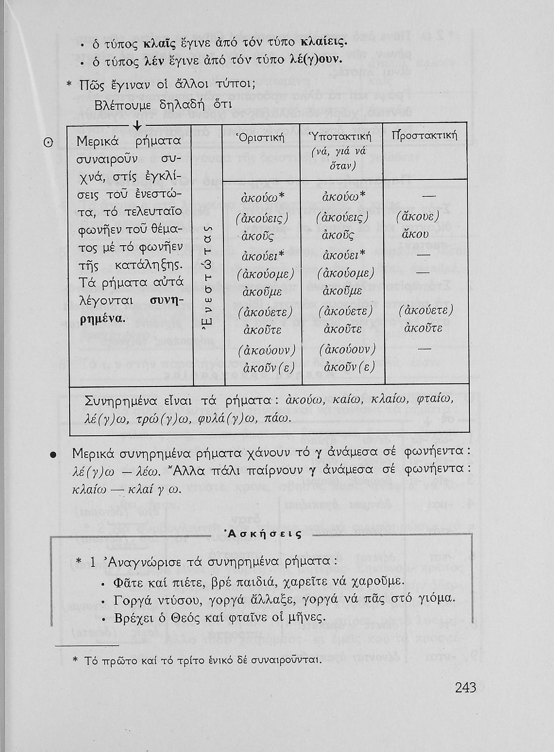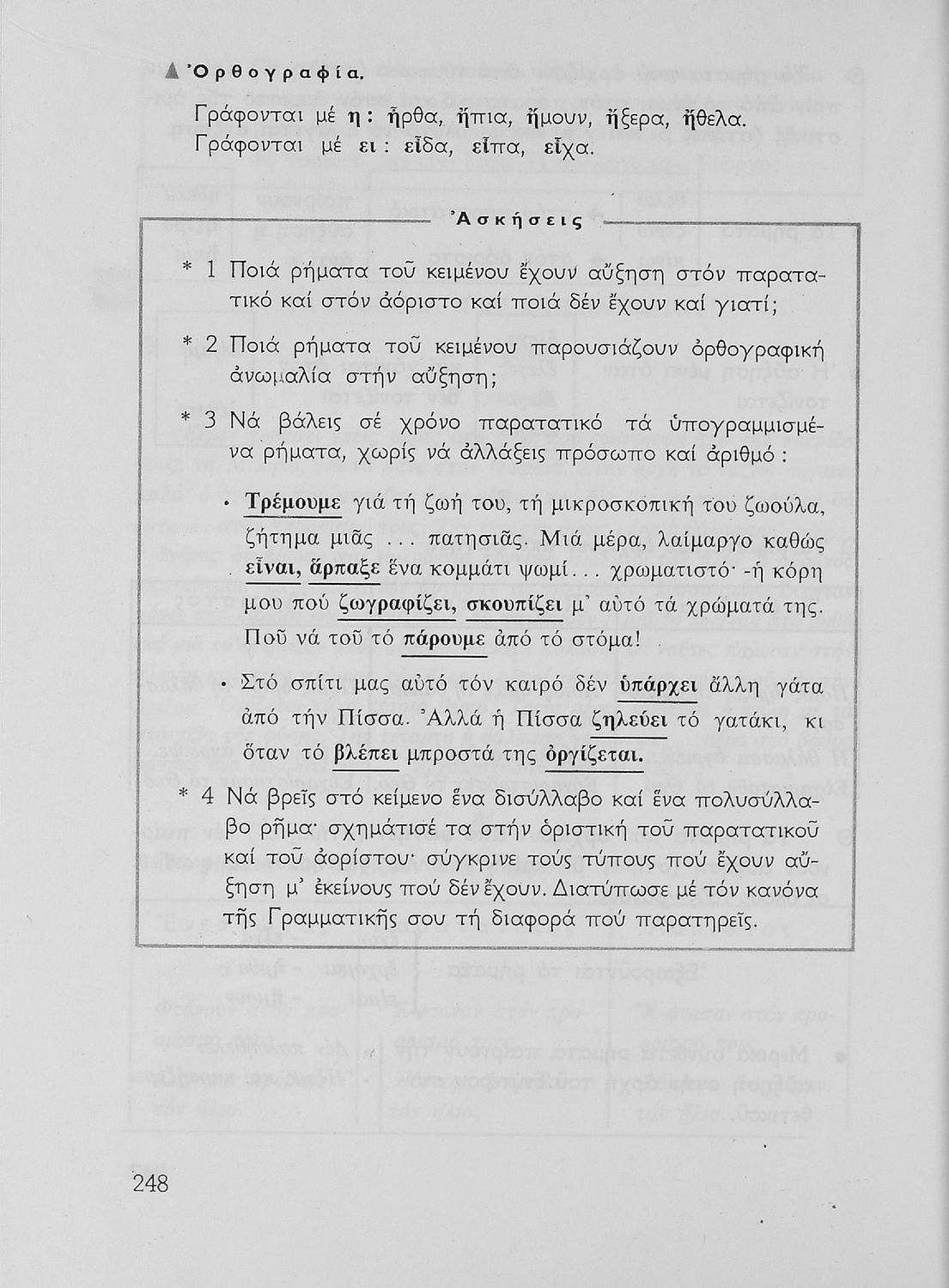 Σχολικό εγχειρίδιο της Ε΄ και ΣΤ΄ τάξης Δημοτικού για την γραμματική της ελληνικής γλώσσας με κανόνες και παραδείγματα. Στο επίμετρο υπάρχουν πίνακες με ανώμαλους σχηματισμούς ρημάτων.