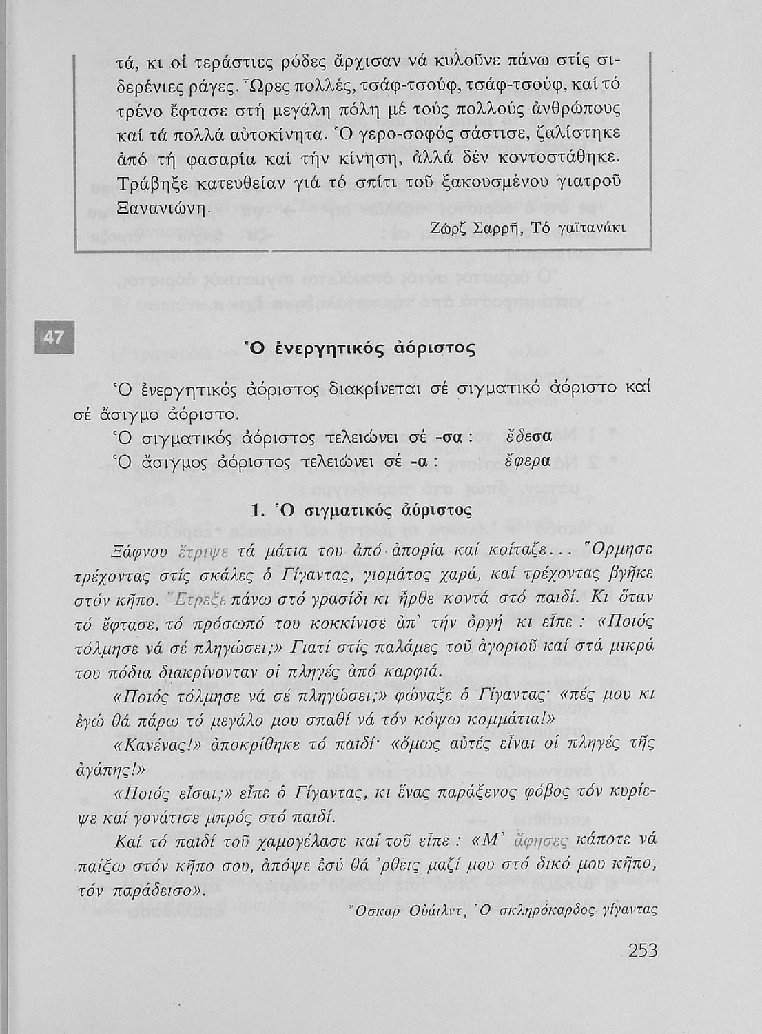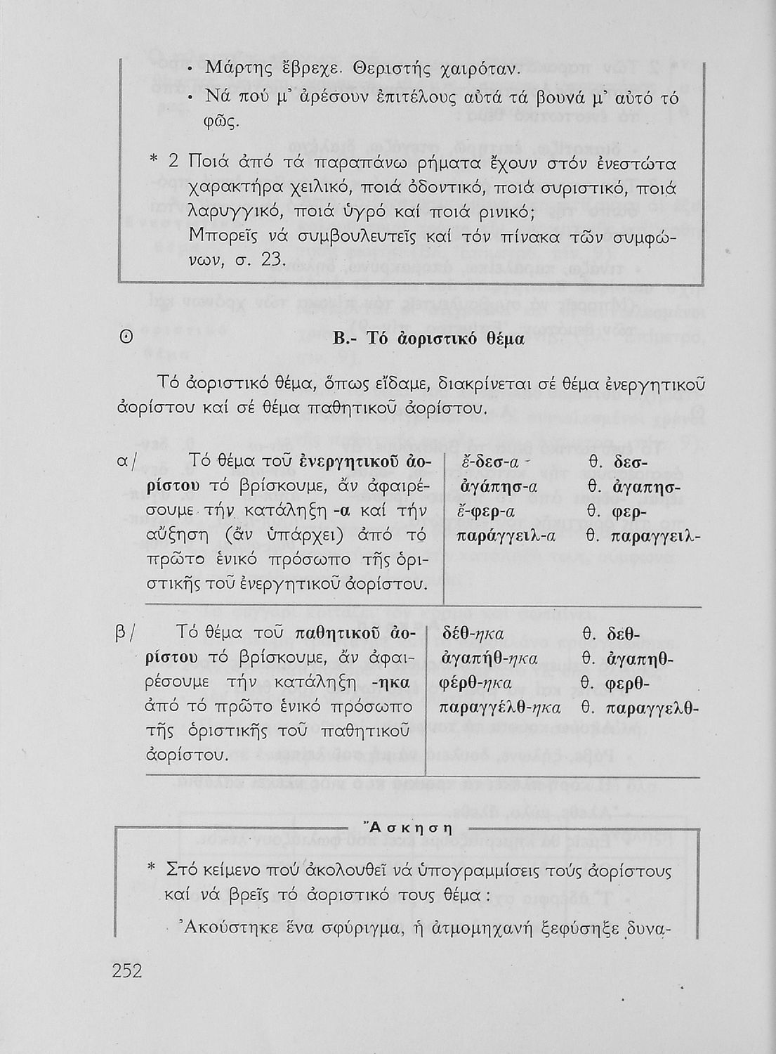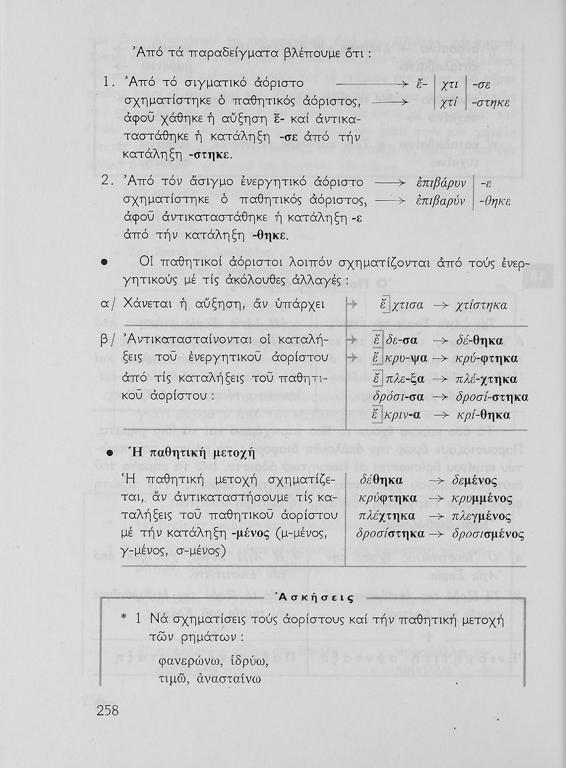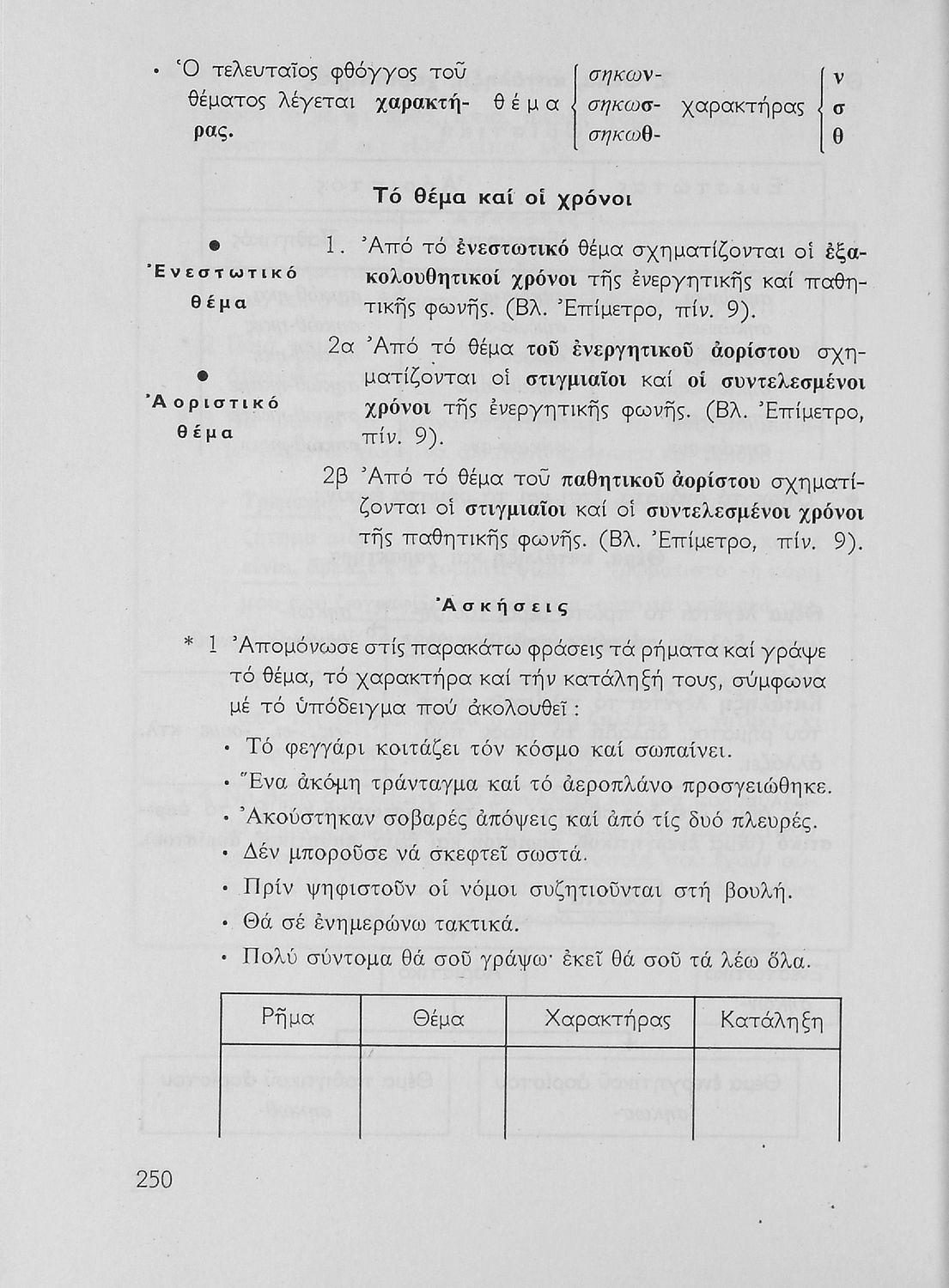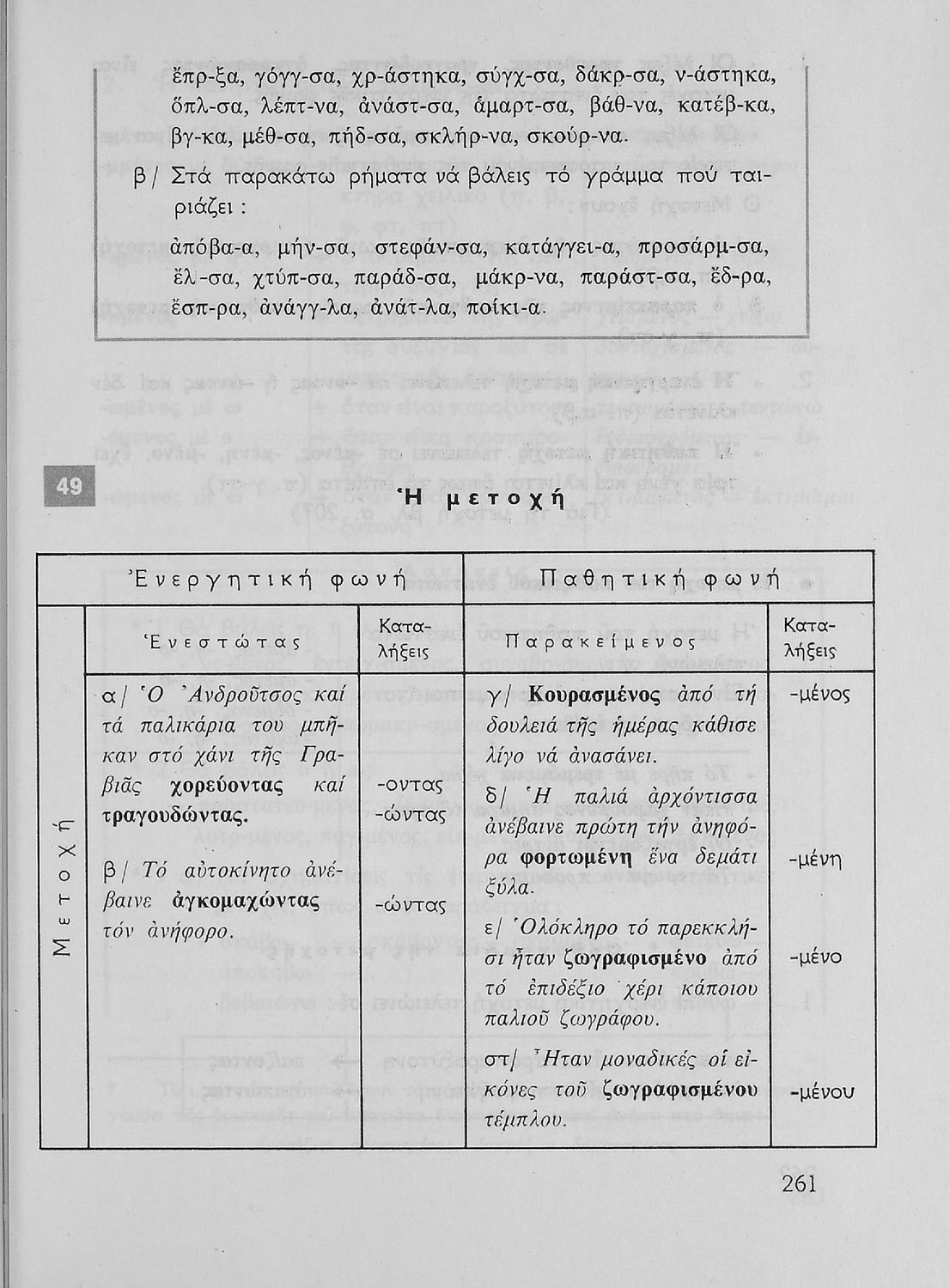 Σχολικό εγχειρίδιο της Ε΄ και ΣΤ΄ τάξης Δημοτικού για την γραμματική της ελληνικής γλώσσας με κανόνες και παραδείγματα. Στο επίμετρο υπάρχουν πίνακες με ανώμαλους σχηματισμούς ρημάτων.