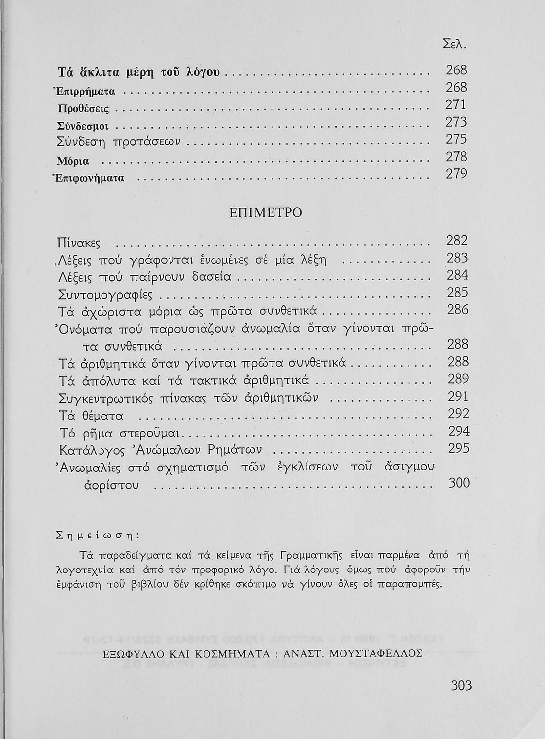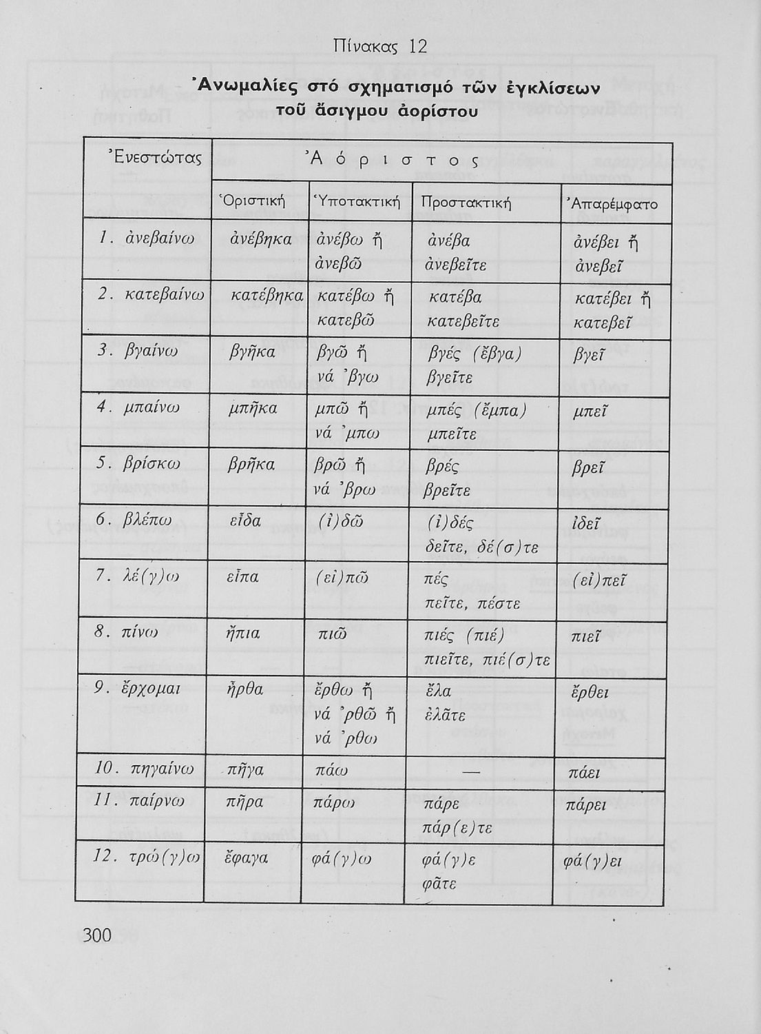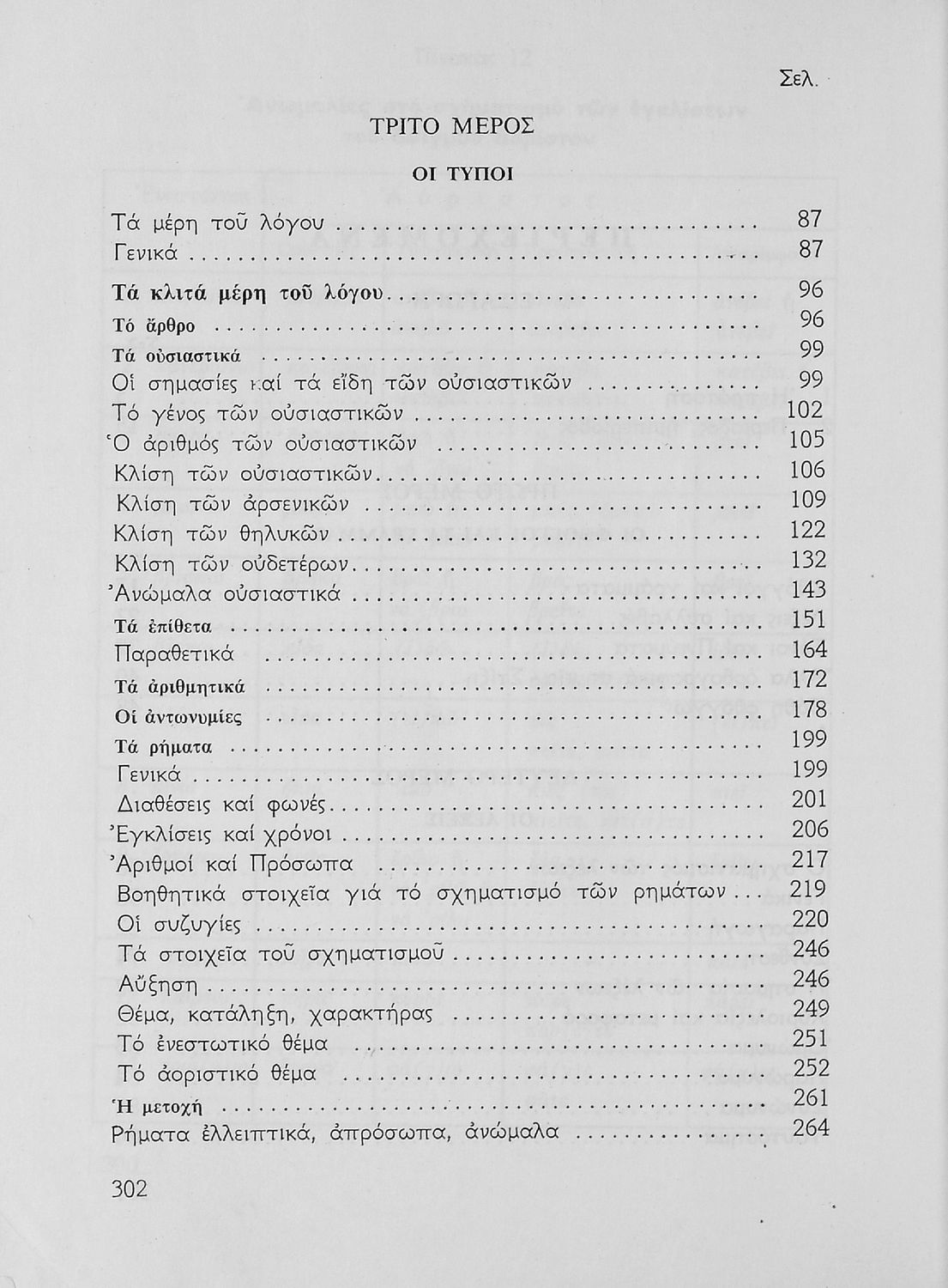 Σχολικό εγχειρίδιο της Ε΄ και ΣΤ΄ τάξης Δημοτικού για την γραμματική της ελληνικής γλώσσας με κανόνες και παραδείγματα. Στο επίμετρο υπάρχουν πίνακες με ανώμαλους σχηματισμούς ρημάτων.