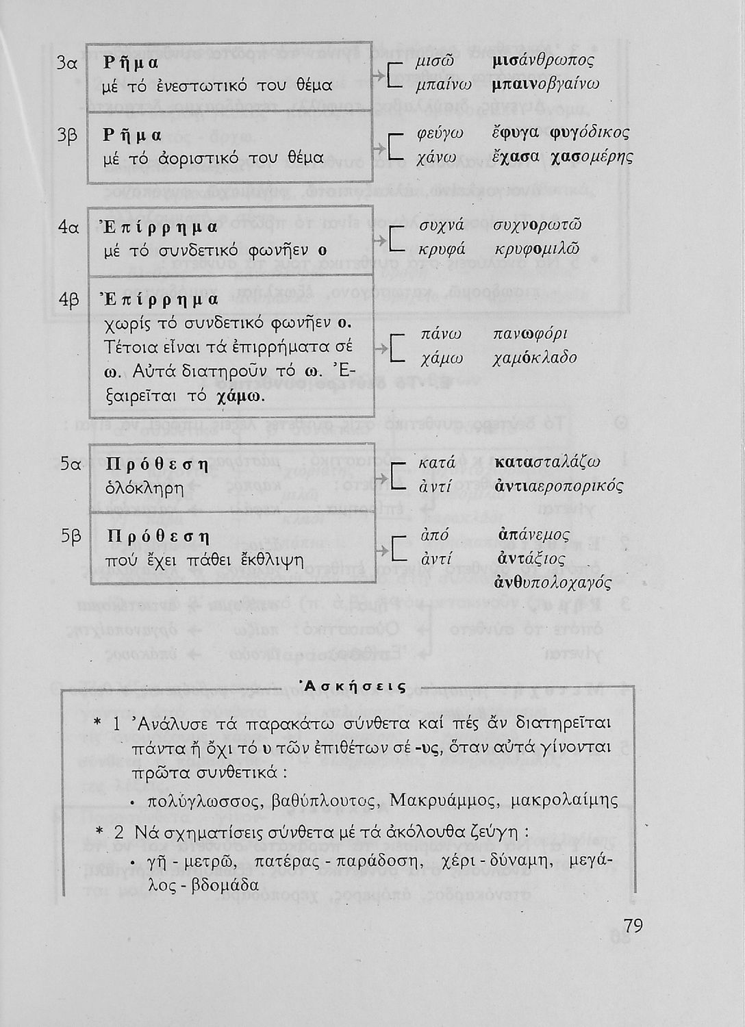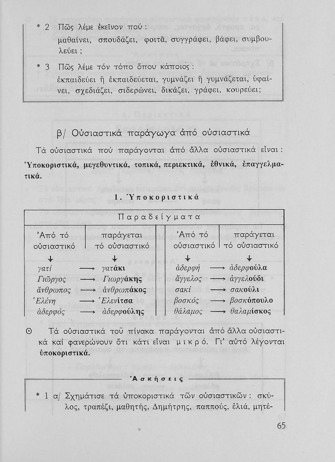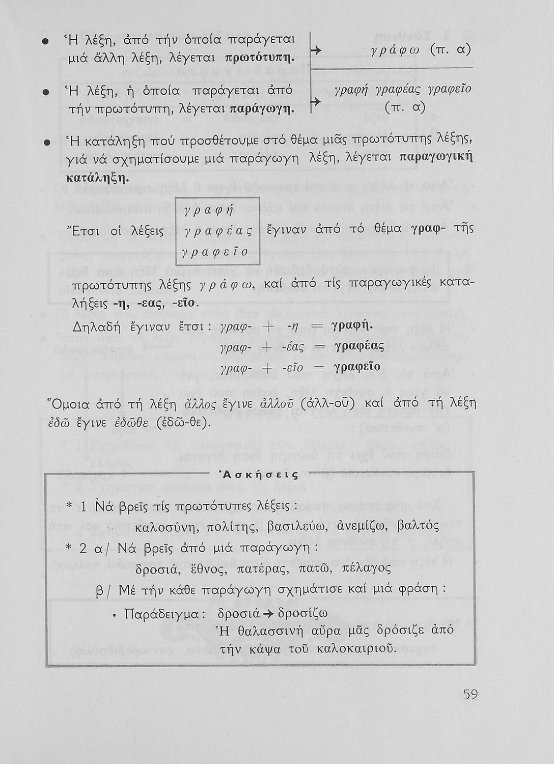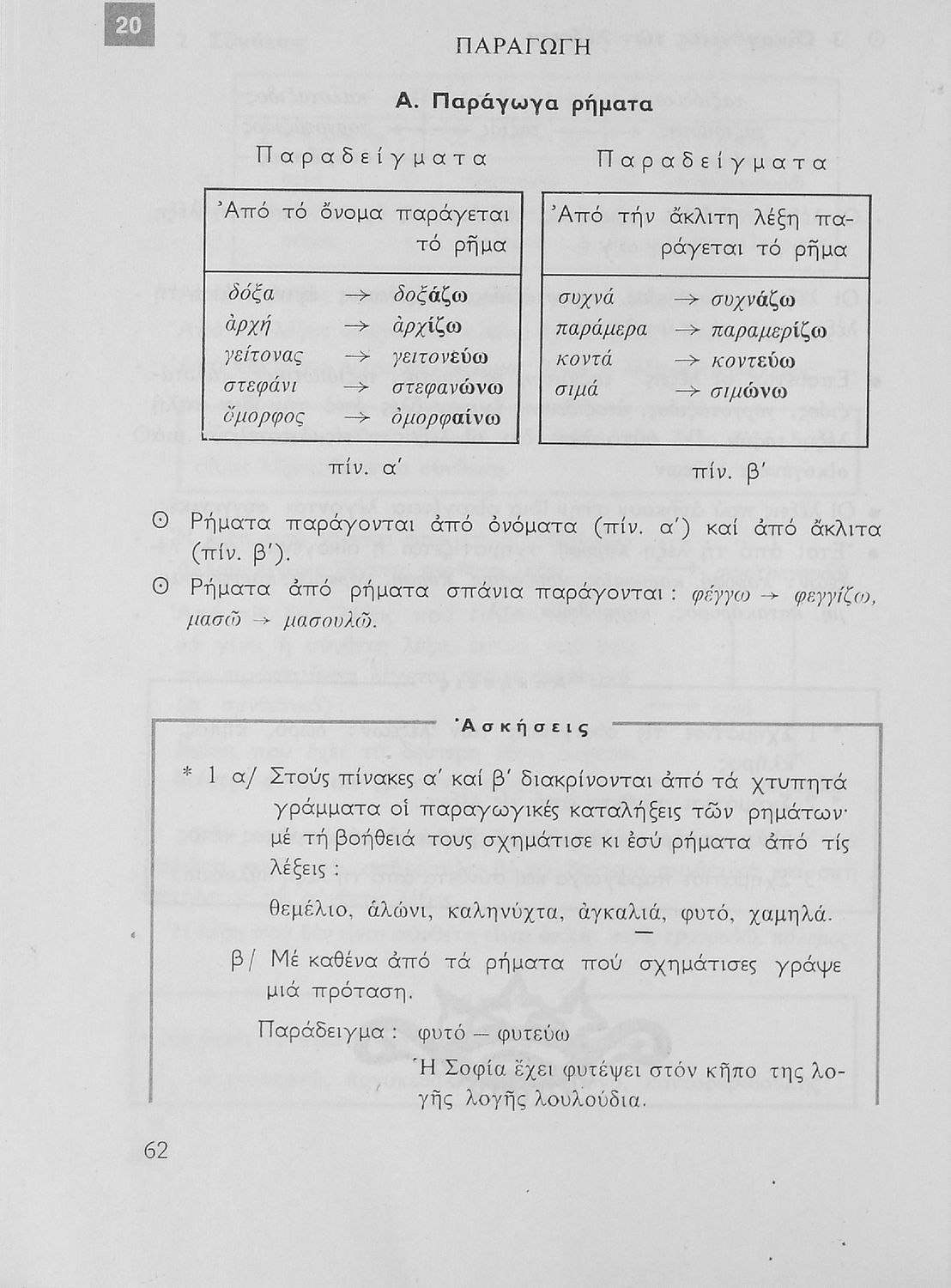 Σχολικό εγχειρίδιο της Ε΄ και ΣΤ΄ τάξης Δημοτικού για την γραμματική της ελληνικής γλώσσας με κανόνες και παραδείγματα. Στο επίμετρο υπάρχουν πίνακες με ανώμαλους σχηματισμούς ρημάτων.