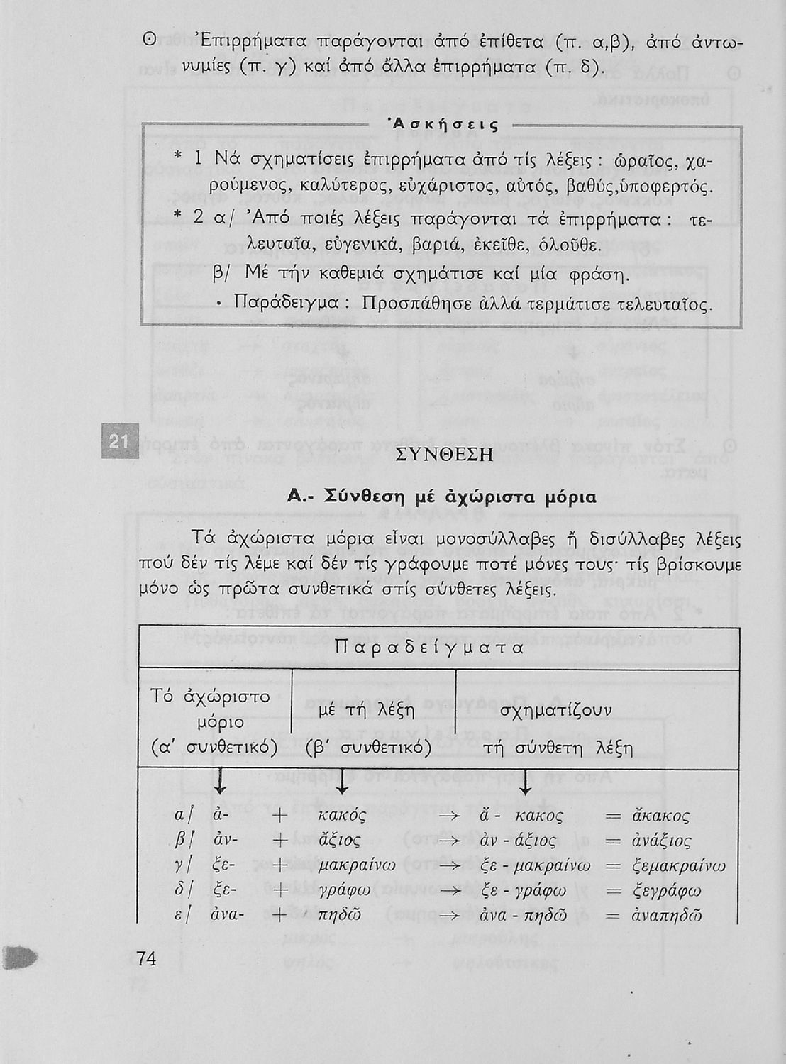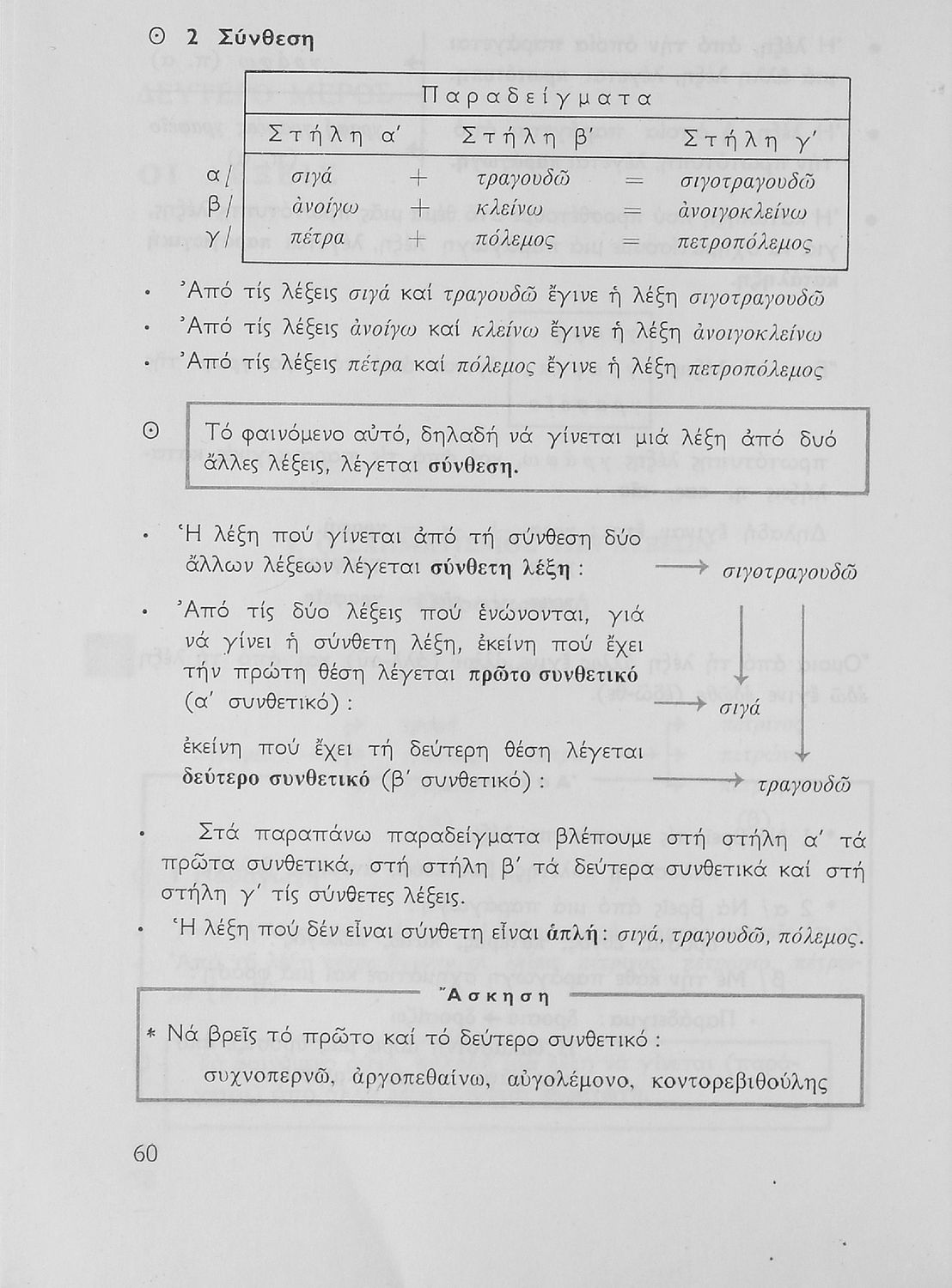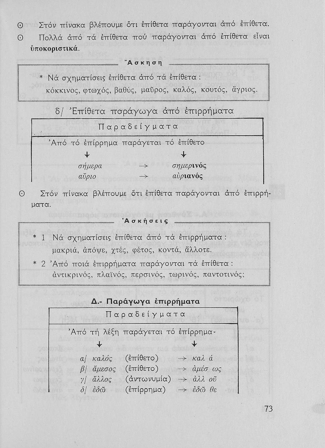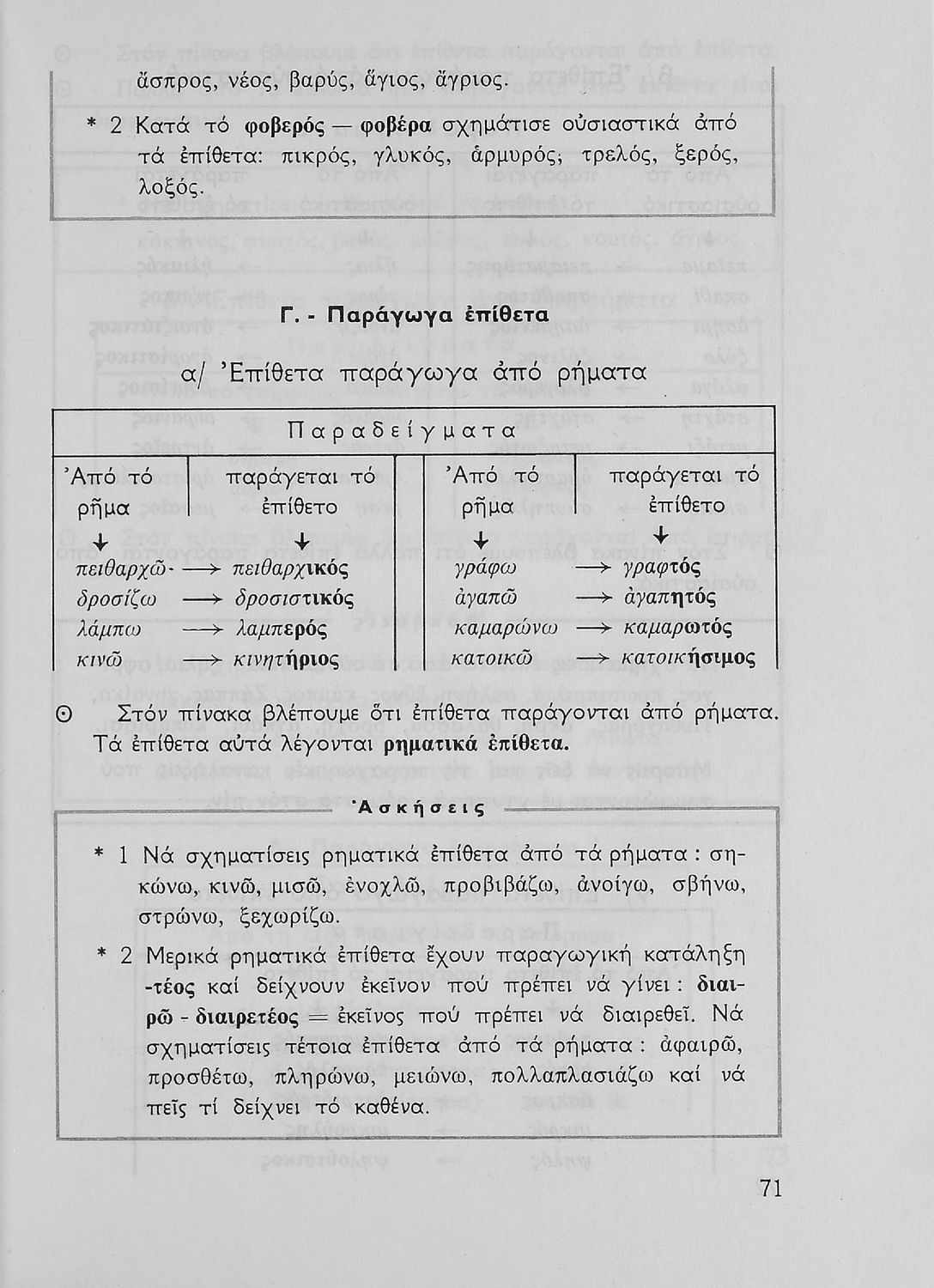 Σχολικό εγχειρίδιο της Ε΄ και ΣΤ΄ τάξης Δημοτικού για την γραμματική της ελληνικής γλώσσας με κανόνες και παραδείγματα. Στο επίμετρο υπάρχουν πίνακες με ανώμαλους σχηματισμούς ρημάτων.