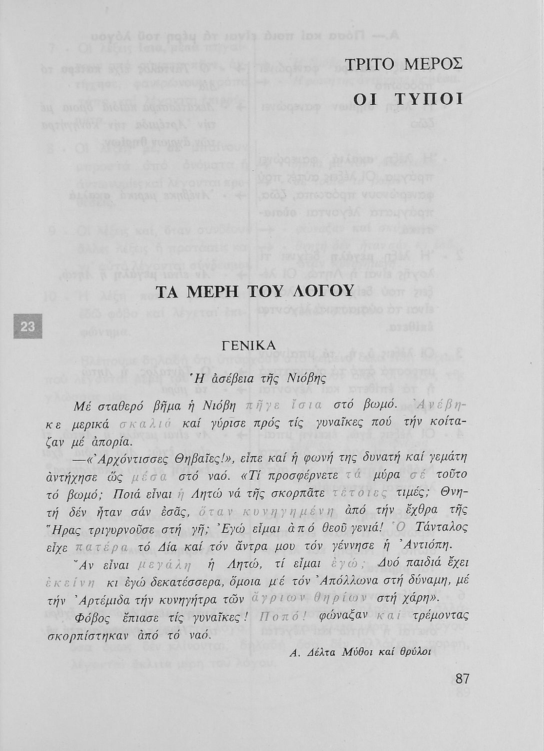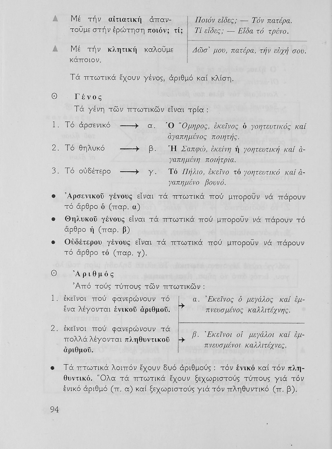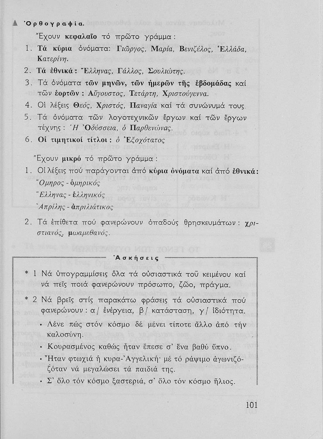 Σχολικό εγχειρίδιο για την Ε΄ και ΣΤ΄ τάξη Δημοτικού με γραμματικούς κανόνες και παραδείγματα για τα κλιτά και άκλιτα μέρη του λόγου.