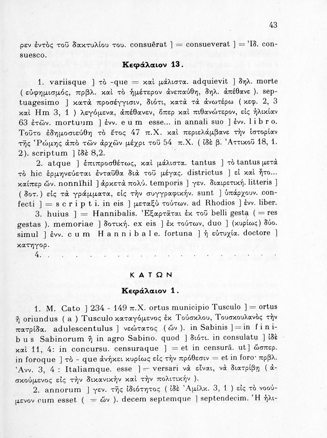 Σχολικό εγχειρίδιο Λατινικών Ε΄ Γυμνασίου που περιέχει σύντομο βιογραφικό σημείωμα του Νέπωτα, αποσπάσματα από τα έργα Αμίλκας, Αννίβας, Κάτων και Αττικός, ιστορικό και γεωγραφικό πίνακα και λεξιλόγιο. Ο συγγραφέας ήταν ακαδημαϊκός και ομότιμος καθηγητής της Λατινικής Φιλολογίας στο Πανεπιστήμιο Αθηνών. Φέρει το σύμβολο της δικτατορίας.