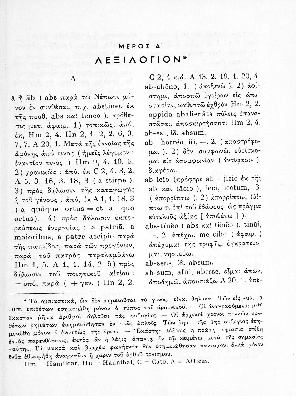Σχολικό εγχειρίδιο Λατινικών για την Δ΄ Γυμνασίου παλαιού τύπου και την Ε΄ Γυμνασίου νέου τύπου που περιέχει σύντομο βιογραφικό σημείωμα του Νέπωτα, αποσπάσματα από τα έργα Αμίλκας, Αννίβας, Κάτων και Αττικός ...
