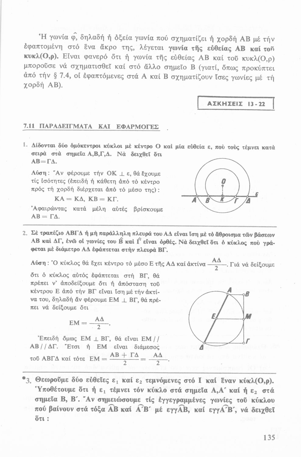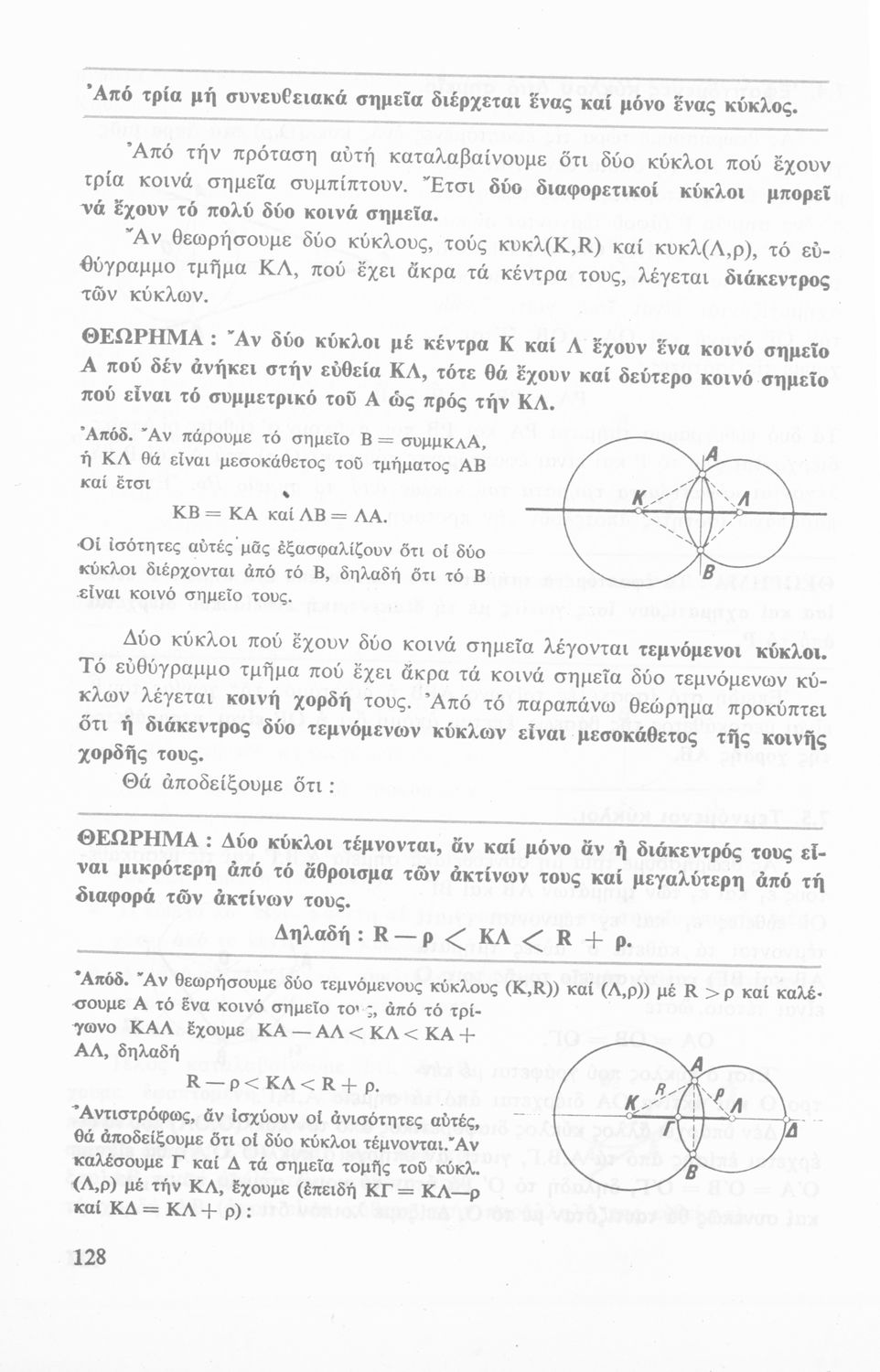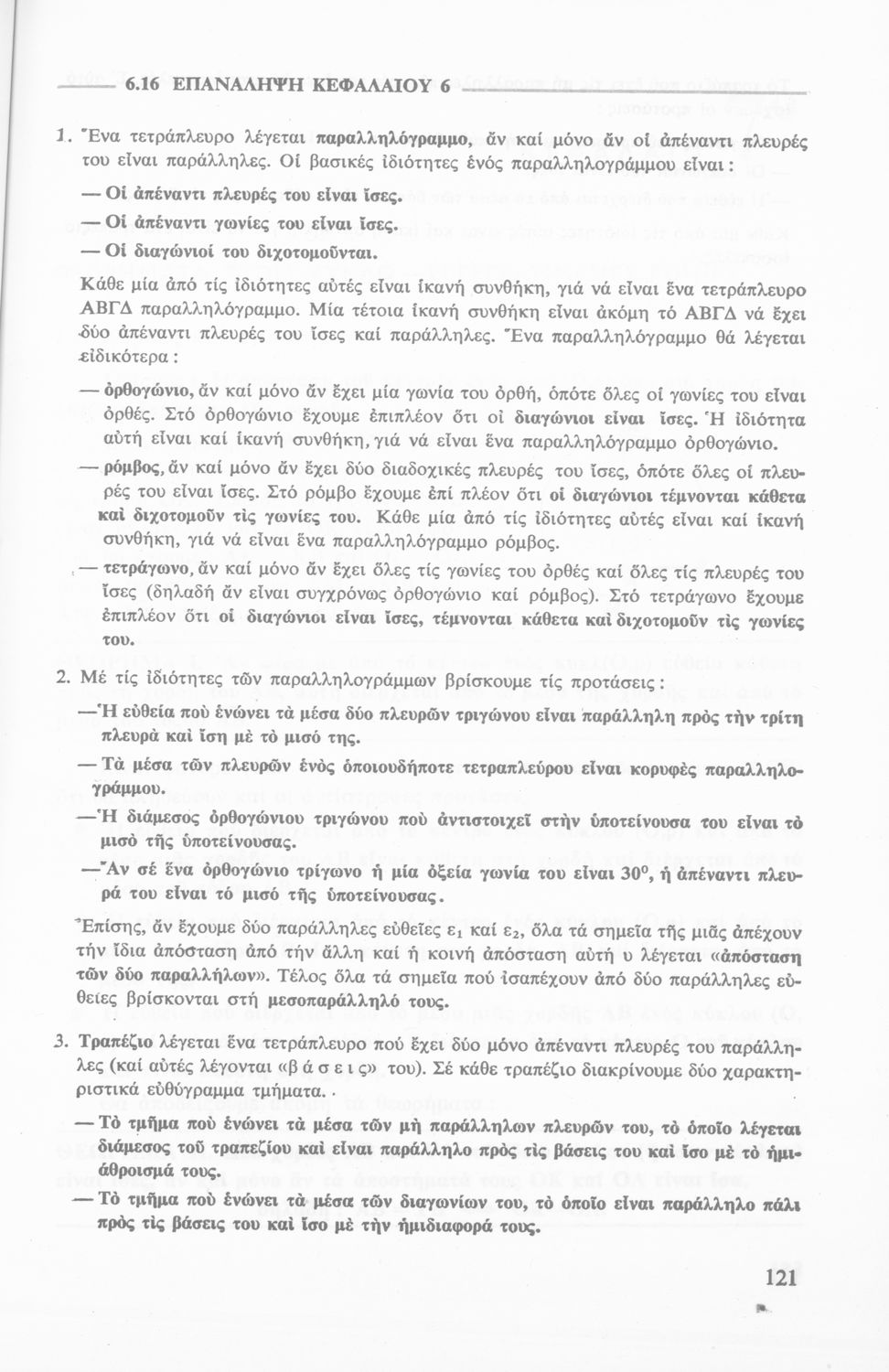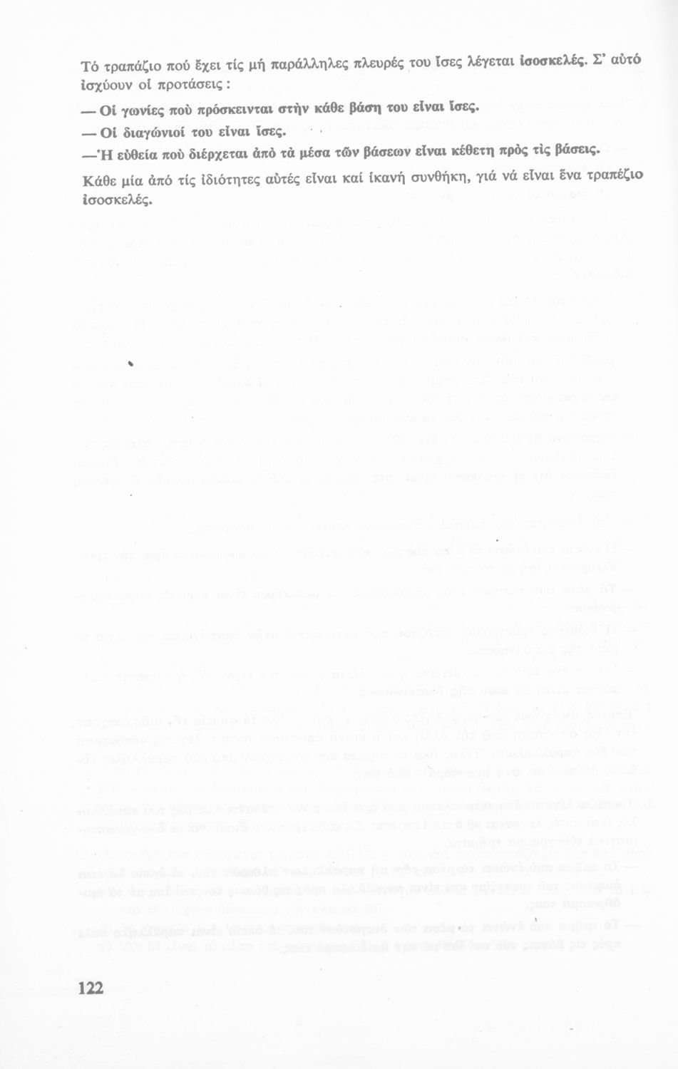 Σχολικό εγχειρίδιο Γεωμετρίας Α΄ Λυκείου χωρισμένο σε θεωρήματα, λυμένες ασκήσεις, ασκήσεις και επαναλήψεις κεφαλαίου. Περιέχει ένα παράρτημα με επαναληπτικά μαθήματα και ένα με ευρετήριο όρων.
